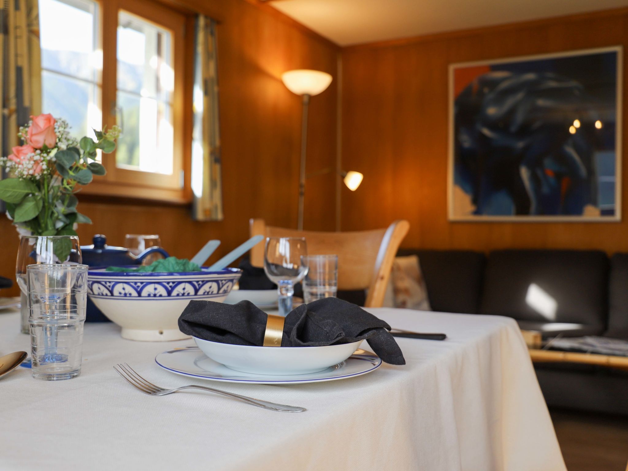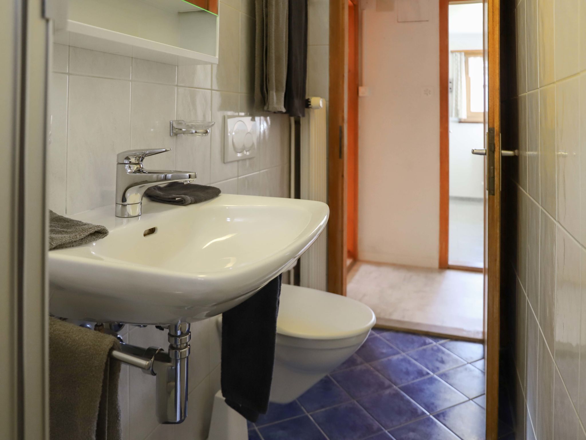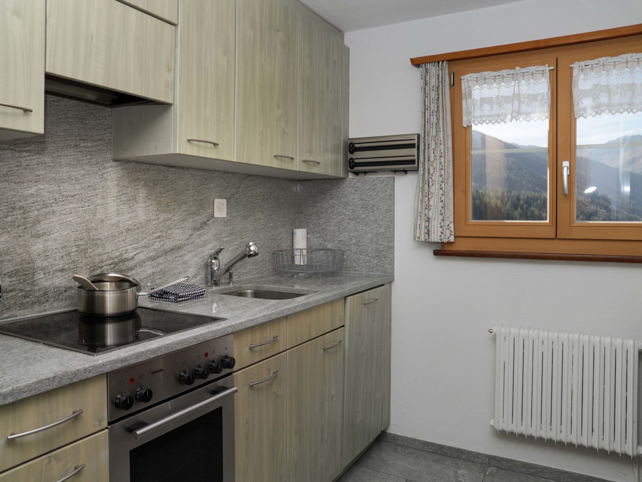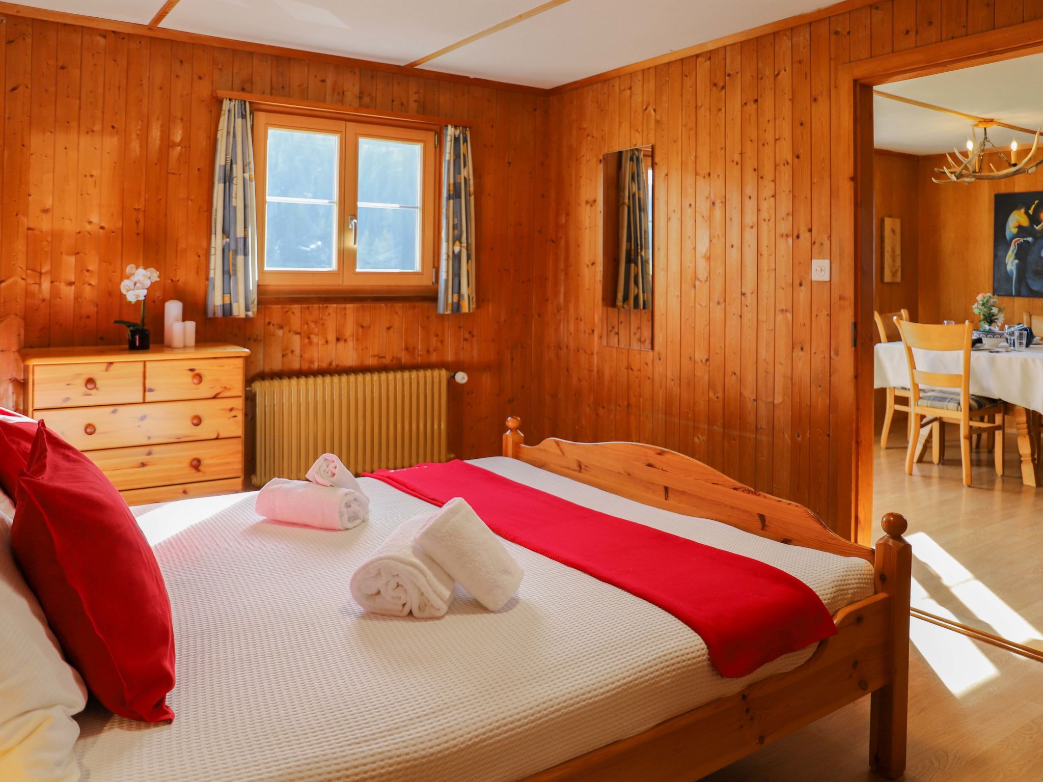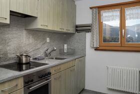 Haus Chumma Apt1, 2-Zimmer-Wohnung 45 m2 im 1. Stock, Nordostlage. Objekt geeignet für 2 Erwachsene + 1 Kind. Komfortabel und gemütlich eingerichtet: Wohn-/Esszimmer mit Veranda mit 1 Ausziehbett (1 Pers.), Kabel-TV (Flachbildschirm). Ausgang zum Balkon. 1 Zimmer mit 1 franz. Bett (160 cm, Länge 200 cm) mit Waschbecken und Dusche/WC. Küche (Backofen, Geschirrspüler, 4 Glaskeramikplatten, Mikrowelle, Tiefkühler, elektrische Kaffeemaschine, Kapseln für die Kaffeemaschine (Nespresso) extra). Komfortable Einrichtung im Landhausstil. Kleiner Balkon 3 m2. Auf die Berge, das Tal, die Landschaft und den Fluss. Zur Verfügung: Internet (WLAN, gratis). Parkplatz. 3899