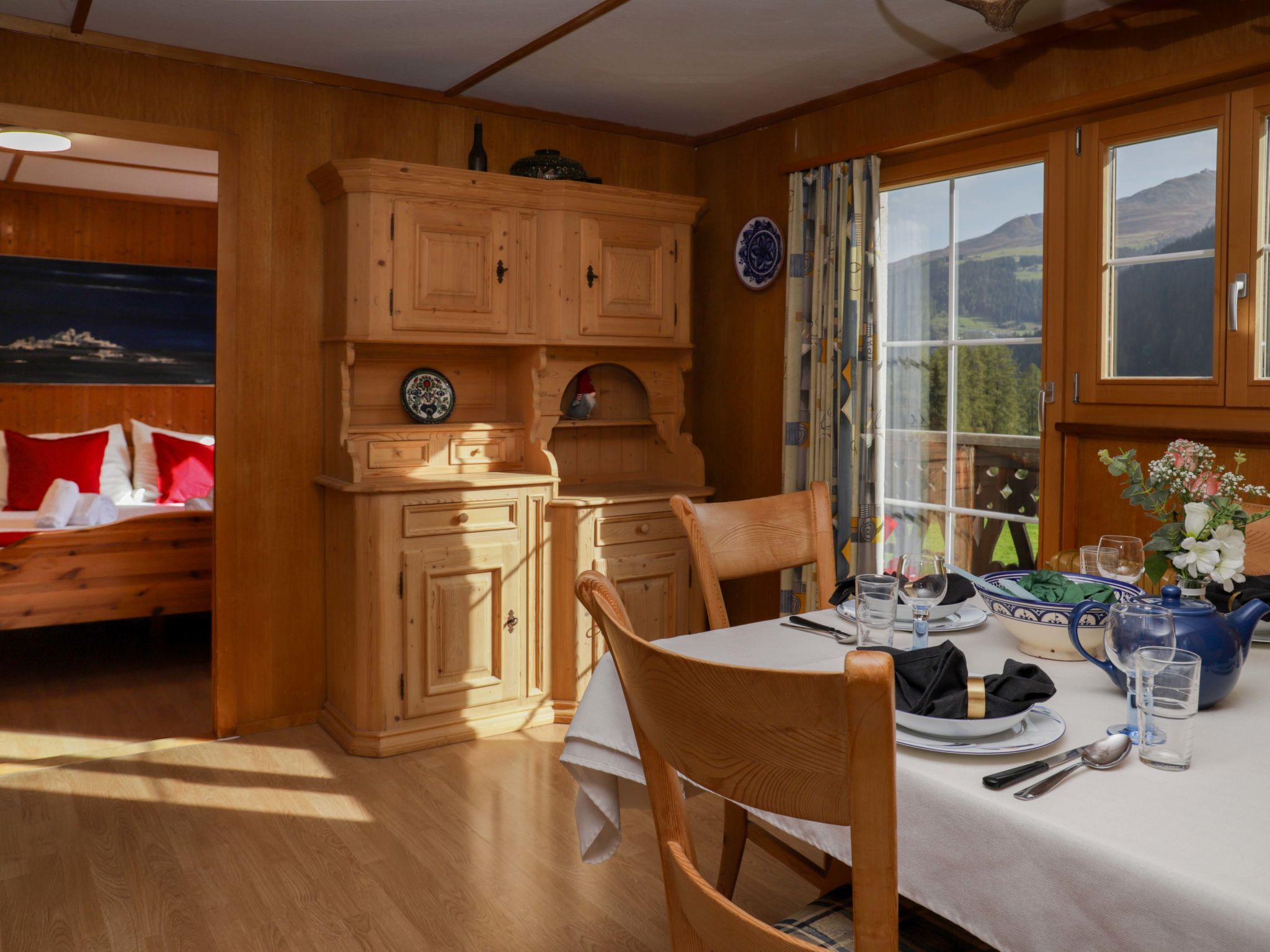 Altes, gemütliches, komfortables Einfamilienhaus Haus Chumma, auf 2 Stockwerken, Baujahr 1960, umgeben von Wiesen. Im Ortsteil Davos Glaris, 6.1 km vom Zentrum von Davos Platz, ruhige, sonnige, erhöhte Lage am Hang, 50 m vom Waldrand. Im Hause: Zentralheizung. Abstellraum vorhanden. Zufahrt bis zum Haus. Parkplatz beim Haus. Bushaltestelle Davos Glaris Mühle 900 m. Bitte beachten: kein Fahrstuhl vorhanden. Be- und Entladen am Ferienhaus möglich.