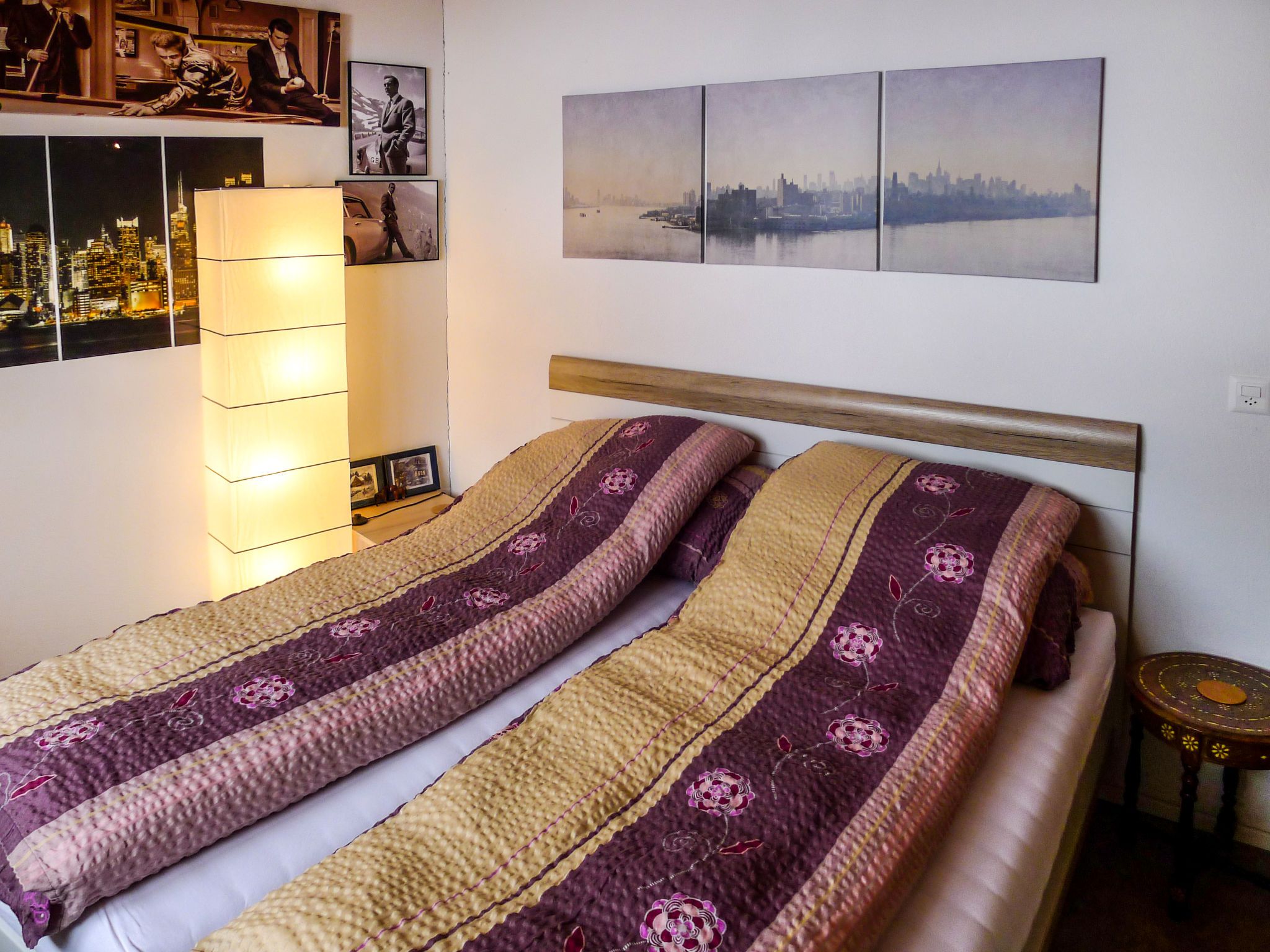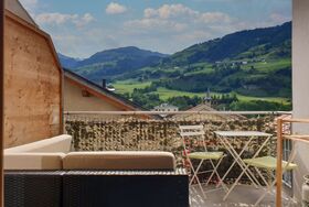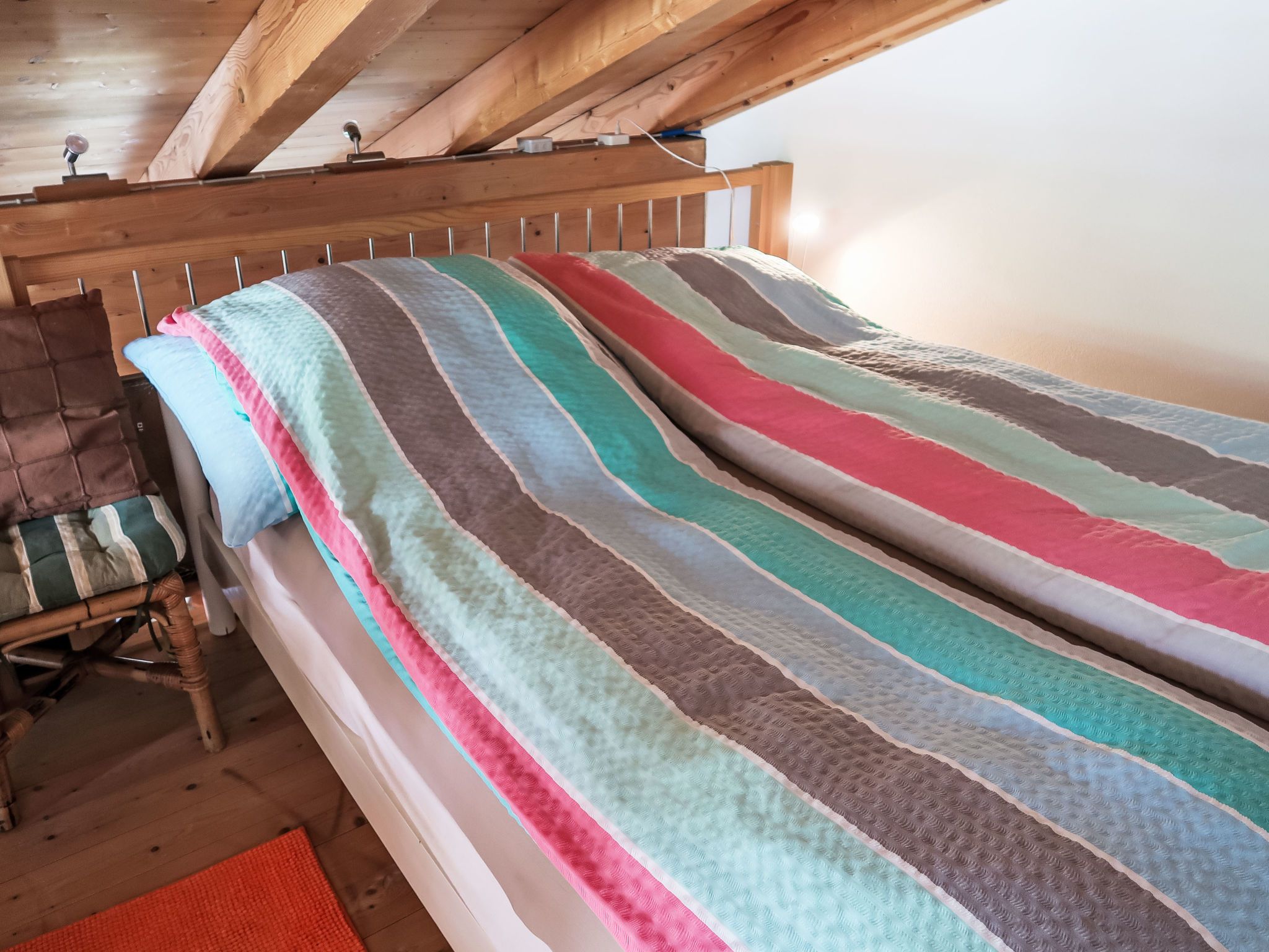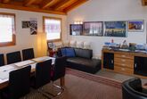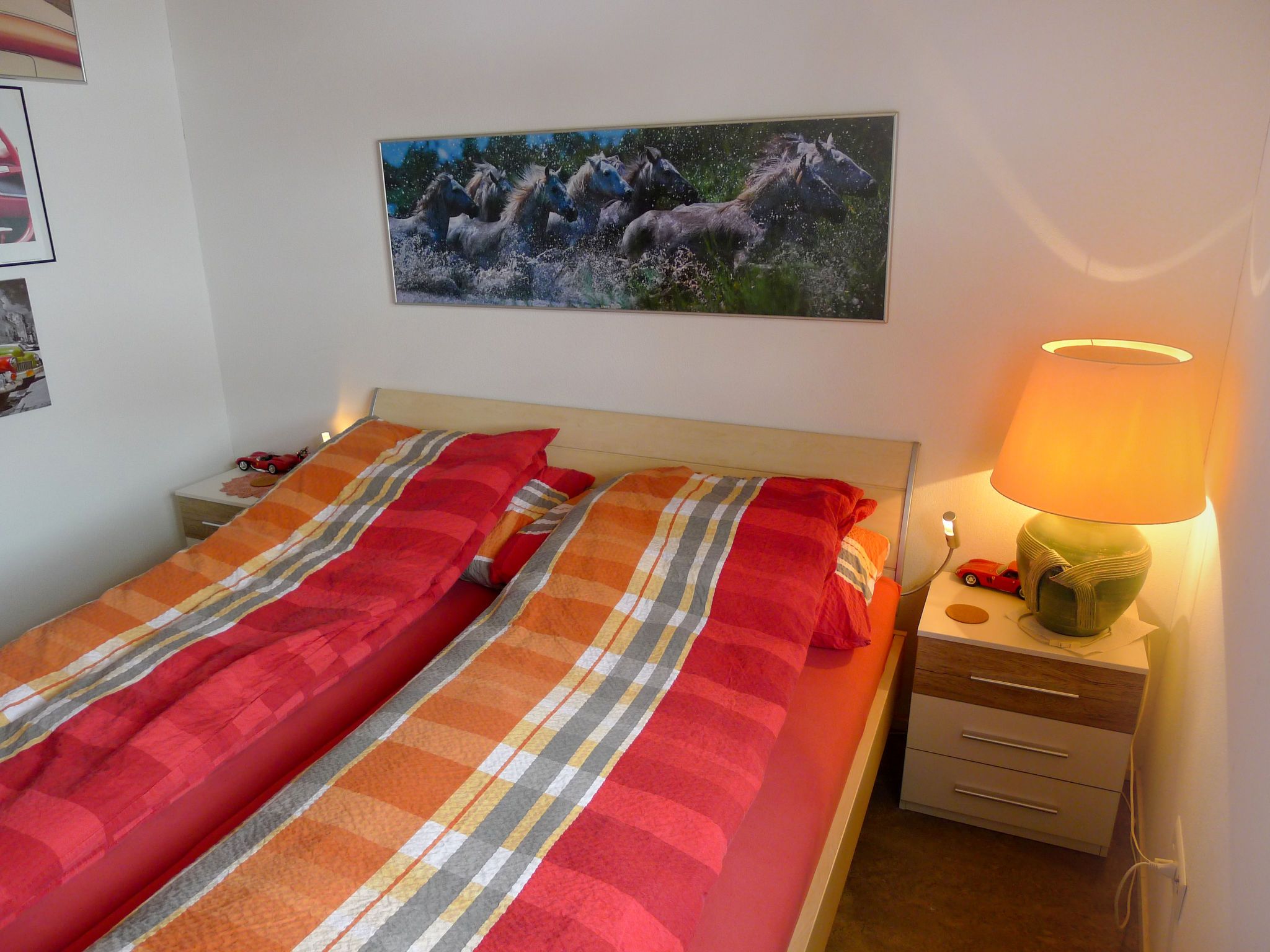 3-Zimmer-Wohnung 77 m2 auf 2 Stockwerken im 1. Stock. Komfortabel und gemütlich eingerichtet: Wohn-/Esszimmer mit 1 Schlafmöglichkeit und Sat-TV (Flachbildschirm). Ausgang zum Balkon. 2 Zimmer, jedes Zimmer mit 1 Doppelbett. Offene Küche (Backofen, Geschirrspüler, 4 Glaskeramikplatten, Wasserkocher, Mikrowelle, elektrische Kaffeemaschine, Fondue Set (Käse)). Bad/WC. Obergeschoss: (steile Treppe) abgeschrägte, offene Galerie mit 1 franz. Bett. Balkon 7 m2. Balkonmöbel, Abstellkammer. Schöne Sicht auf die Berge, die Landschaft und die Ortschaft. Zur Verfügung: Waschmaschine, Wäschetrockner. Internet (Wireless LAN, gratis). Parkplatz (1 Auto), Garage Nr. 2 (1 Auto) beim Haus. Bitte beachten: Nichtraucher-Unterkunft. Anstelle eines abgeschlossenen Schlafzimmers befinden sich manche Schlafplätze in einem offenen Bereich (Galerie, Nische etc.).
