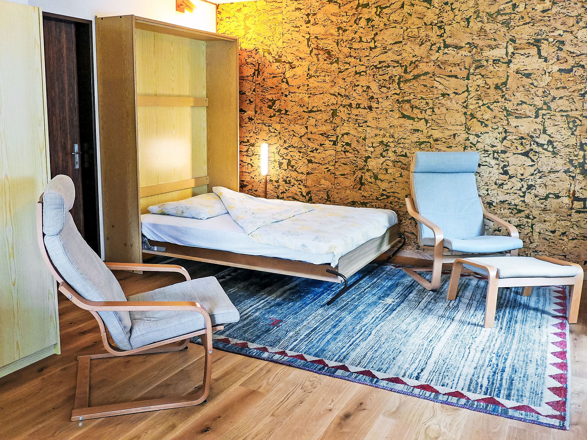 Crap Milan, 2-Zimmer-Wohnung 75 m2, im Erdgeschoss. Zweckmässig und gemütlich eingerichtet: Wohn-/Esszimmer mit 1 Doppelwandschrankbett (140 cm, Länge 200 cm), TV (Flachbildschirm). 1 Zimmer mit 2 Betten. Offene Küche (4 Kochplatten, Backofen, Geschirrspüler) mit Esstisch. Dusche/WC. Gartensitzplatz. Terrassenmöbel, Liegestühle. Schöne Sicht auf die Berge, das Tal, die Landschaft, die Ortschaft und den Fluss. Zur Verfügung: Internet (WLAN, gratis). Bitte beachten: Nichtraucher-Unterkunft. Maximal 1 Haustier/Hund erlaubt. :bei Schnee kann nicht vor dem Haus parkiert werden. ca. 300m gebührenpflichtiger Parkplatz Plan weis, Swisscom TV 2.0 vorhanden.
