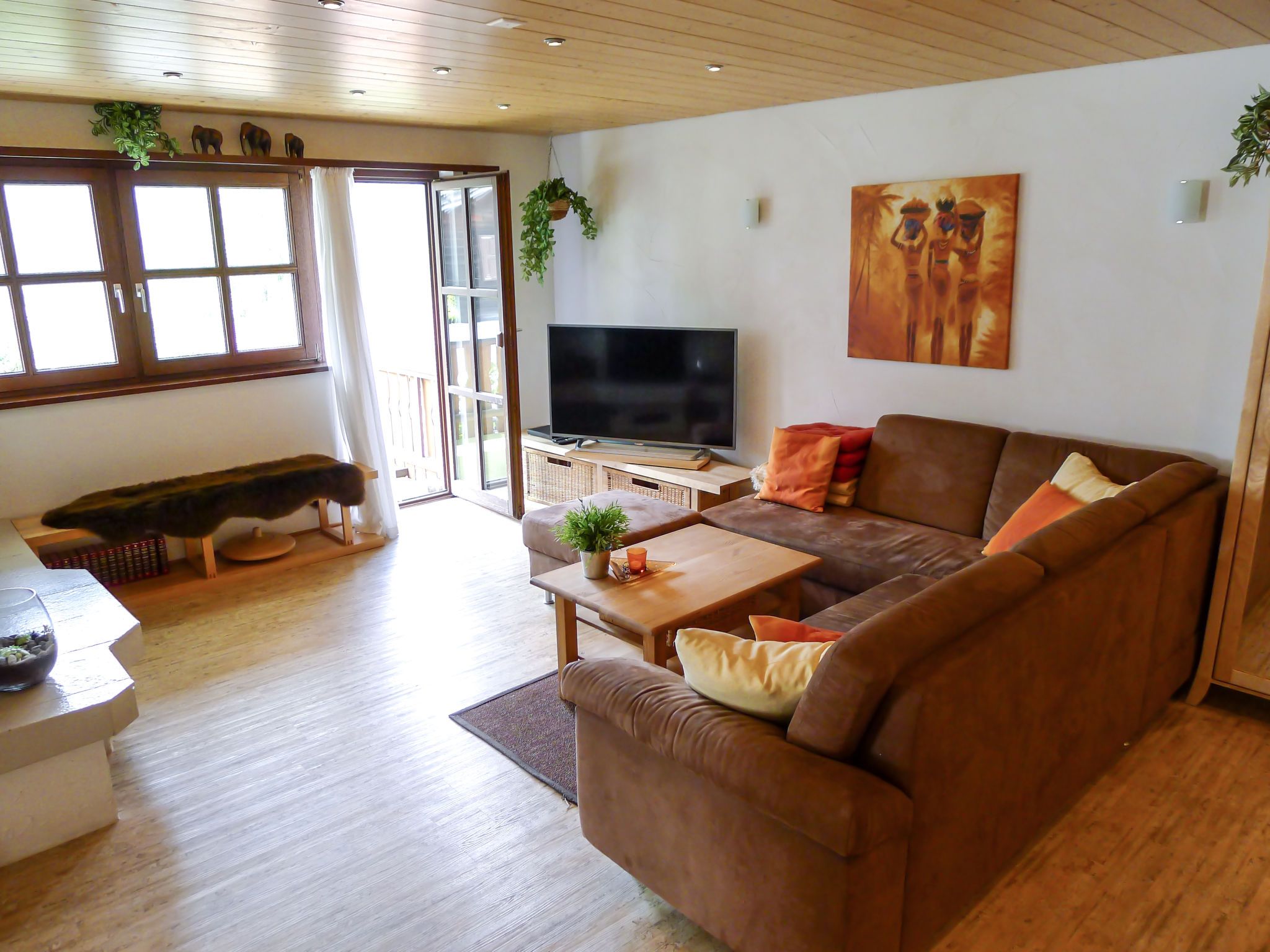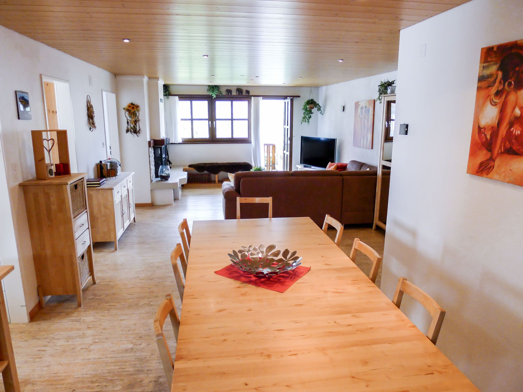 Fricktalerhuus Apt 3, 4-Zimmer-Wohnung 85 m2 im 1. Stock. Komfortabel und gemütlich eingerichtet: Wohn-/Esszimmer mit offenem Kamin und Sat-TV (Flachbildschirm), Stereoanlage. Ausgang zum Balkon. 1 Doppelzimmer. 2 kleine Zimmer, jedes Zimmer mit 2 Betten. Offene Küche (3 Kochplatten, Backofen, elektrische Kaffeemaschine, Racletteofen) mit Esstisch. Dusche/WC. Balkon. Schöne Sicht auf die Berge, die Landschaft und die Ortschaft. Zur Verfügung: Babybett. Internet (WLAN, gratis). Parkplatz beim Haus. Bitte beachten: Nichtraucher-Unterkunft. Maximal 1 Haustier/Hund erlaubt.