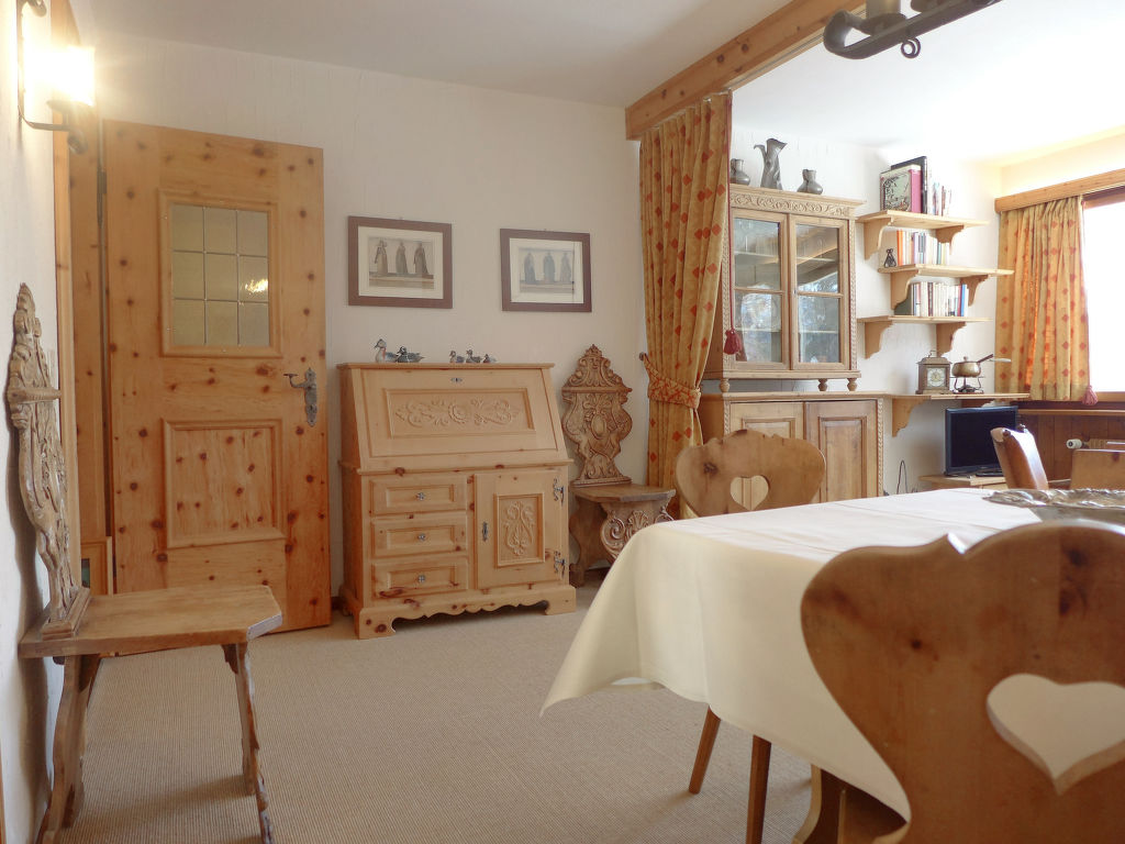 Chesa Cripels II, 3-Zimmer-Wohnung 70 m2, im Erdgeschoss. Einfach und zweckmässig eingerichtet: 1 Zimmer mit 1 Doppelbett (2 x 90 cm, Länge 200 cm). Ausgang zum Balkon, Richtung Süden. 1 Zimmer mit 1 x 1 Etagenbetten (90 cm, Länge 200 cm). Ausgang zum Balkon, Richtung Süden. Wohn-/Esszimmer mit Panoramafenster mit TV (Flachbildschirm). Küche (3 Kochplatten, Backofen, Geschirrspüler, Toaster, Wasserkocher, elektrische Kaffeemaschine, Kapseln für die Kaffeemaschine (Nespresso) extra). Bad/WC. Boiler (120 Liter). Schöne Sicht auf die Berge und die Ortschaft. Zur Verfügung: Haartrockner. Internet (WLAN, gratis). Garage Nr. 1 auf dem Grundstück, Höhe 205 cm, Breite 240 cm. Bitte beachten: Nichtraucher-Unterkunft. Kein Fahrstuhl.