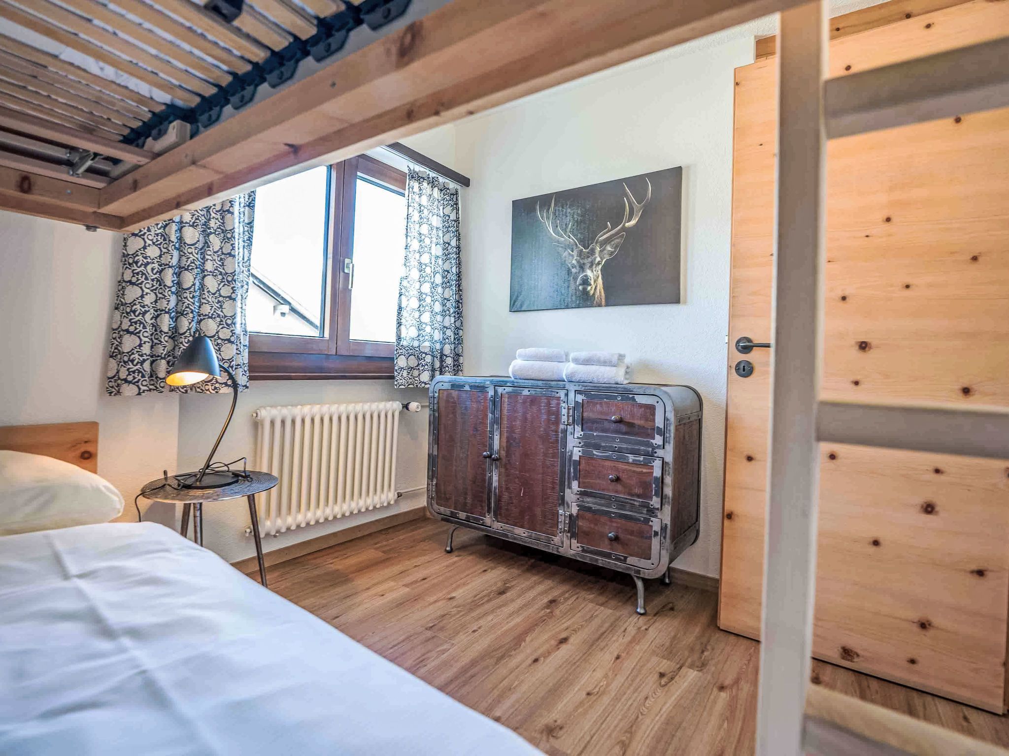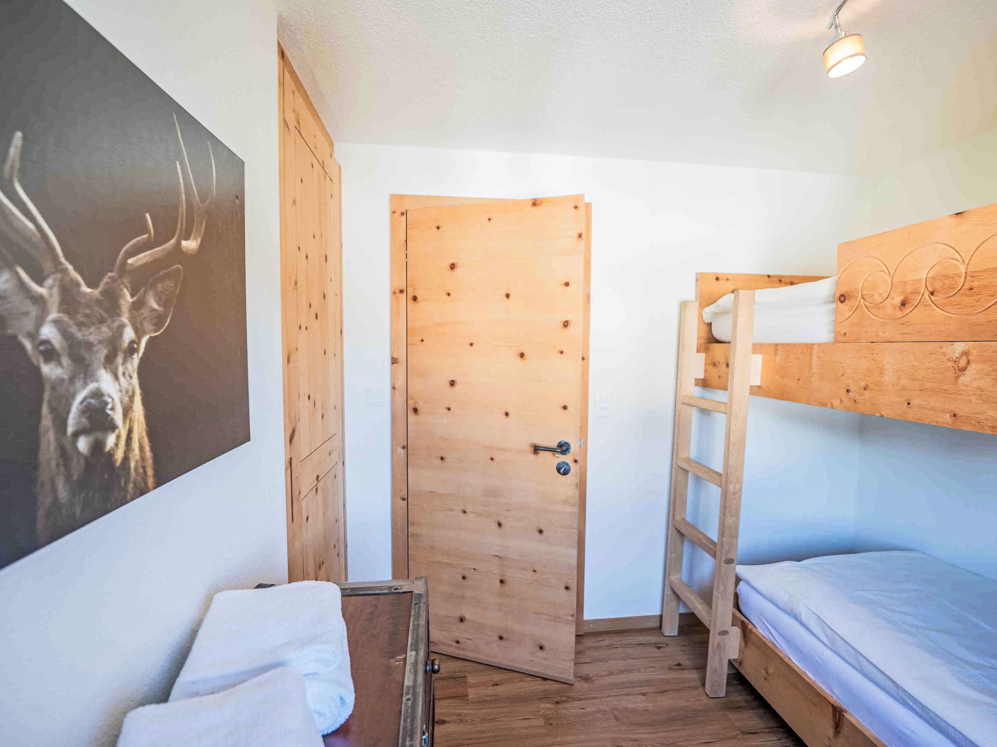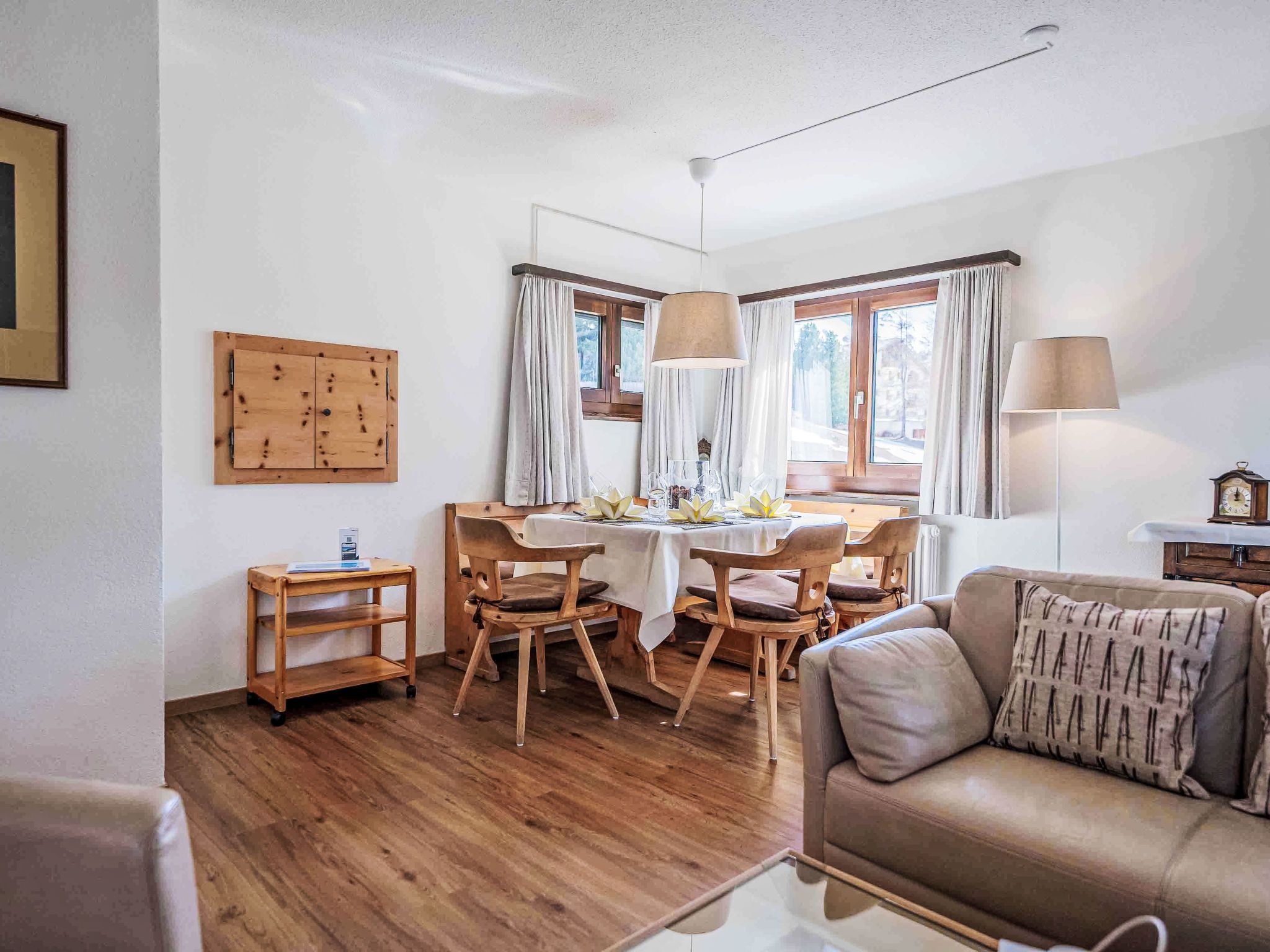 Chesa Mulin, 4-Zimmer-Wohnung 70 m2 im 1. Stock. Teilweise renoviert im Jahre 2018, komfortabel eingerichtet: Wohn-/Esszimmer mit offenem Kamin, TV und Radio. Ausgang zum Balkon, Richtung Nordwesten. 1 kleines Zimmer mit 1 x 2 Etagenbetten (90 cm, Länge 200 cm). 1 Zimmer mit 2 Betten (90 cm, Länge 190 cm). 1 kleines Zimmer mit 2 Betten (90 cm, Länge 190 cm). Küche (Backofen, Geschirrspüler, 4 Induktionskochplatten, Toaster, Wasserkocher, Mikrowelle, Tiefkühler, elektrische Kaffeemaschine, Kapseln für die Kaffeemaschine (Nespresso) extra, Racletteofen, Fondue Set (Käse)) mit Durchreiche. Bad/WC, Dusche/WC. Kleiner Balkon. Sicht auf die Berge und die Ortschaft. Zur Verfügung: Bügeleisen, Haartrockner. Internet (WLAN, gratis). Garage, Höhe 180 cm, Breite 220 cm. Bitte beachten: geeignet für Familien. Nichtraucher-Unterkunft. Maximal 2 Haustiere/Hunde erlaubt.
