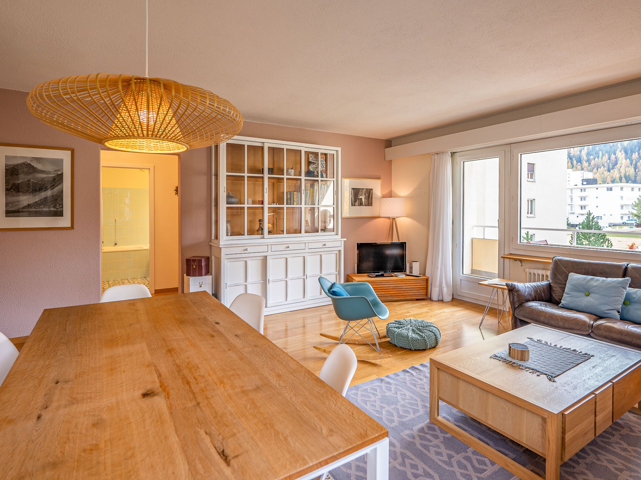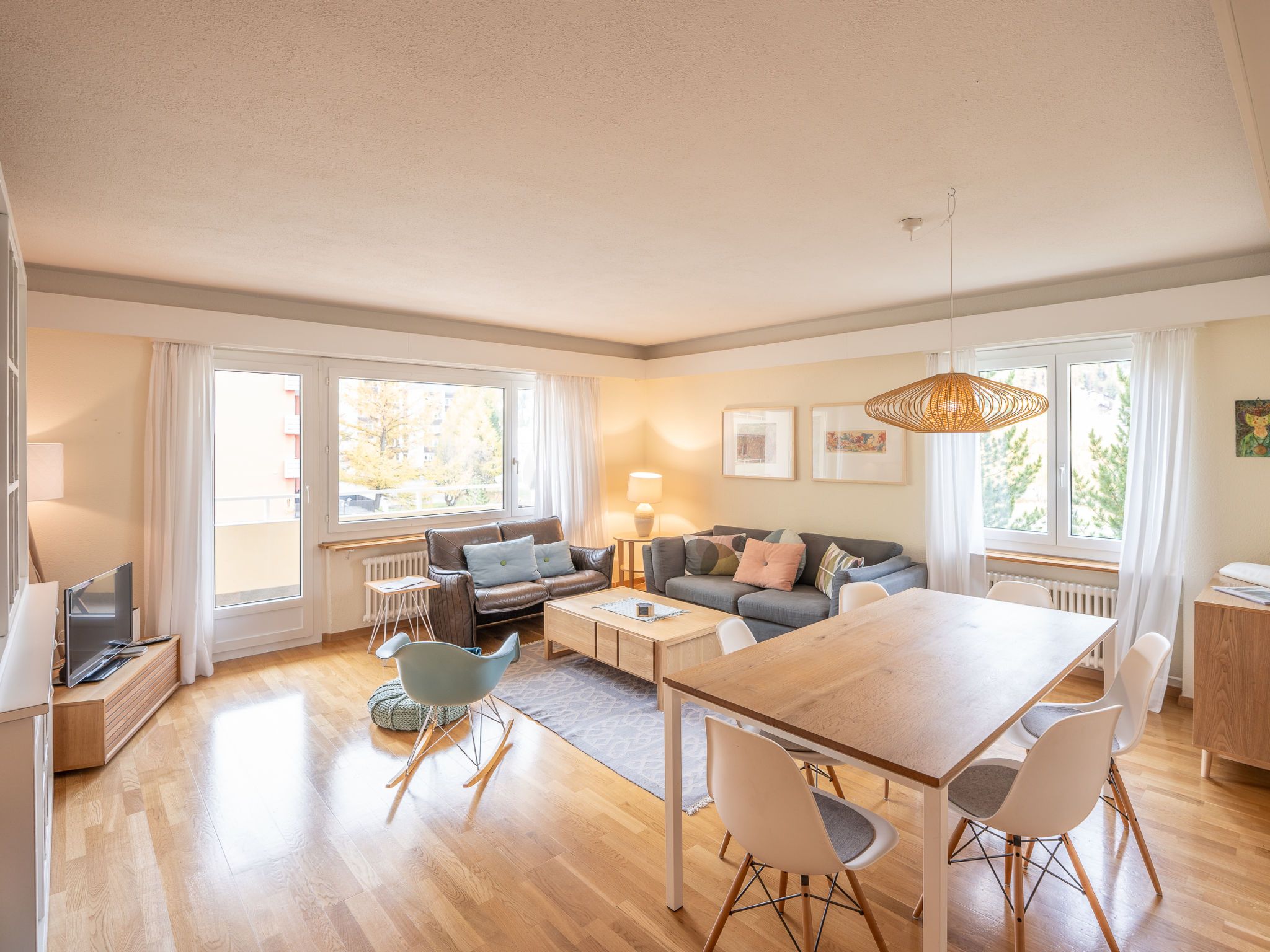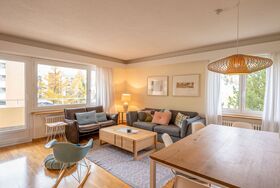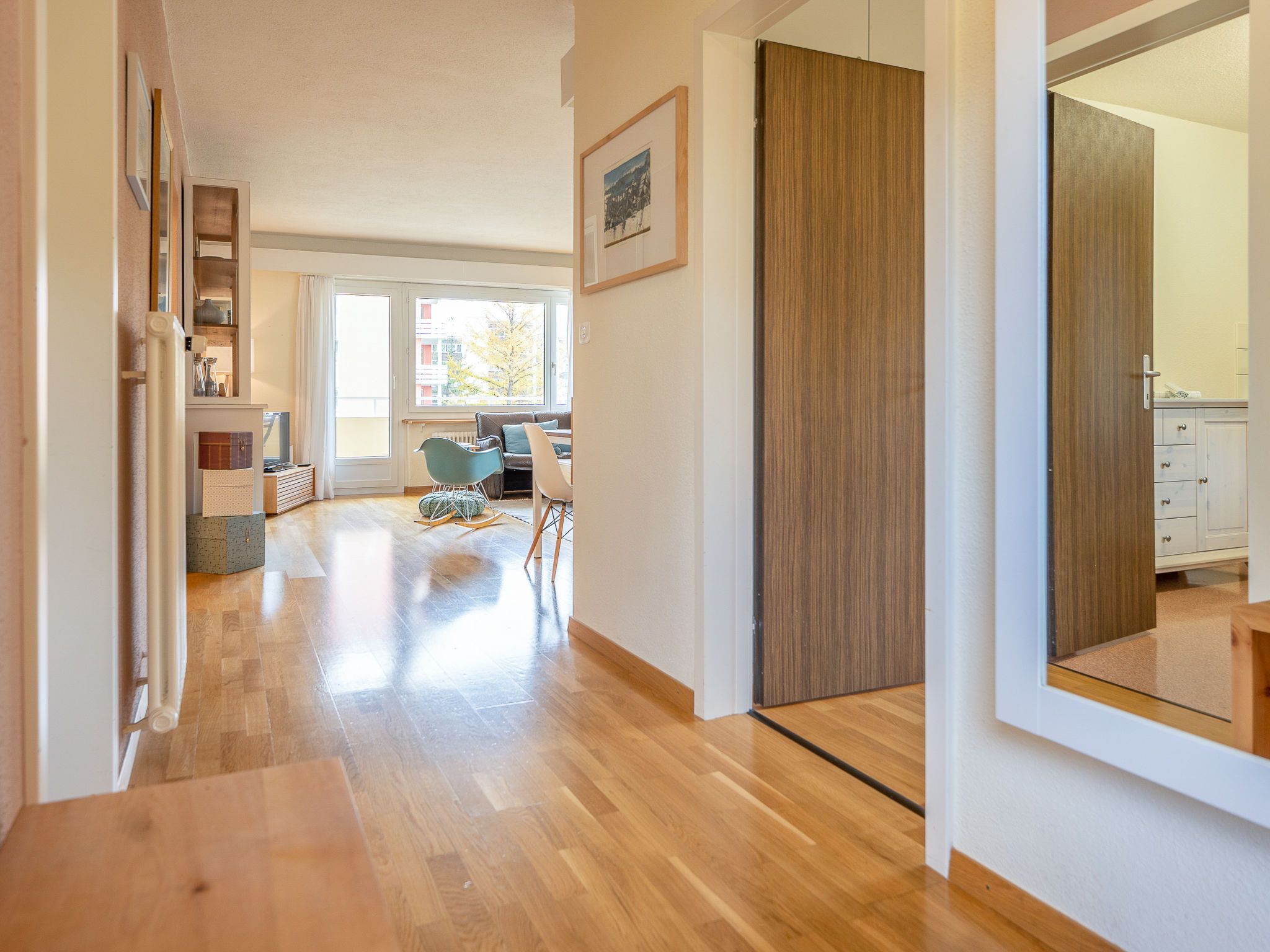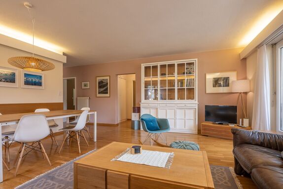 Chesa Daniela B - Anita, 3-Zimmer-Wohnung 84 m2 im 1. Stock. Hell, teilweise renoviert im Jahre 2015, komfortabel und modern eingerichtet: Wohn-/Esszimmer mit TV. Ausgang zum Balkon, Richtung Südwesten. 1 Zimmer mit 1 Doppelbett (2 x 100 cm, Länge 200 cm). Ausgang zum Balkon. 1 Zimmer mit 2 Betten (100 cm, Länge 200 cm). Grosse Küche (Backofen, Geschirrspüler, 4 Glaskeramikplatten, Toaster, Wasserkocher, elektrische Kaffeemaschine, Kapseln für die Kaffeemaschine (Nespresso) extra). Bad/WC. Heizung. Parkettboden. Kleiner Balkon 8 m2. Balkonmöbel. Sehr schöne Sicht auf den See, die Berge und die Stadt. Zur Verfügung: Bügeleisen, Haartrockner. Internet (Wireless LAN, gratis). Garage auf dem Grundstück (1 Auto), Höhe 215 cm, Breite 234 cm. Bitte beachten: geeignet für Familien. Nichtraucher-Unterkunft.