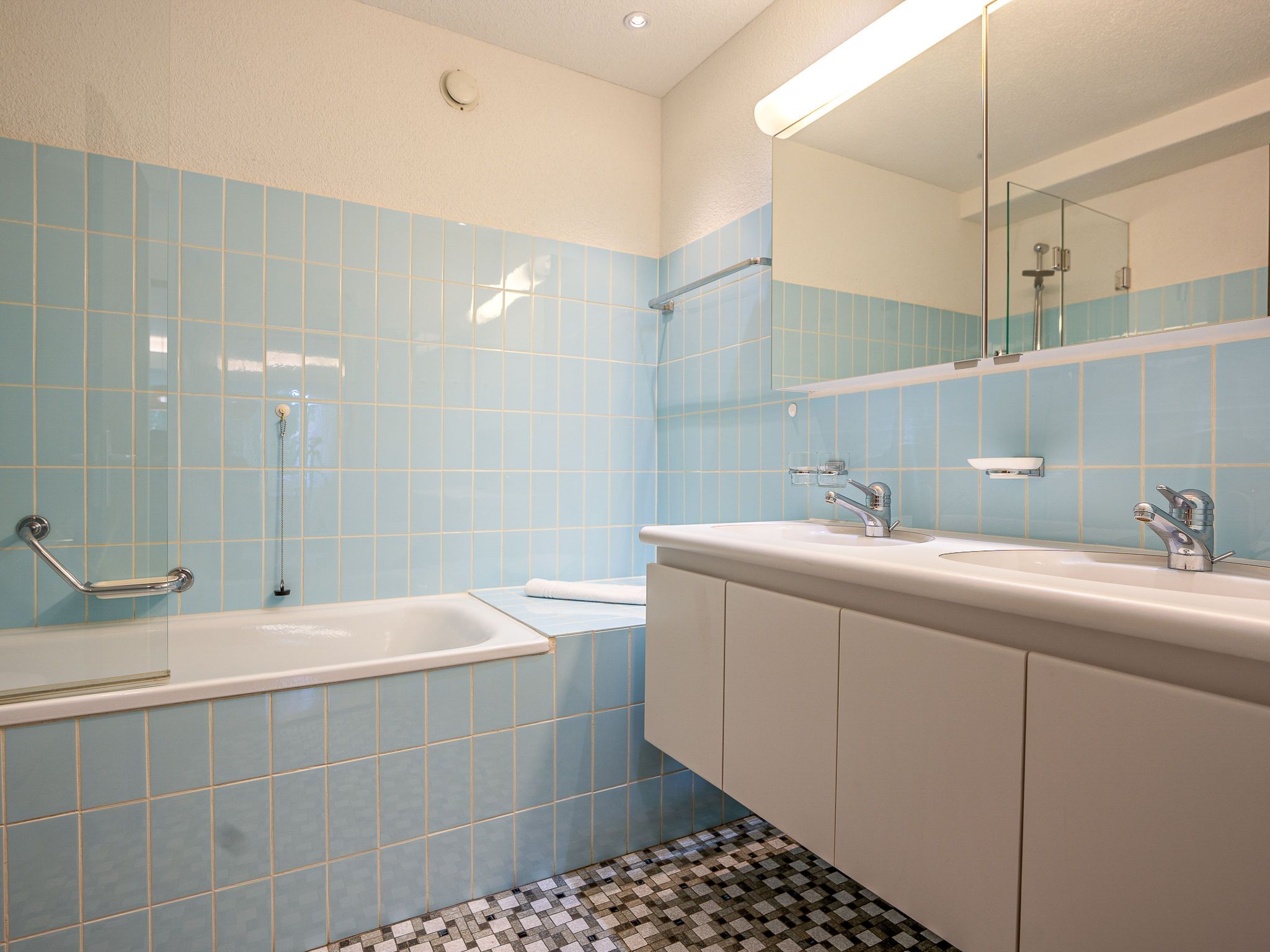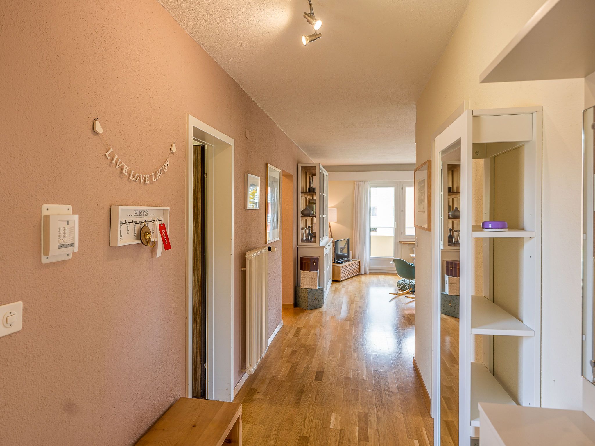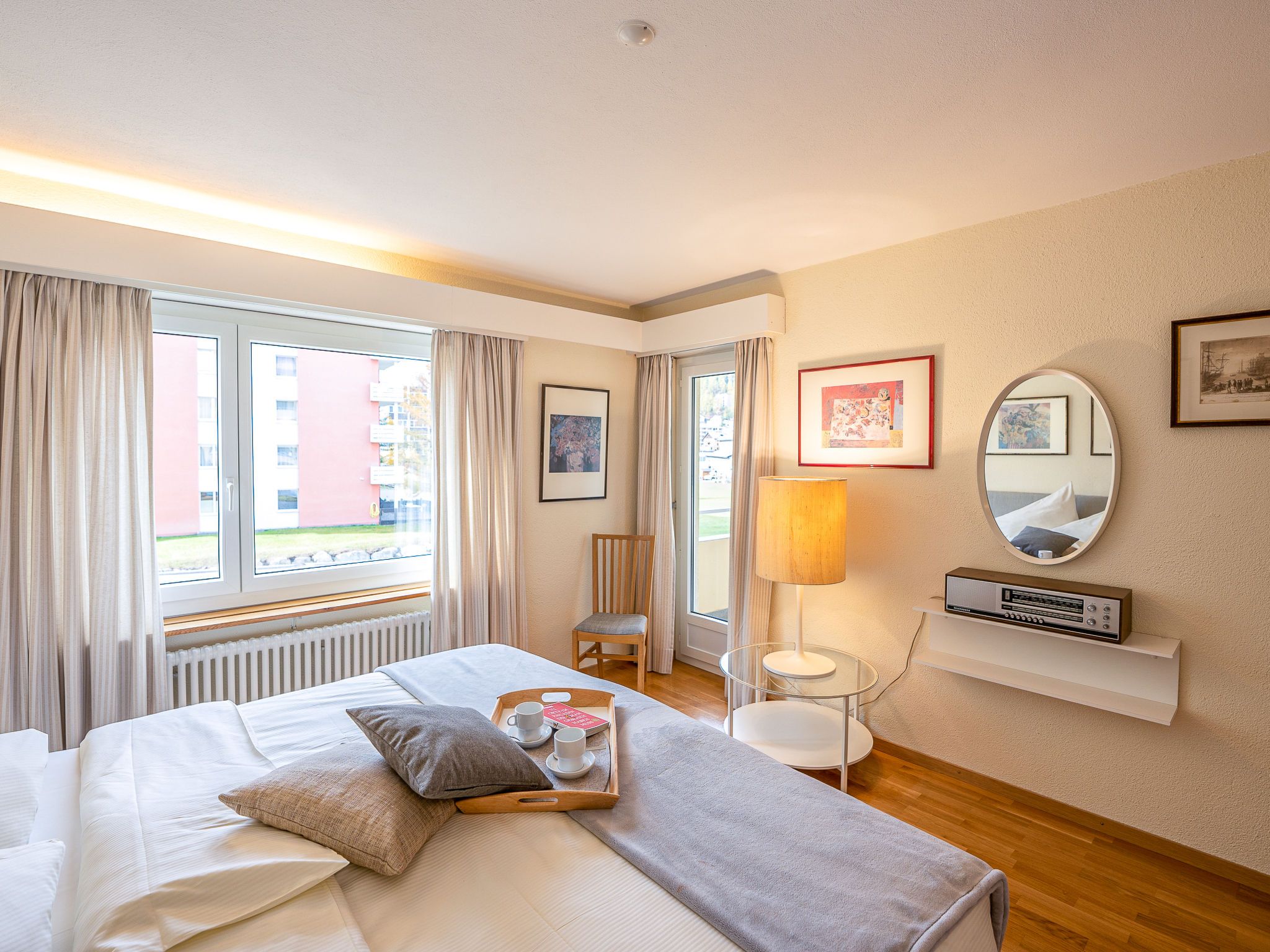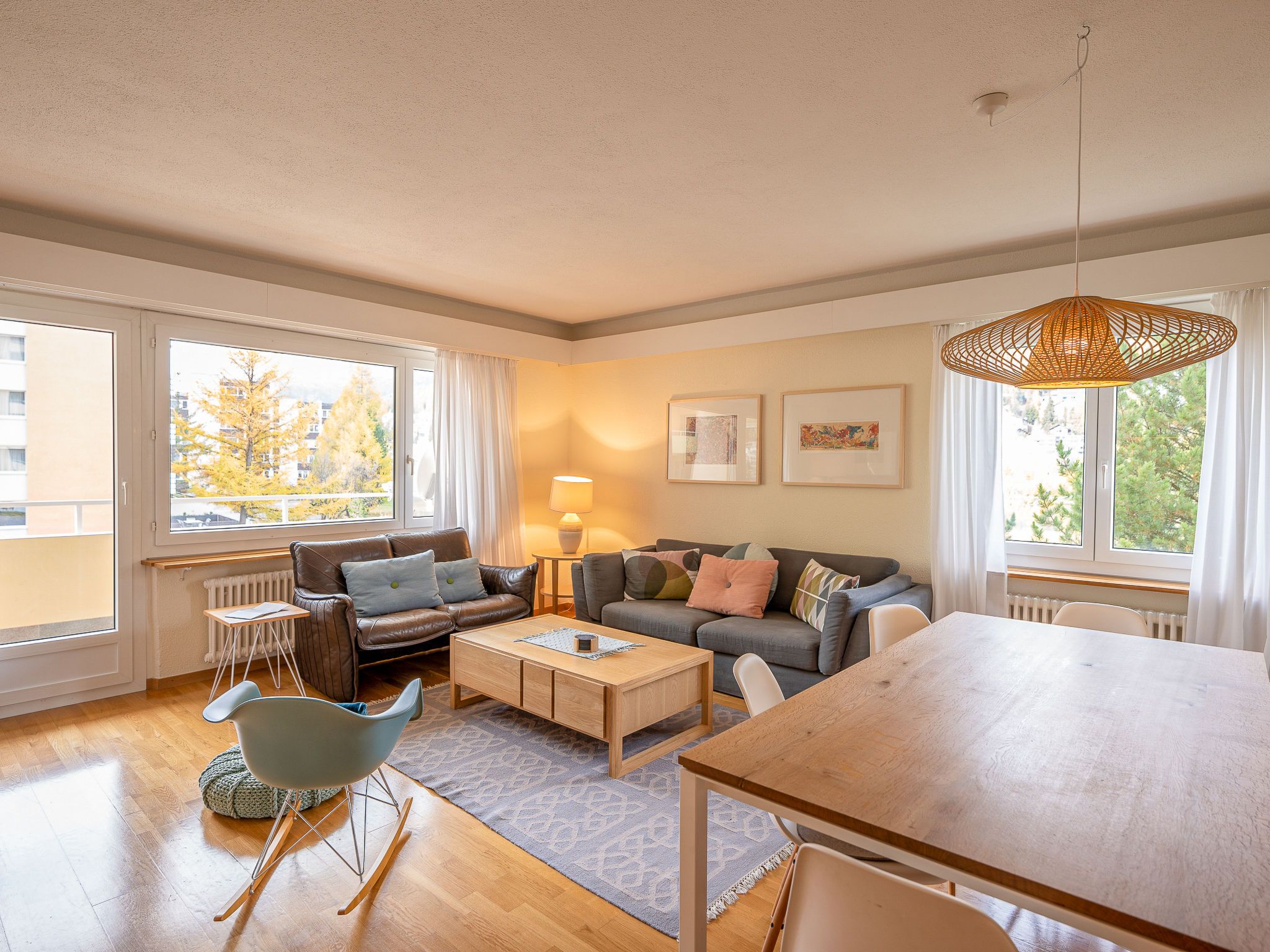 Chesa Daniela B - Anita, 3-Zimmer-Wohnung 84 m2 im 1. Stock. Hell, teilweise renoviert im Jahre 2015, komfortabel und modern eingerichtet: Wohn-/Esszimmer mit TV. Ausgang zum Balkon, Richtung Südwesten. 1 Zimmer mit 1 Doppelbett (2 x 100 cm, Länge 200 cm). Ausgang zum Balkon. 1 Zimmer mit 2 Betten (100 cm, Länge 200 cm). Grosse Küche (Backofen, Geschirrspüler, 4 Glaskeramikplatten, Toaster, Wasserkocher, elektrische Kaffeemaschine, Kapseln für die Kaffeemaschine (Nespresso) extra). Bad/WC. Heizung. Parkettboden. Kleiner Balkon 8 m2. Balkonmöbel. Sehr schöne Sicht auf den See, die Berge und die Stadt. Zur Verfügung: Bügeleisen, Haartrockner. Internet (Wireless LAN, gratis). Garage auf dem Grundstück (1 Auto), Höhe 215 cm, Breite 234 cm. Bitte beachten: geeignet für Familien. Nichtraucher-Unterkunft.