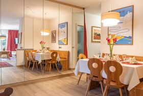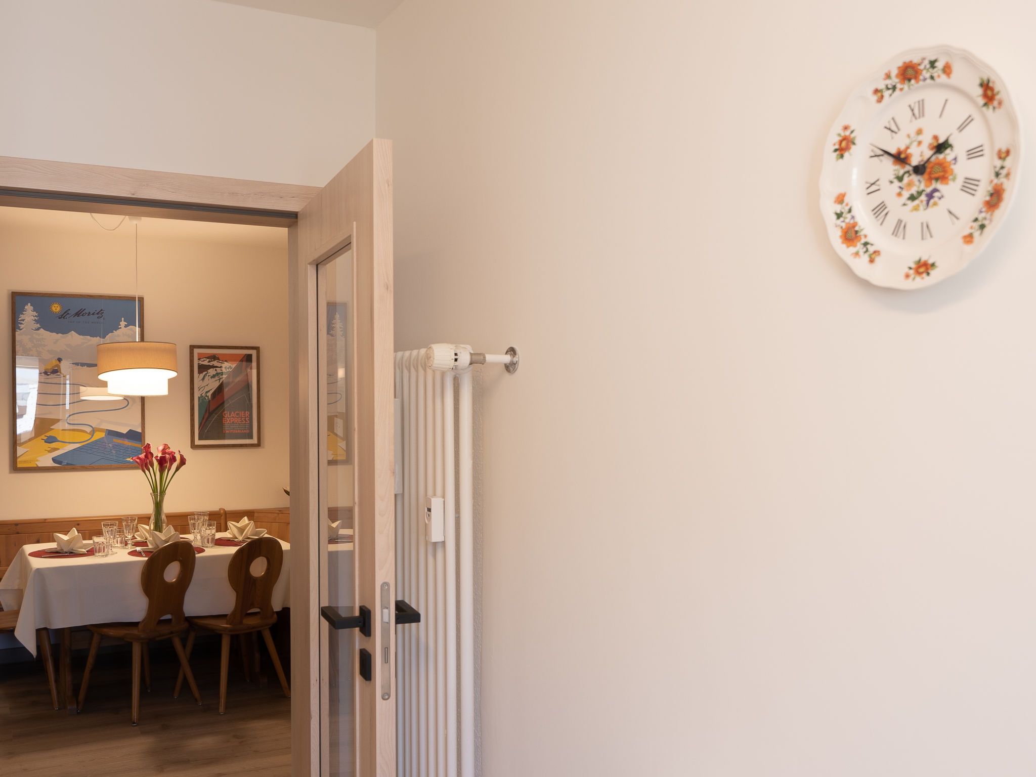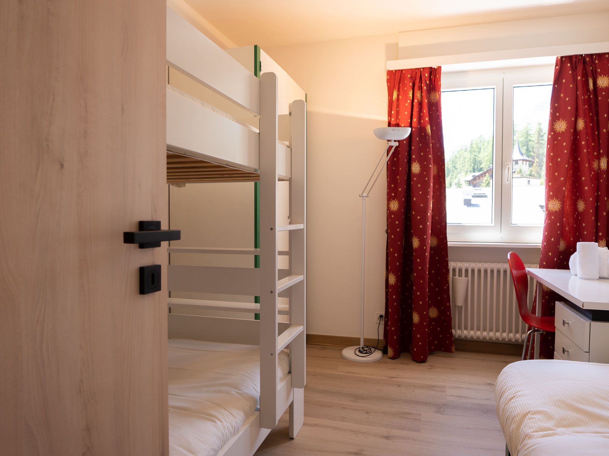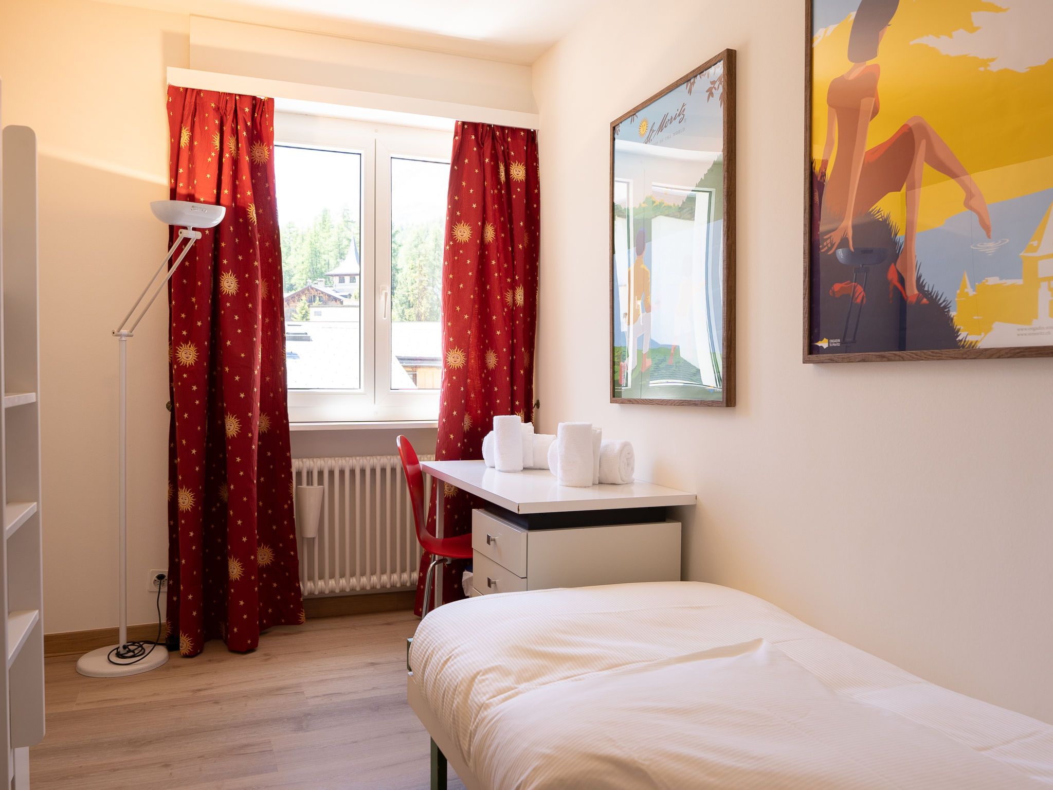 Chesa Derby 27, 3-Zimmer-Wohnung 65 m2 im 3. Stock. Hell, teilweise renoviert im Jahre 2022, gemütlich eingerichtet: offenes Wohn-/Esszimmer mit offenem Kamin (nur Deko), Esstisch und TV (Flachbildschirm). Ausgang zum Balkon, Richtung Süden. 1 Doppelzimmer mit 1 Doppelbett (2 x 90 cm, Länge 200 cm). Ausgang zum Balkon. 1 Zimmer mit 1 Bett (90 cm, Länge 190 cm), 1 x 1 Etagenbetten (90 cm, Länge 190 cm). Kleine Küche (Backofen, Geschirrspüler, 4 Glaskeramikplatten, Toaster, Wasserkocher, elektrische Kaffeemaschine, Kapseln für die Kaffeemaschine (Nespresso) extra, Fondue Set (Käse)). Bad/Bidet/WC, sep. WC. Heizung. Balkon 10 m2. Balkonmöbel. Seitliche Sicht auf die Berge. Zur Verfügung: Haartrockner. Internet (Wireless LAN, gratis). Garage Nr. G (1 Auto), Höhe 200 cm, Breite 220 cm. Bitte beachten: geeignet für Familien Wohnung auf Parkplatzseite. Nichtraucher-Unterkunft. Bedingt durch das Coronavirus (COVID-19) ergreift diese Unterkunft Maßnahmen, um die Sicherheit der Gäste und Mitarbeiter zu gewährleisten. Die Nutzung des Pools kann daher nur eingeschränkt bzw. teilweise auch gar nicht möglich sein.