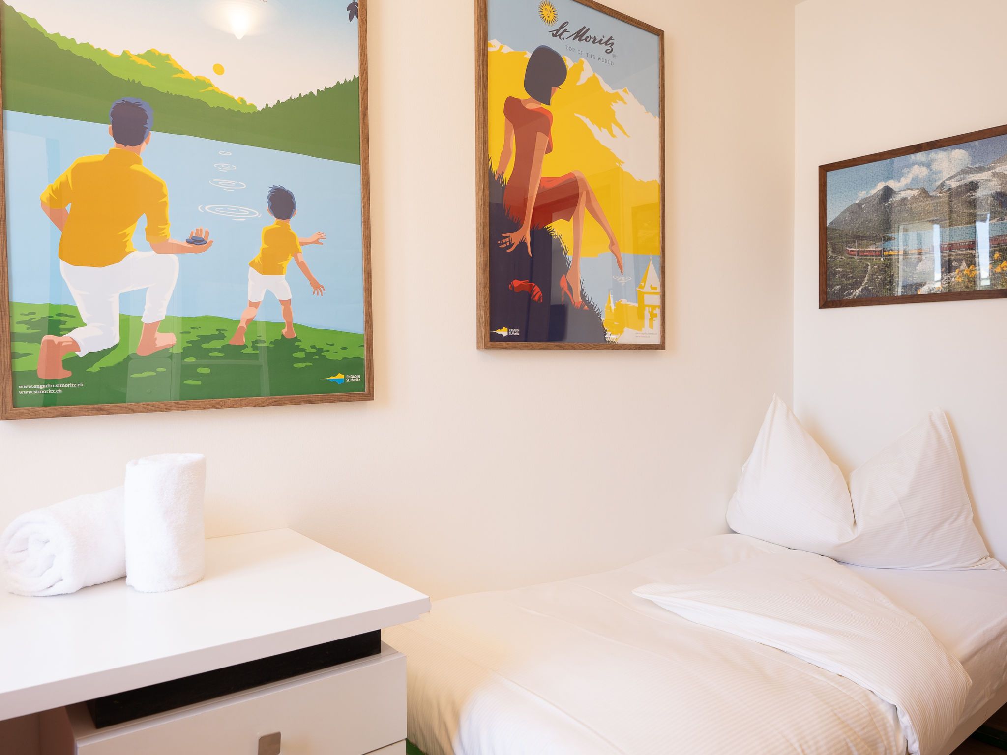 St. Moritz-Bad: Altes Mehrfamilienhaus Chesa Derby 27, auf 5 Stockwerken. Im Ortszentrum von St.Moritz-Bad, zentrale Lage in einem Wohnquartier, 400 m vom Waldrand, vom See, 800 m vom Skigebiet. Im Hause: Fahrstuhl, Einstellraum für Fahrräder, Skiraum, Zentralheizung, Waschmaschine (extra), Wäschetrockner (zur Mitbenutzung, extra). Gemeinschaftsgarage. Einkaufsgeschäft 100 m, Supermarkt 700 m, Restaurant 30 m, Bar, Bäckerei 450 m, Fahrradverleih 100 m, Bushaltestelle St. Moritz Bad, Hallenbad 260 m, Bahnstation 1.9 km, Hallenbad 300 m, Thermalbad Heilbadzentrum St.Moritz 450 m, See St. Moritzer See 400 m. Golfplatz (18 Loch) 7.2 km, Surfschule 5.2 km, Tennis 850 m, Tennishalle, Minigolf 170 m, Reitstall 2.7 km, Wanderwege ab Haus 400 m, Radweg 400 m, Luftseilbahn 800 m, Skilift 800 m, Skipisten, Skiverleih 100 m, Skibushaltestelle 150 m, Skischule 1.9 km, Kinderskischule 1.9 km, Schlittelbahn 5.5 km, Langlaufloipe 300 m, Eisfeld 500 m, Kinderspielplatz 400 m. Nahe gelegene Sehenswürdigkeiten: Segantini Museum 2.1 km, Engadiner Museum 1.1 km, Mili Weber-Haus 2.8 km, Olympia Bob Run mit Museum 2.5 km, Nietzsche Museum in Sils-Maria 9.4 km. Bekannte Skigebiete sind gut erreichbar: Corviglia Piz Nair 800 m, Corvatsch - Furtschellas 6.4 km, Diavolezza - Lagalb 19.6 km. Bekannte Seen in der Umgebung sind gut erreichbar: St.Moritzer See 400 m, Silvaplaner See 5.1 km, Silser See 9.4 km. Wandergebiete: Stazerwald & Stazersee, Corviglia Piz Nair, Muottas Muragl. Die Schlüsselübergabe findet bei der Agentur Interhome in St Moritz Bad statt.