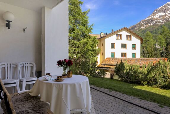 Chesa Maurus A1, 2-Zimmer-Wohnung 63 m2, im Erdgeschoss. Komfortabel und gemütlich eingerichtet: Wohn-/Esszimmer mit 1 Doppeldiwanbett (1 x 140 cm, Länge 200 cm), offenem Kamin, Sat-TV und Stereoanlage. Ausgang zum Gartensitzplatz, Richtung Süden. 1 Zimmer mit 1 Doppelbett (2 x 90 cm, Länge 200 cm). Küche (Backofen, Geschirrspüler, Toaster, Wasserkocher, elektrische Kaffeemaschine, Kapseln für die Kaffeemaschine (Nespresso) extra, Fondue Set (Käse)). Bad/WC. Gartensitzplatz. Terrassenmöbel. Sicht auf die Berge. Zur Verfügung: Bügeleisen, Haartrockner. Internet (Wireless LAN, gratis). Garage Nr. 22, Höhe 188 cm, Breite 200 cm. Bitte beachten: Nichtraucher-Unterkunft. Maximal 1 Haustier/Hund erlaubt.