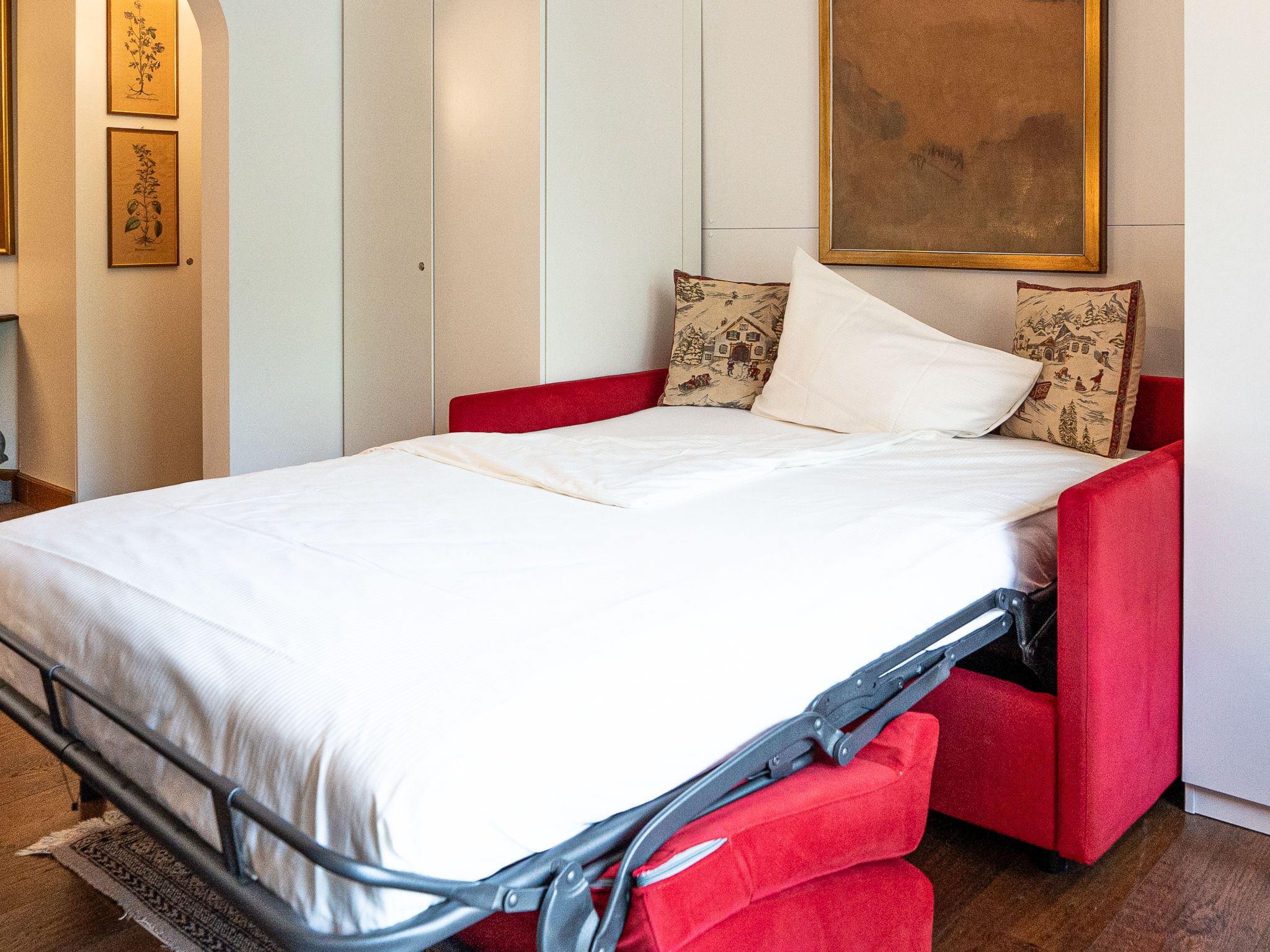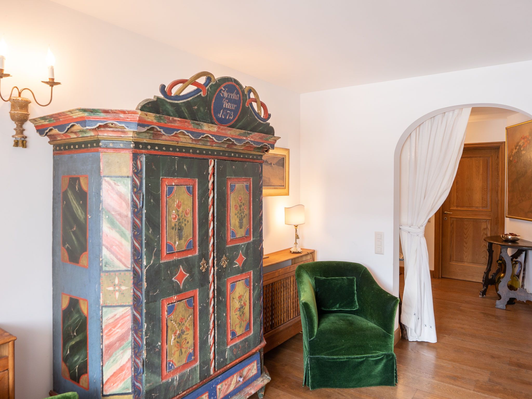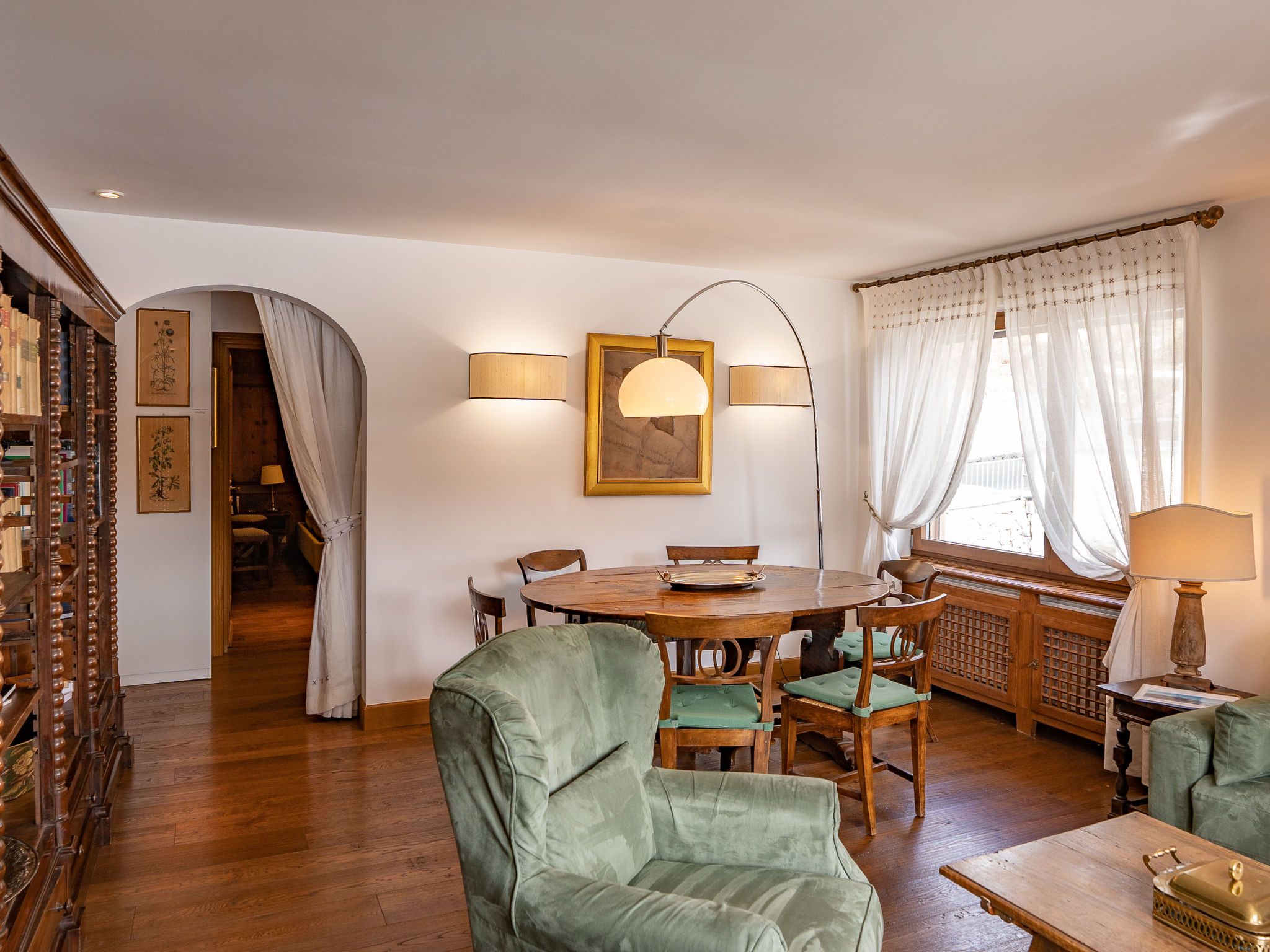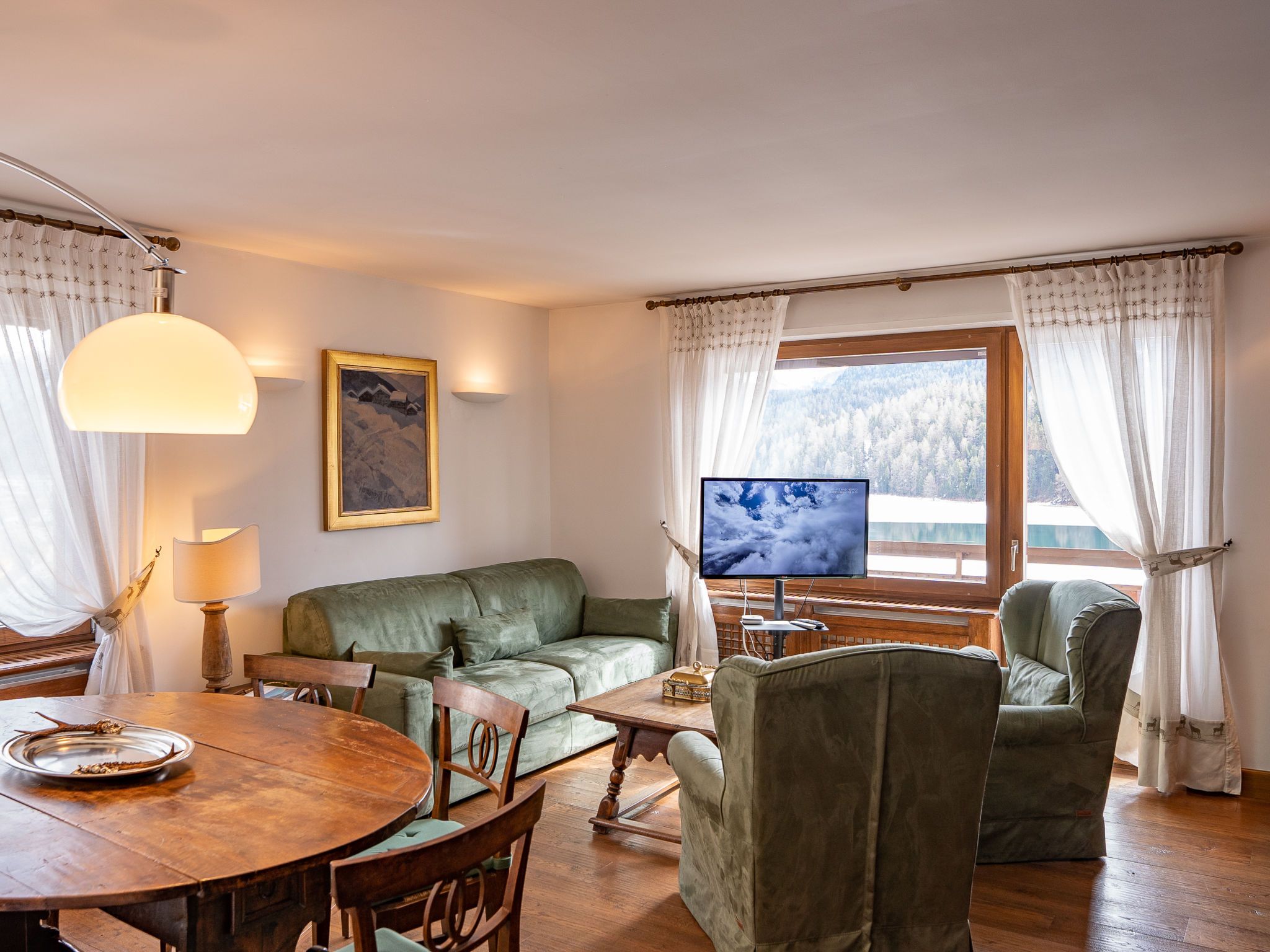 Chesa Sonnalpine B 48, 3-Zimmer-Wohnung 85 m2, im Dachgeschoss. Hell, geschmackvoll und stilvoll eingerichtet: Wohn-/Esszimmer mit TV (Flachbildschirm). Ausgang zum Balkon. Kleines Wohn-/Schlafzimmer mit 1 Diwanbett (140 cm, Länge 190 cm). Ausgang zum Balkon, Richtung Süden. 1 Doppelzimmer mit 1 Doppelbett (1 x 180 cm, Länge 200 cm), Bad/Dusche/Bidet/WC. Küche (Backofen, Geschirrspüler, 4 Induktionskochplatten, Toaster, Wasserkocher, Tiefkühler, elektrische Kaffeemaschine, Kapseln für die Kaffeemaschine (Nespresso) extra). Dusche/WC. Parkettboden. Balkonmöbel. Panoramasicht auf den See, die Berge, die Landschaft und die Ortschaft. Zur Verfügung: Bügeleisen, Haartrockner. Internet (Wireless LAN, gratis). Garage Nr. 48, Höhe 185 cm, Breite 180 cm. Bitte beachten: Nichtraucher-Unterkunft, Nichtraucher-Haus. Maximal 1 Haustier/Hund erlaubt. :Parkplatz nur für Kleinwagen.