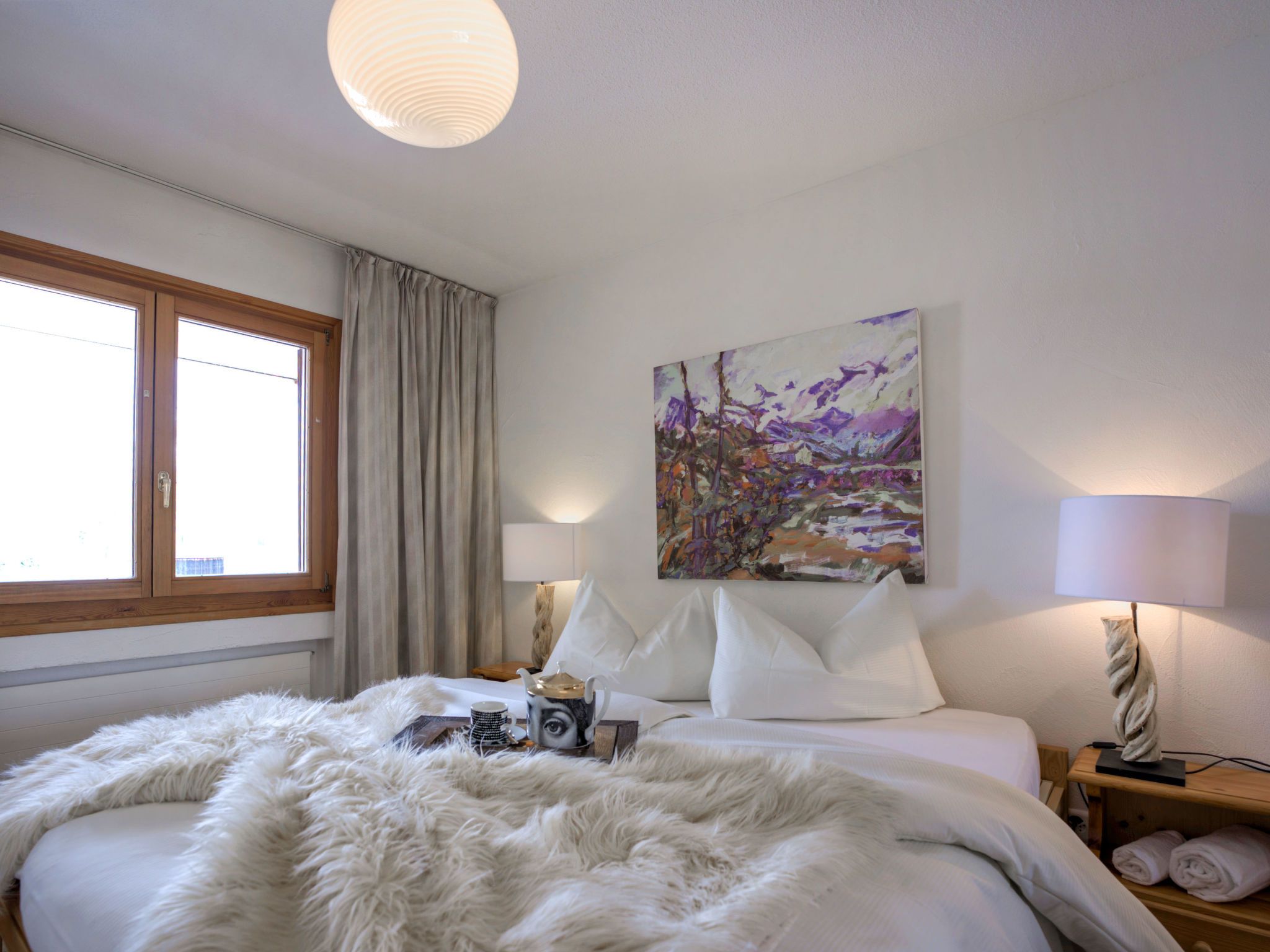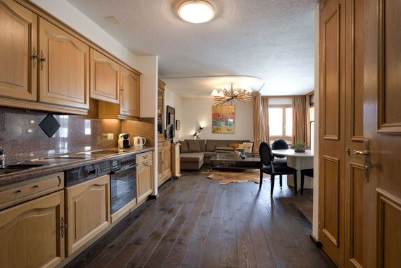 Chesa Ludains 8, 2-Zimmer-Wohnung 60 m2 im 2. Stock. Sehr geschmackvoll und stilvoll eingerichtet: Wohn-/Esszimmer mit Vorhang mit 1 Diwanbett (140 cm, Länge 190 cm), Esstisch und TV (Flachbildschirm). Ausgang zum Balkon. 1 Doppelzimmer mit 1 Doppelbett (2 x 90 cm, Länge 195 cm). Offene Küche (Backofen, Geschirrspüler, 4 Glaskeramikplatten, Toaster, Wasserkocher, elektrische Kaffeemaschine, Kapseln für die Kaffeemaschine (Nespresso) extra). Bad/WC. Bodenheizung. Parkettboden, Teppichboden. Kleiner Balkon. Balkonmöbel. Sicht auf den See und die Berge. Zur Verfügung: Haartrockner. Internet (Wireless LAN, gratis). Garage Nr. 8 (1 Auto), Höhe 225 cm, Breite 330 cm. Bitte beachten: Nichtraucher-Unterkunft.