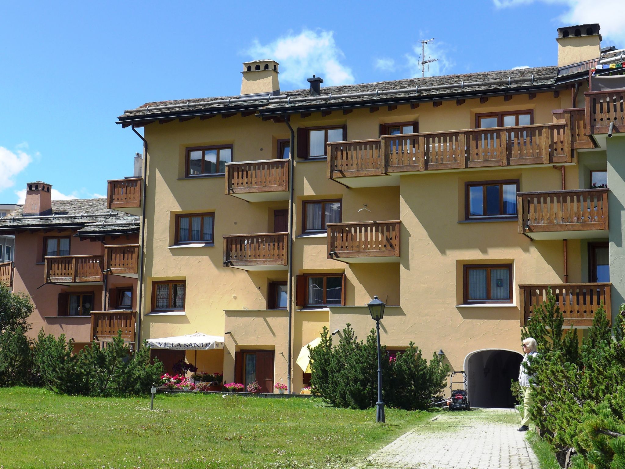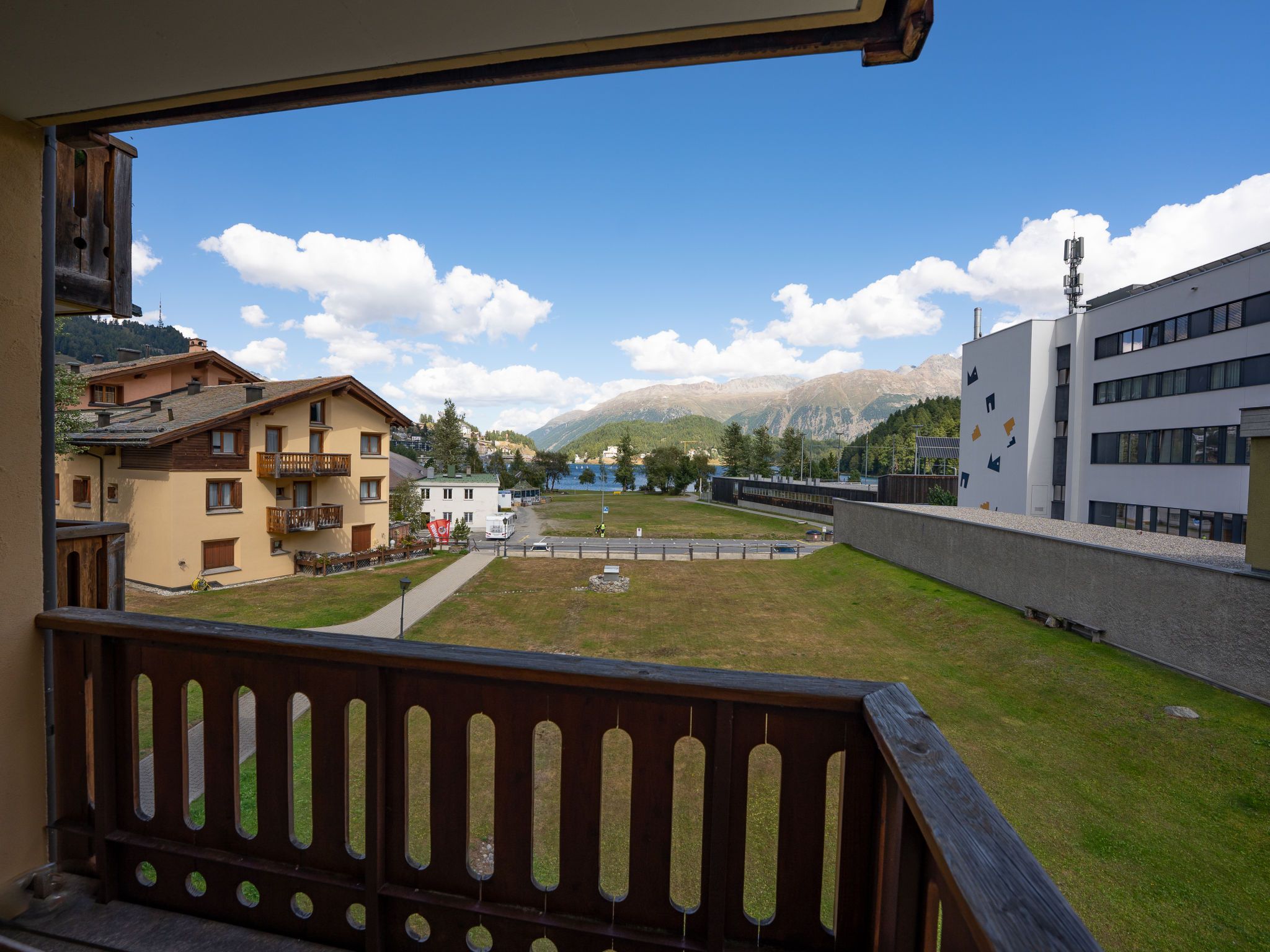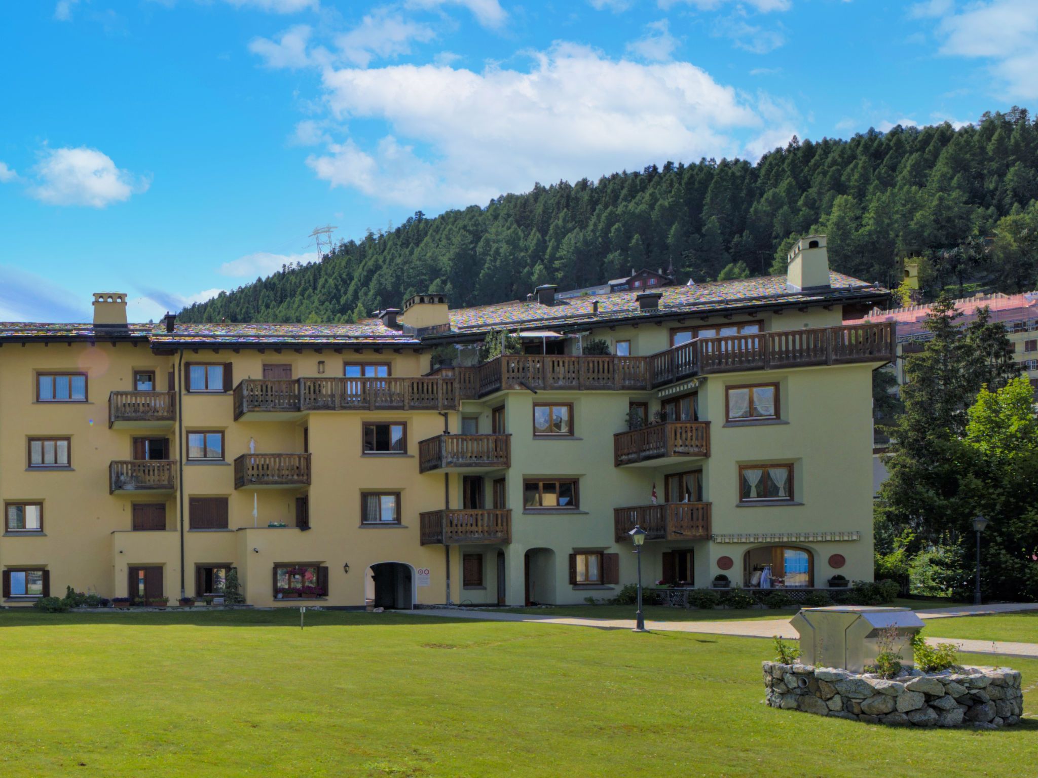 St.Moritz-Bad: Schönes Mehrfamilienhaus Chesa Ludains, auf 4 Stockwerken. Belebte, sonnige Lage, 200 m vom See. Im Hause: Fahrstuhl, Skiraum, Zentralheizung, Waschmaschine, Wäschetrockner (zur Mitbenutzung, extra). Gemeinschaftsgarage Nr. 8. Einkaufsgeschäft 50 m, Supermarkt 50 m, Restaurant 250 m, Bar 250 m, Bäckerei 200 m, Fahrradverleih 220 m, Bushaltestelle St. Moritz Bad, Via Salet 250 m, Bahnstation St. Moritz 650 m, Hallenbad 600 m, Thermalbad Heilbadzentrum St.Moritz 750 m, See St. Moritzer See 200 m. Golfplatz (18 Loch) 6.7 km, Surfschule 5.3 km, Tennis 1.1 km, Tennishalle 1.1 km, Minigolf 600 m, Reitstall 2.9 km, Wanderwege ab Haus 200 m, Radweg, Luftseilbahn 1 km, Skilift 1 km, Skipisten 1 km, Skiverleih 400 m, Skibushaltestelle 250 m, Skischule 1.7 km, Kinderskischule 1.7 km, Schlittelbahn 5 km, Langlaufloipe 600 m, Eisfeld 100 m, Kinderspielplatz 800 m. Nahe gelegene Sehenswürdigkeiten: Segantini Museum 1.9 km, Engadiner Museum 850 m, Mili Weber-Haus 2.2 km, Olympia Bob Run mit Museum 2.3 km, Nietzsche Museum in Sils-Maria 9.6 km. Bekannte Skigebiete sind gut erreichbar: Corviglia Piz Nair 1 km, Corvatsch - Furtschellas 6.6 km, Diavolezza - Lagalb 19 km. Bekannte Seen in der Umgebung sind gut erreichbar: St. Moritzer See 200 m, Silvaplaner See 5.3 km, Silser See 9.6 km. Wandergebiete: Stazerwald & Stazersee, Corvialia Piz Nair, Corviglia Piz Nair. Die Schlüsselübergabe findet bei der Agentur Interhome in St. Moritz statt.