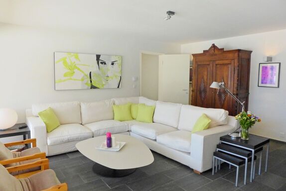 Chesa Sur Puoz 7, 3-Zimmer-Wohnung 95 m2 im 1. Stock. Geräumig und hell, komfortabel und modern eingerichtet: Wohn-/Esszimmer mit Panoramafenster mit TV (Flachbildschirm). Ausgang zum Balkon. 1 Doppelzimmer mit 1 franz. Bett (1 x 160 cm, Länge 200 cm). 1 Zimmer mit 2 Betten (95 cm, Länge 200 cm). Offene Küche (Backofen, Geschirrspüler, 4 Glaskeramikplatten, Tiefkühler, elektrische Kaffeemaschine, Kapseln für die Kaffeemaschine (Nespresso) extra). Bad/Bidet/WC, Dusche/WC. Heizung. Holzdielenboden, Natursteinboden. Terrassenmöbel (2). Herrliche Panoramasicht auf die Berge und die Ortschaft. Zur Verfügung: Bügeleisen, Haartrockner. Internet (Wireless LAN, gratis). Garage Nr. 14 auf dem Grundstück (1 Auto), Höhe 235 cm, Breite 310 cm. Bitte beachten: Nichtraucher-Unterkunft, Nichtraucher-Haus. Maximal 1 Haustier/Hund erlaubt.
