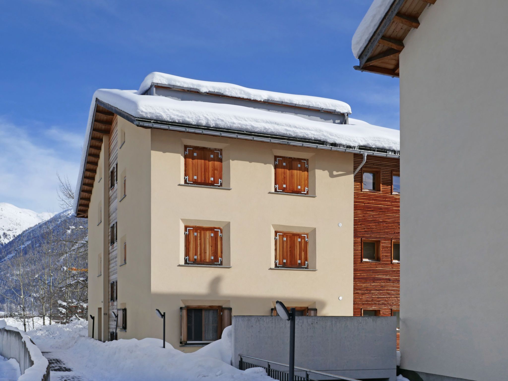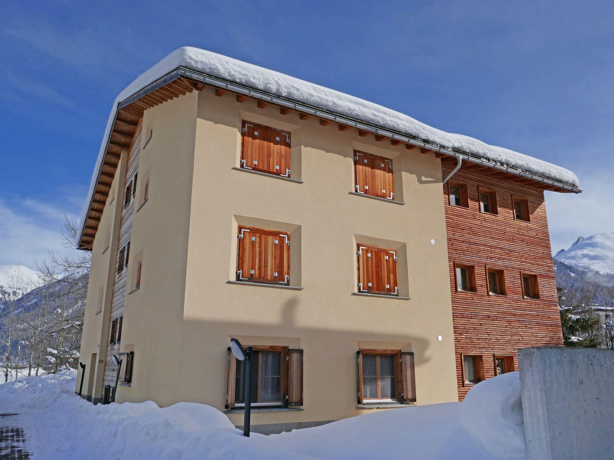 Samedan 6 km von St. Moritz: Komfortables Mehrfamilienhaus Chesa San Bastiaun, auf 3 Stockwerken. Am Ortsrand, in einem Wohnquartier, 6 km vom See, 20 m vom Fluss, in einer Sackgasse. Im Hause: Fahrstuhl, Einstellraum für Fahrräder, Skiraum, Zentralheizung, Waschmaschine, Wäschetrockner (zur Mitbenutzung), Trockenraum. Gemeinschaftsgarage beim Haus. Einkaufsgeschäft 550 m, Supermarkt, Restaurant 550 m, Bäckerei 1.1 km, Café 1.1 km, Fahrradverleih 2.3 km, Bushaltestelle Samedan, Ariefa 190 m, Bahnstation Samedan 800 m, Hallenbad 6.5 km, Thermalbad Mineralbad & Spa Samedan 650 m, See St. Moritzer See 6 km. Golfplatz (18 Loch) 1 km, Surfschule 13 km, Tennis 1.2 km, Tennishalle 6.7 km, Minigolf 6.5 km, Reitstall 6.1 km, Wanderwege ab Haus, Radweg 300 m, Luftseilbahn 2.6 km, Skilift 1 km, Skiverleih 1.2 km, Skischule 2.6 km, Kinderskischule 2.6 km, Langlaufloipe 1 km, Eisfeld 1.2 km, Kinderspielplatz 450 m. Nahe gelegene Sehenswürdigkeiten: Chesa Planta in Samedan 800 m, Segantini Museum in St. Moritz 6 km, Nietzsche Haus in Sils-Maria 16 km, Olympic Bob Run St. Moritz 5.5 km, Kirche St. Maria in Pontresina 7.6 km. Bekannte Skigebiete sind gut erreichbar: Corviglia - Piz Nair 2.6 km, Corvatsch - Furtschellas 14 km, Diavolezza - Lagalb 18 km. Bekannte Seen in der Umgebung sind gut erreichbar: St. Moritzer See 7 km, Silvaplana See 13 km, Silser See 17 km. Wandergebiete: Corviglia - Piz Nair, Muottas Muragl, Val Bever & Val Rosegg. Bitte beachten: Be- und Entladen am Ferienhaus möglich. Eisenbahnlinie in der Nähe 20 m vom Haus. Flugplatz in der Nähe 900 m vom Haus. Weitere Unterkünfte sind buchbar.