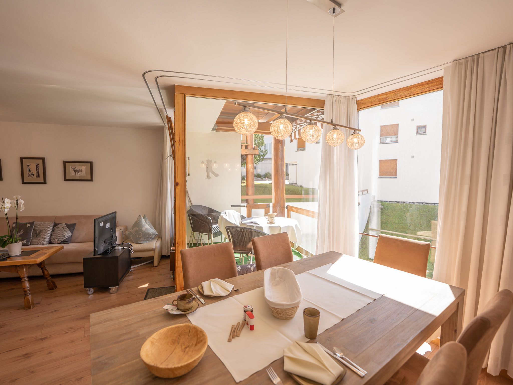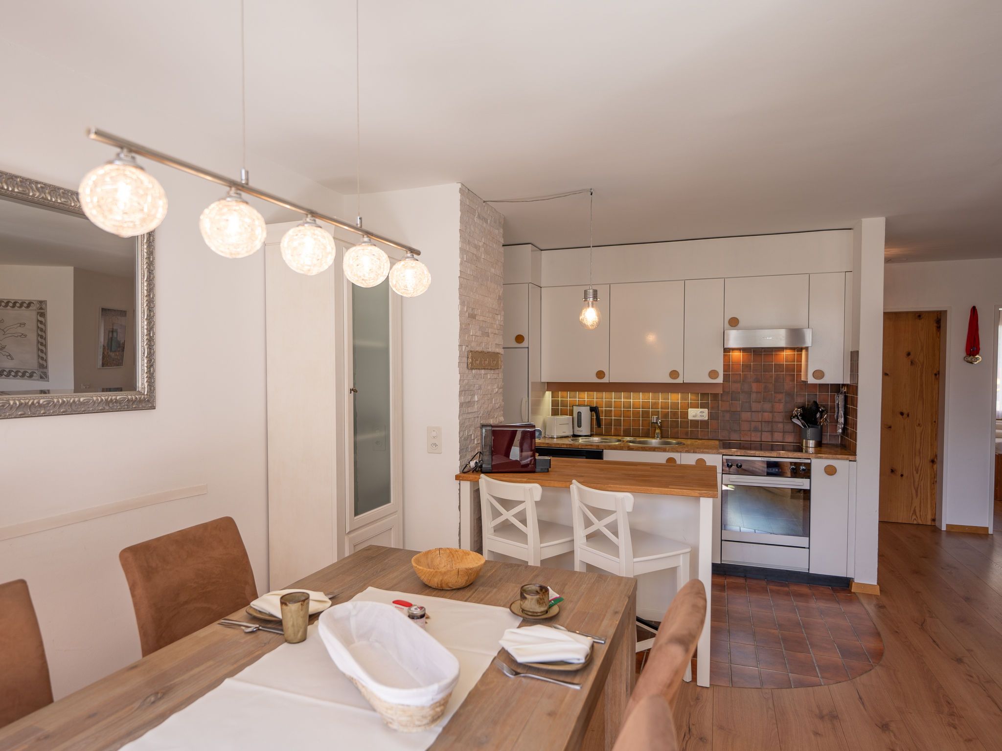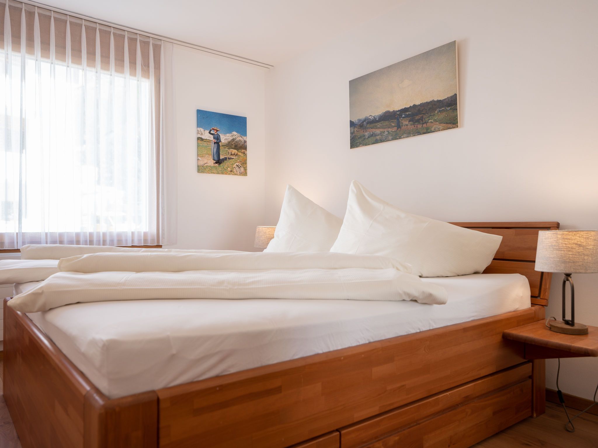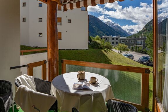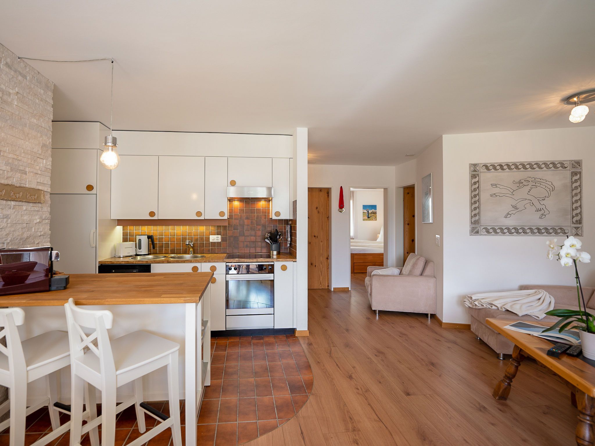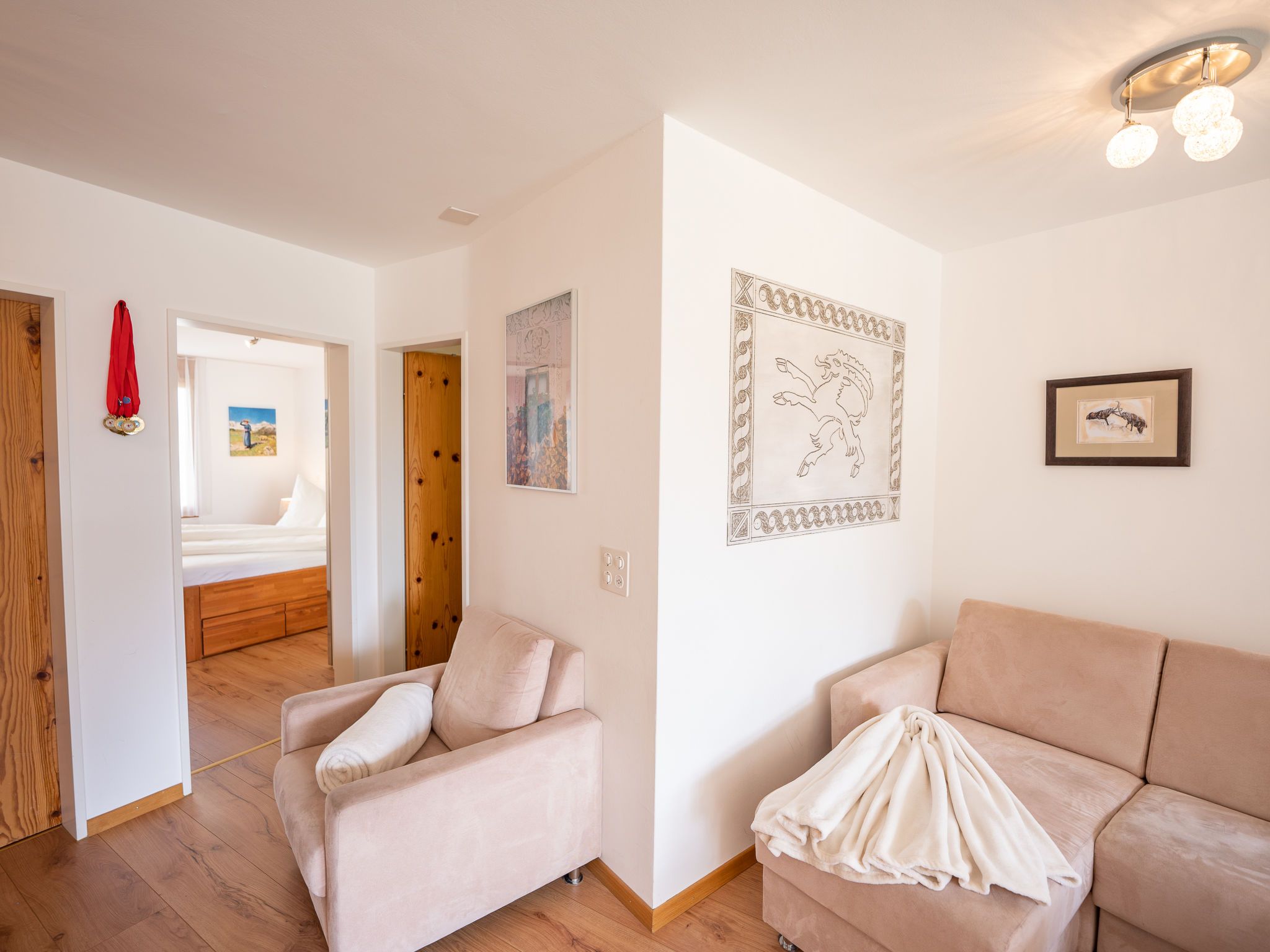 Chesa Piz Cotschen 3, 2-Zimmer-Wohnung 60 m2 im 1. Stock. Hell, modern und gemütlich eingerichtet: Wohn-/Esszimmer mit Esstisch und TV (Flachbildschirm). Ausgang zur Loggia. 1 Doppelzimmer mit 1 Doppelbett (2 x 90 cm, Länge 200 cm). Offene Küche (Backofen, Geschirrspüler, 4 Glaskeramikplatten, Toaster, Wasserkocher, elektrische Kaffeemaschine, Kapseln für die Kaffeemaschine (Delizio Migros) extra, Racletteofen, Fondue Set (Käse)). Dusche/WC. Holzdielenboden. Balkonmöbel. Schöne Sicht auf die Berge und die Landschaft. Zur Verfügung: Babybett (extra), Haartrockner. Internet (Wireless LAN, gratis). Garage Nr. DIEAG (50m), Höhe 200 cm, Breite 220 cm. Bitte beachten: Nichtraucher-Unterkunft, Nichtraucher-Haus. Maximal 1 Haustier/Hund erlaubt.