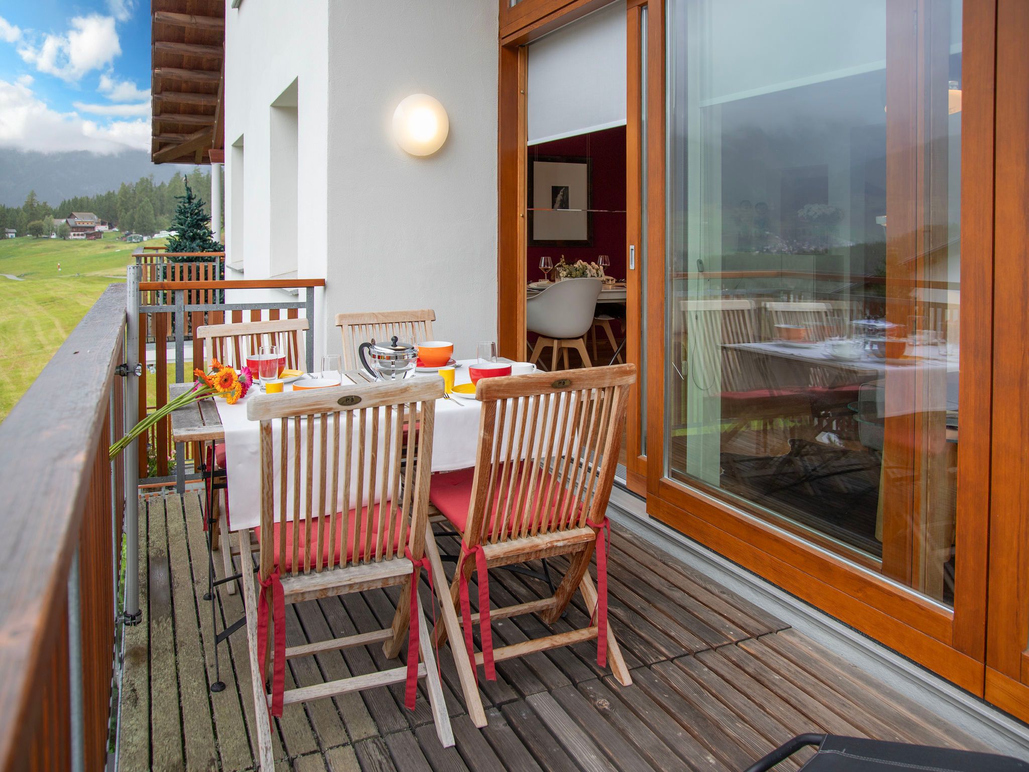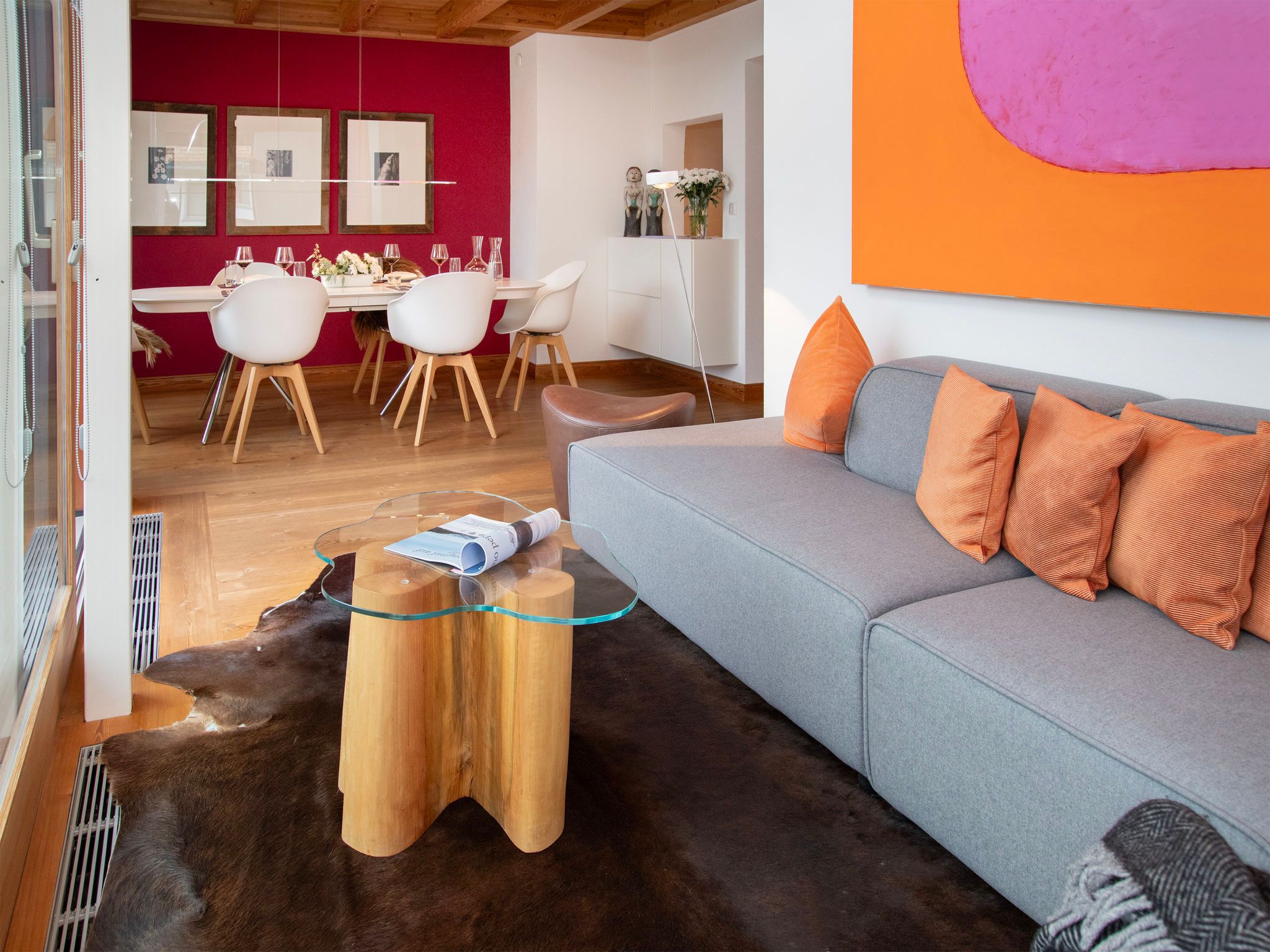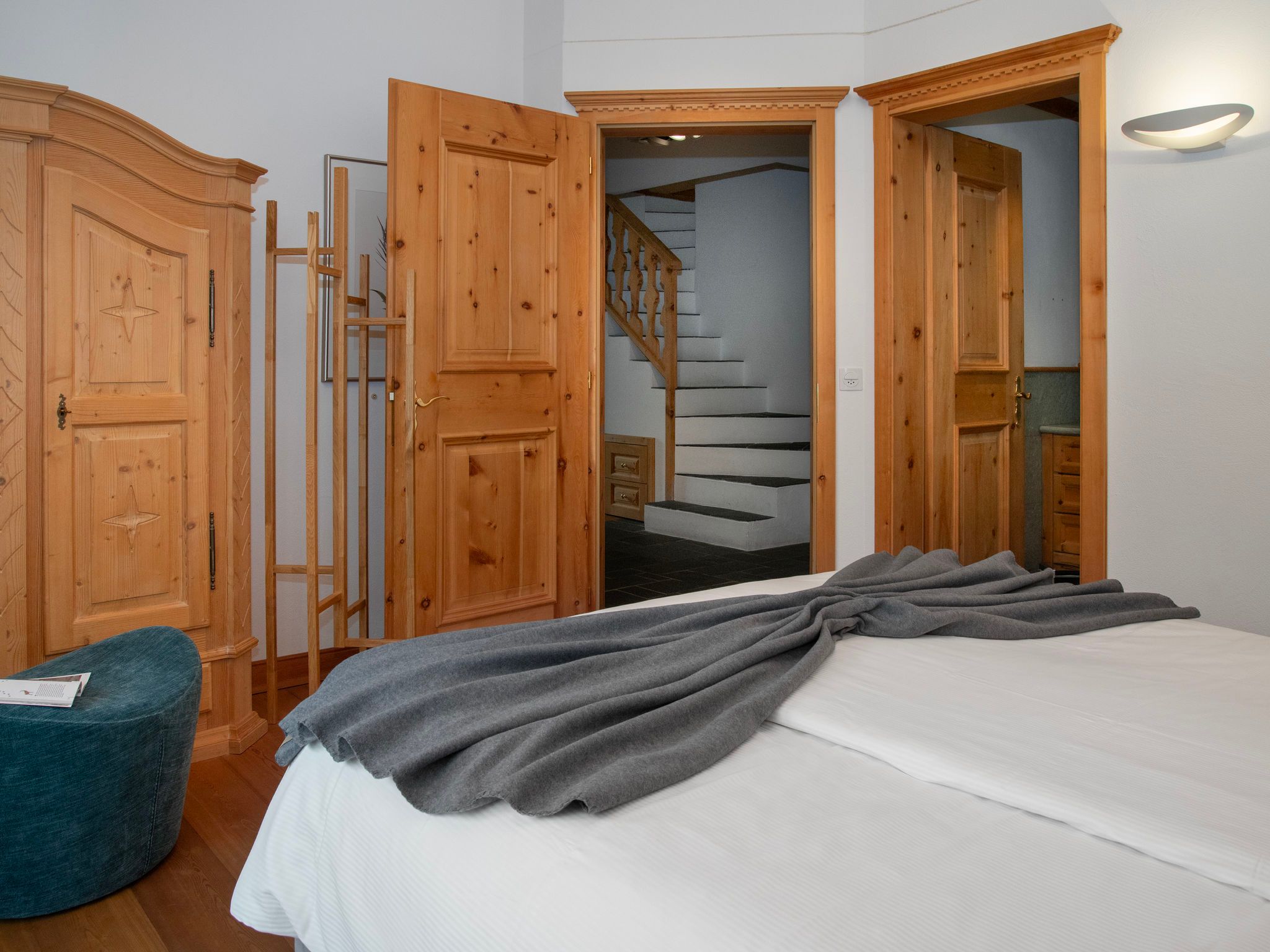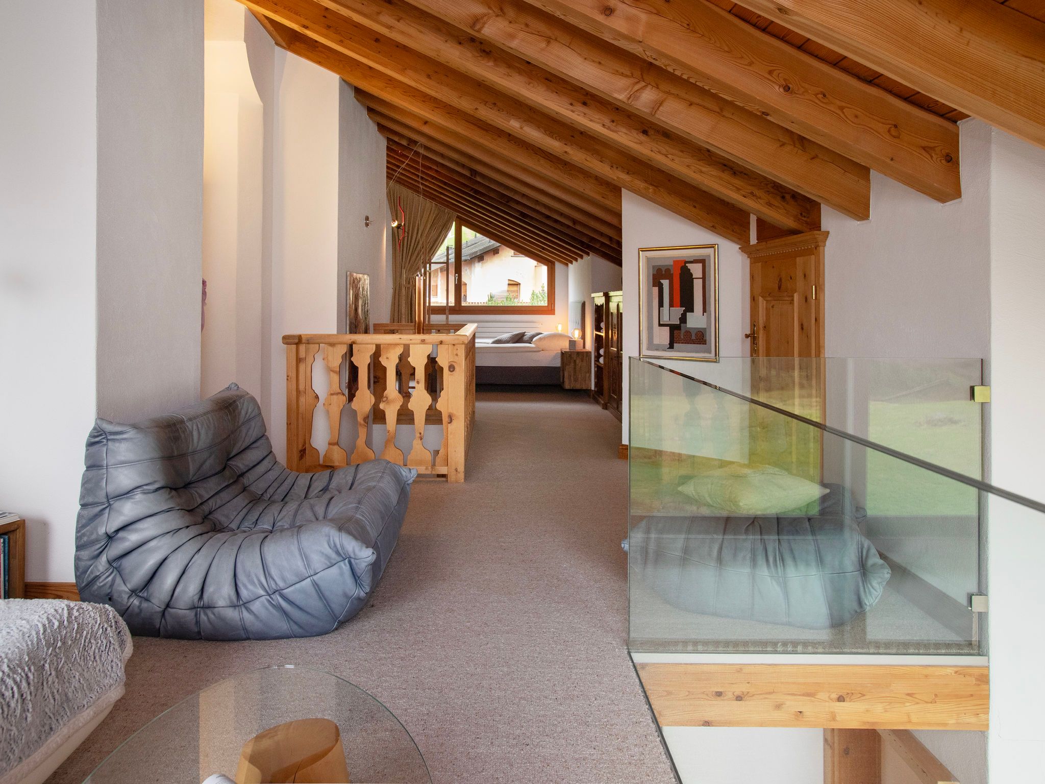 Chesa Vadret 12, 3-Zimmer-Wohnung 110 m2 auf 2 Stockwerken, im Dachgeschoss. Geräumig und hell, teilweise abgeschrägt, komfortabel und modern eingerichtet: offenes Wohn-/Esszimmer. Ausgang Richtung Westen. 1 Zimmer mit 1 franz. Bett (1 x 160 cm, Länge 200 cm), Bad/Bidet/WC. Küche (Backofen, Geschirrspüler, 4 Glaskeramikplatten, Toaster, Wasserkocher, elektrische Kaffeemaschine, Kapseln für die Kaffeemaschine (Nespresso) extra, Fondue Set (Käse)). Dusche/WC. Heizung. Obergeschoss: offene grosse Galerie mit 1 franz. Bett (2 x 80 cm, Länge 200 cm). Offenes Durchgangszimmer mit TV. Grosser Balkon 10 m2. Balkonmöbel. Herrliche Panoramasicht auf die Berge und das Tal. Zur Verfügung: Bügeleisen, Haartrockner. Internet (WLAN, gratis). Garage Nr. Vadret 12, Höhe 225 cm, Breite 250 cm. Bitte beachten: nicht geeignet für Kinder unter 6 Jahren. Nichtraucher-Unterkunft. Anstelle eines abgeschlossenen Schlafzimmers befinden sich manche Schlafplätze in einem offenen Bereich (Galerie, Nische etc.).
