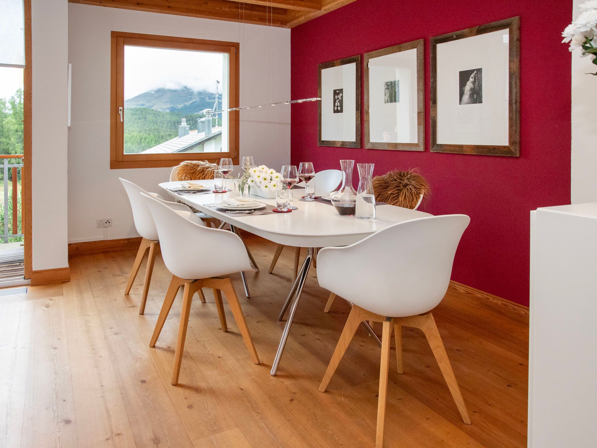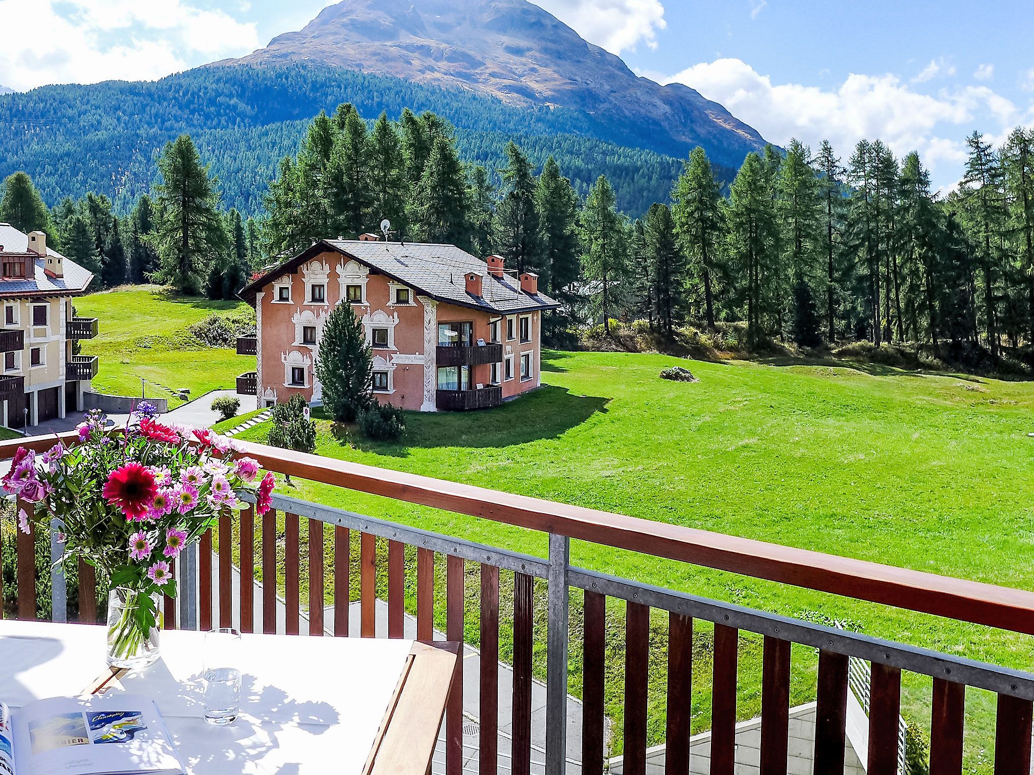 Pontresina 7 km von St. Moritz: Schönes, freistehendes, komfortables Mehrfamilienhaus Chesa Vadret, auf 3 Stockwerken, Baujahr 1998, umgeben von Wiesen. Am Ortsrand, 2 km vom Zentrum von Pontresina, im Bezirk Muragl, ruhige, sonnige Lage am Hang, 6 km vom See, in einer Sackgasse, im Grünen. Im Hause: Zentralheizung, Waschmaschine, Wäschetrockner (zur Mitbenutzung, extra). Gemeinschaftsgarage. Einkaufsgeschäft 1 km, Supermarkt 1.8 km, Restaurant 1 km, Bäckerei 1 km, Café 1.8 km, Fahrradverleih 2.1 km, Bushaltestelle Pontresina, Godin 500 m, Bahnstation 2.5 km, Hallenbad 2.1 km, See St. Moritzer See 6 km. Golfplatz (18 Loch) 4.3 km, Surfschule 15 km, Tennis 1.1 km, Tennishalle 7.4 km, Minigolf 7.2 km, Reitstall 2.7 km, Wanderwege ab Haus 20 m, Radweg 500 m, Luftseilbahn 4.4 km, Skilift 2 km, Skiverleih 2.1 km, Skischule 1.8 km, Kinderskischule 1.8 km, Schlittelbahn 1.3 km, Langlaufloipe 500 m, Eisfeld 1 km, Kinderspielplatz 1 km. Nahe gelegene Sehenswürdigkeiten: Museum Alpin 1.9 km, Kirche St. Maria 2.6 km, Alp-Schaukäserei Morteratsch (Sommer) 8 km, Segantini Museum in St. Moritz 7.3 km, Bernina Express UNESCO Welterbe. Bekannte Skigebiete sind gut erreichbar: Corviglia Piz Nair 4.4 km, Corvatsch - Furtschellas 13 km, Diavolezza - Lagalb 14 km. Bekannte Seen in der Umgebung sind gut erreichbar: St. Moritzer See 6 km, Silvaplaner See 11.6 km, Silser See 15.5 km. Wandergebiete: Stazerwald & Stazersee, Muottas Muragl, Val Roseg & Val Morteratsch. Bitte beachten: Be- und Entladen am Ferienhaus möglich.