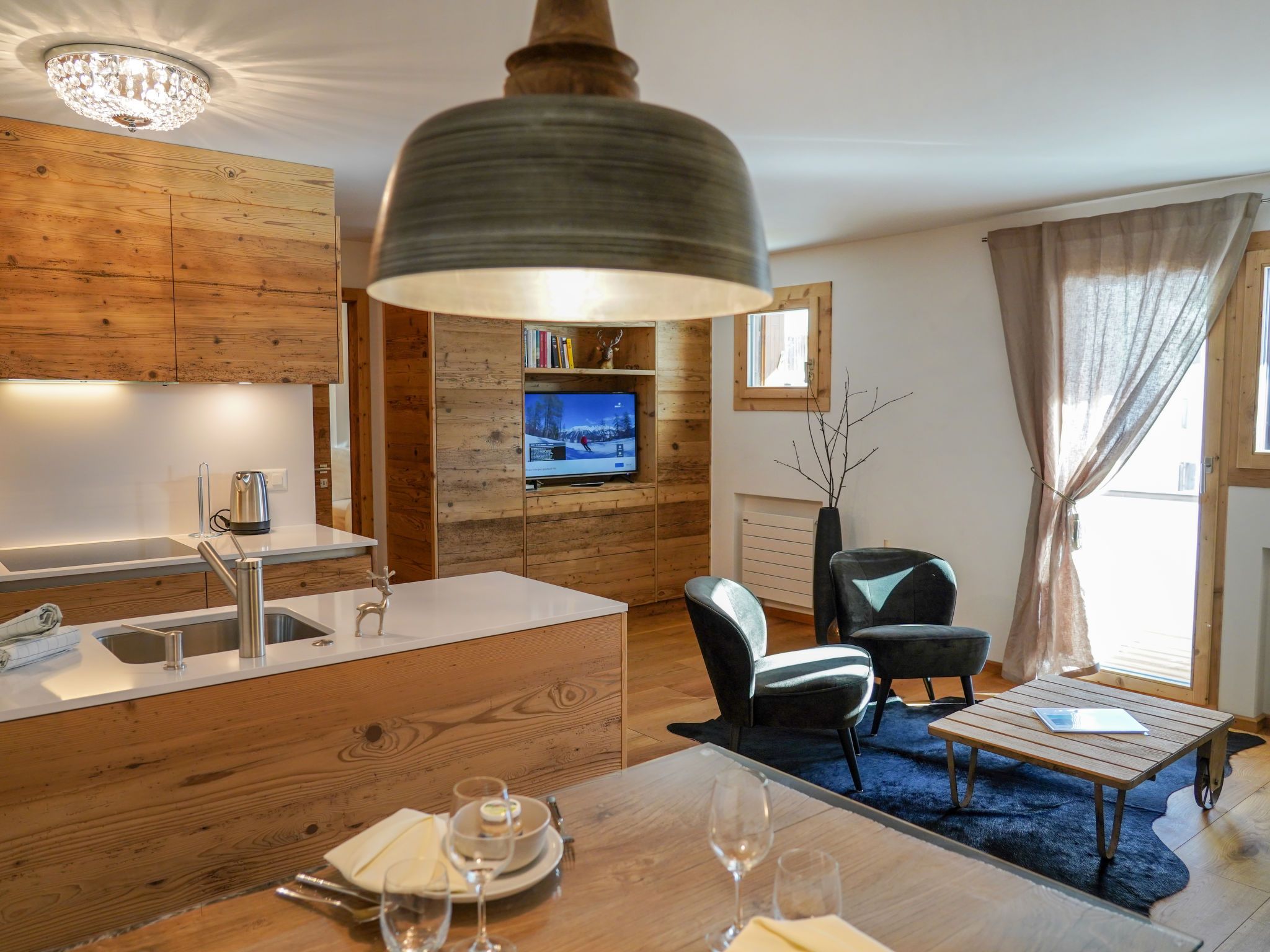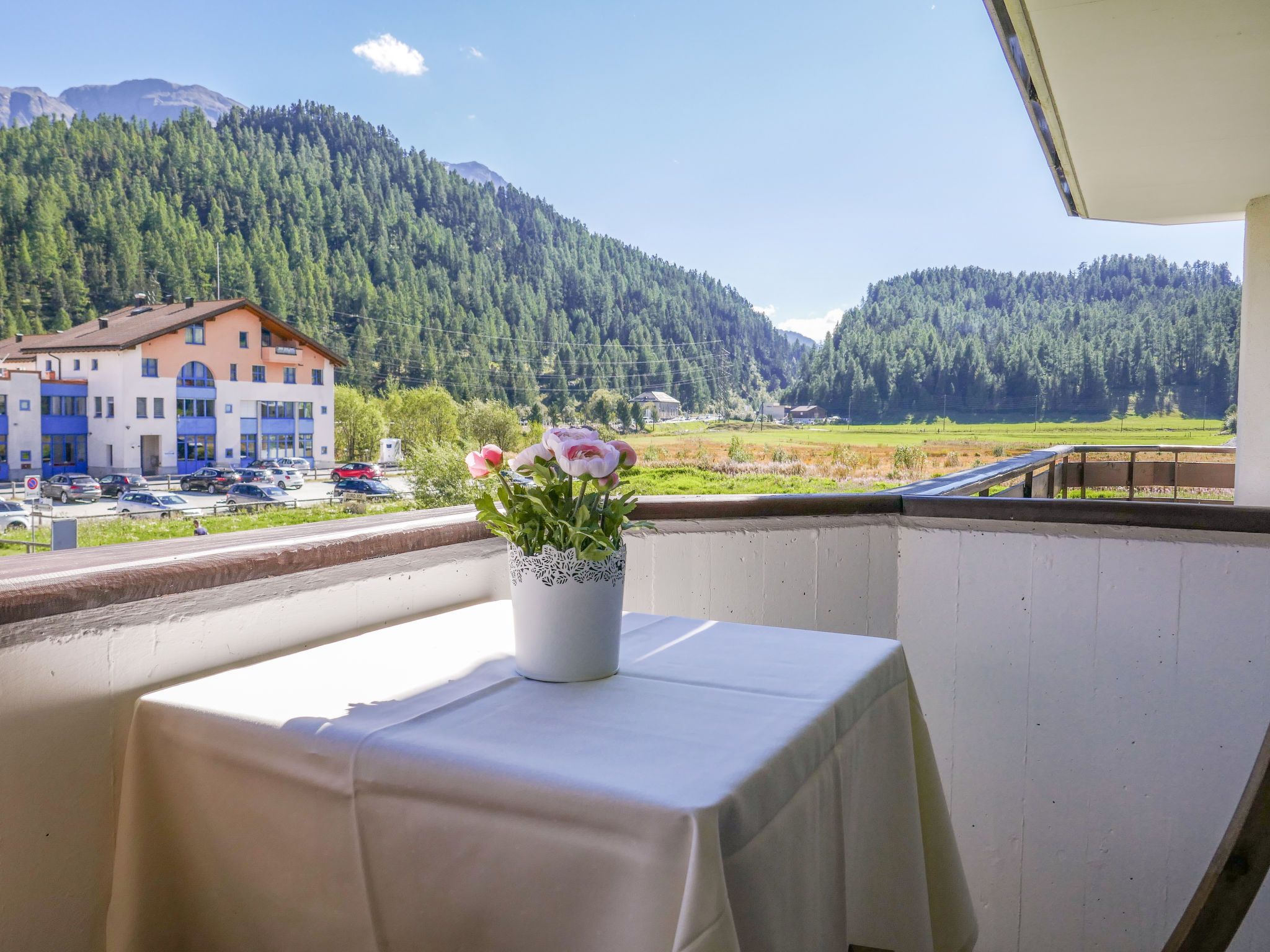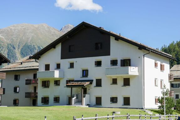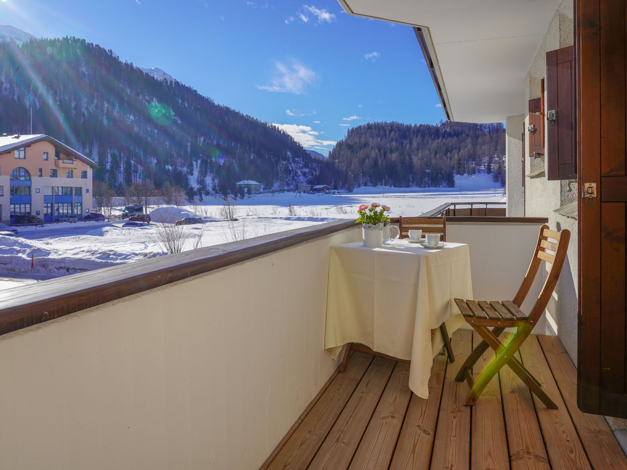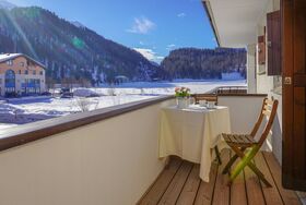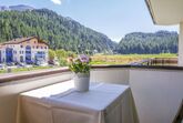 Chesa Palüdin 5 - Celerina, 2-Zimmer-Wohnung 50 m2 im 1. Stock. Hell, vollständig renoviert im Jahre 2019, modern und geschmackvoll eingerichtet: offenes Wohn-/Esszimmer mit Esstisch und TV (Flachbildschirm). Ausgang zum Balkon. 1 Doppelzimmer mit 1 franz. Bett (1 x 160 cm, Länge 200 cm). Kleine, offene Küche (Backofen, Geschirrspüler, 4 Induktionskochplatten, Toaster, Wasserkocher, Mikrowelle, elektrische Kaffeemaschine, Kapseln für die Kaffeemaschine (Nespresso) extra, Dampfgarer, Racletteofen). Dusche/WC. Heizung. Holzdielenboden. Balkon 9 m2. Balkonmöbel. Sehr schöne Sicht auf die Berge und die Landschaft. Zur Verfügung: Bügeleisen, Haartrockner. Internet (Wireless LAN, gratis). Garage Nr. 5 (1 Auto), Höhe 195 cm, Breite 210 cm. Bitte beachten: Kühlschrank ohne Gefrierfach, Nichtraucher-Unterkunft, Nichtraucher-Haus. Maximal 1 Haustier/Hund erlaubt. Kein Fahrstuhl.