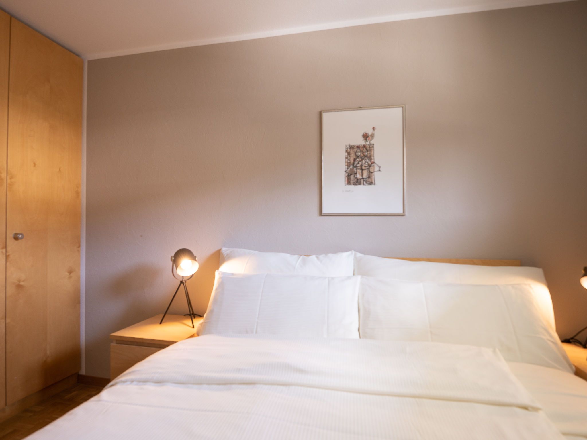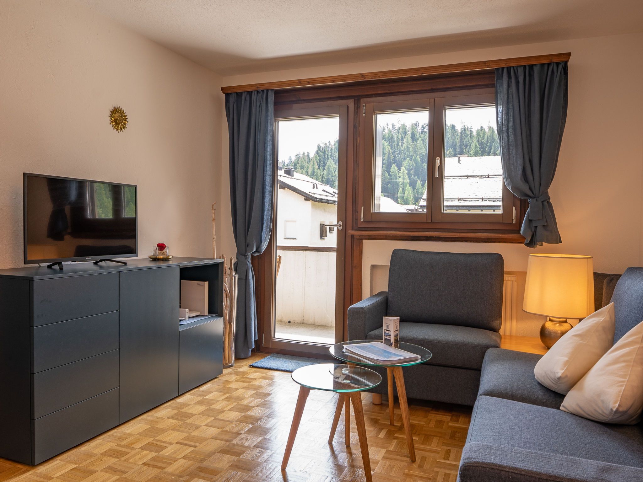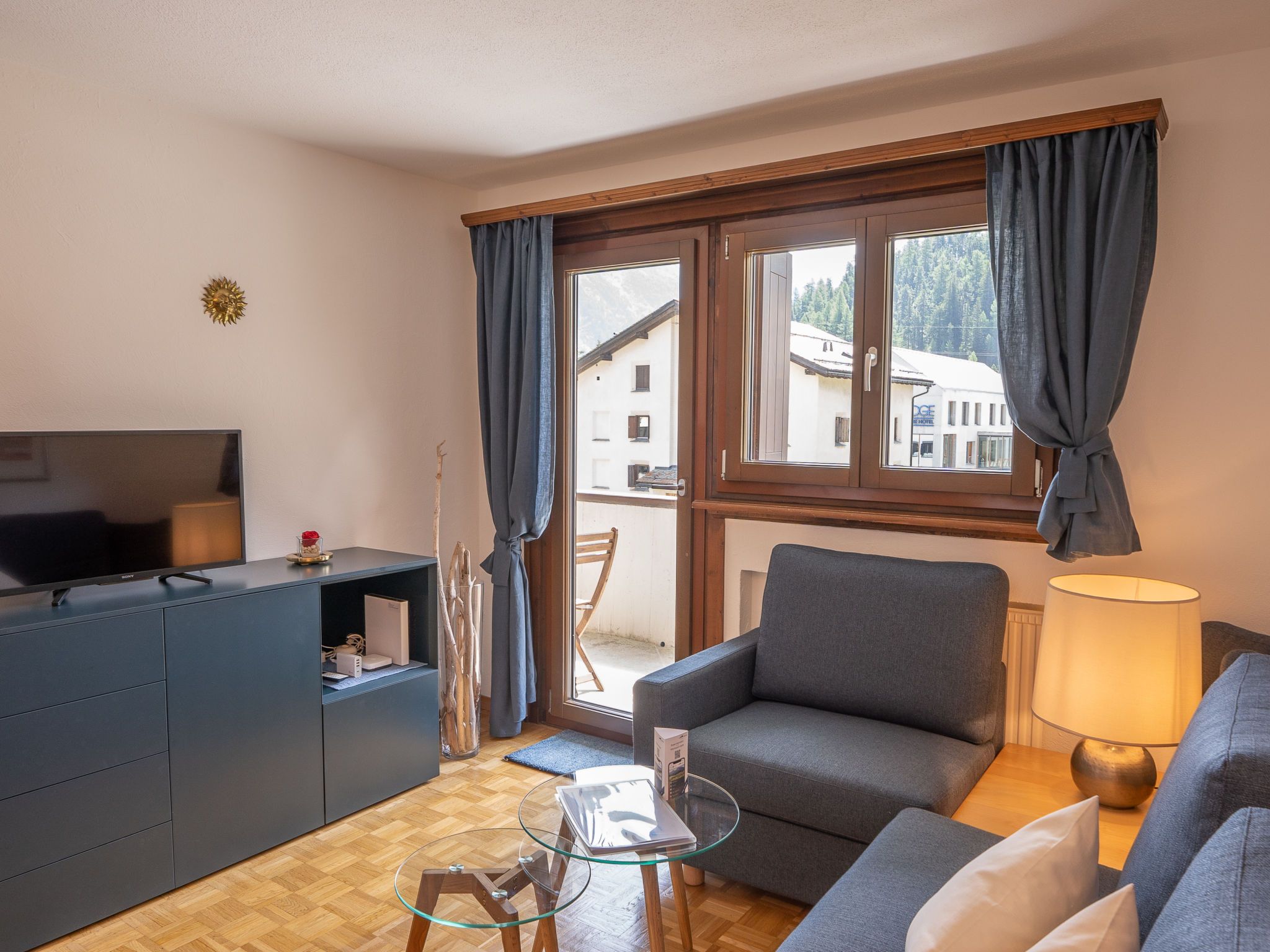 Chesa Palüdin 8 - Celerina, 3-Zimmer-Wohnung 50 m2 im 2. Stock. Schön und gemütlich eingerichtet: offenes Wohn-/Esszimmer mit TV (Flachbildschirm). Ausgang zum Balkon. 1 Doppelzimmer mit 1 franz. Bett (1 x 160 cm, Länge 195 cm). 1 Zimmer mit 1 Bett (90 cm, Länge 195 cm). Kleine Küche (4 Kochplatten, Backofen, Geschirrspüler, Toaster, Wasserkocher, elektrische Kaffeemaschine, Kapseln für die Kaffeemaschine (Nespresso) extra, Racletteofen, Fondue Set (Chinoise, Käse)). Bad/Bidet/WC. Heizung. Parkettboden. Kleiner Balkon 9 m2. Balkonmöbel. Sehr schöne Sicht auf die Berge und die Landschaft. Zur Verfügung: Bügeleisen, Haartrockner. Internet (Wireless LAN, gratis). Garage Nr. 8 (1 Auto), Höhe 195 cm, Breite 230 cm. E-Ladestation. Bitte beachten: Nichtraucher-Unterkunft, Nichtraucher-Haus. Maximal 1 Haustier/Hund erlaubt. Kein Fahrstuhl.