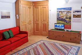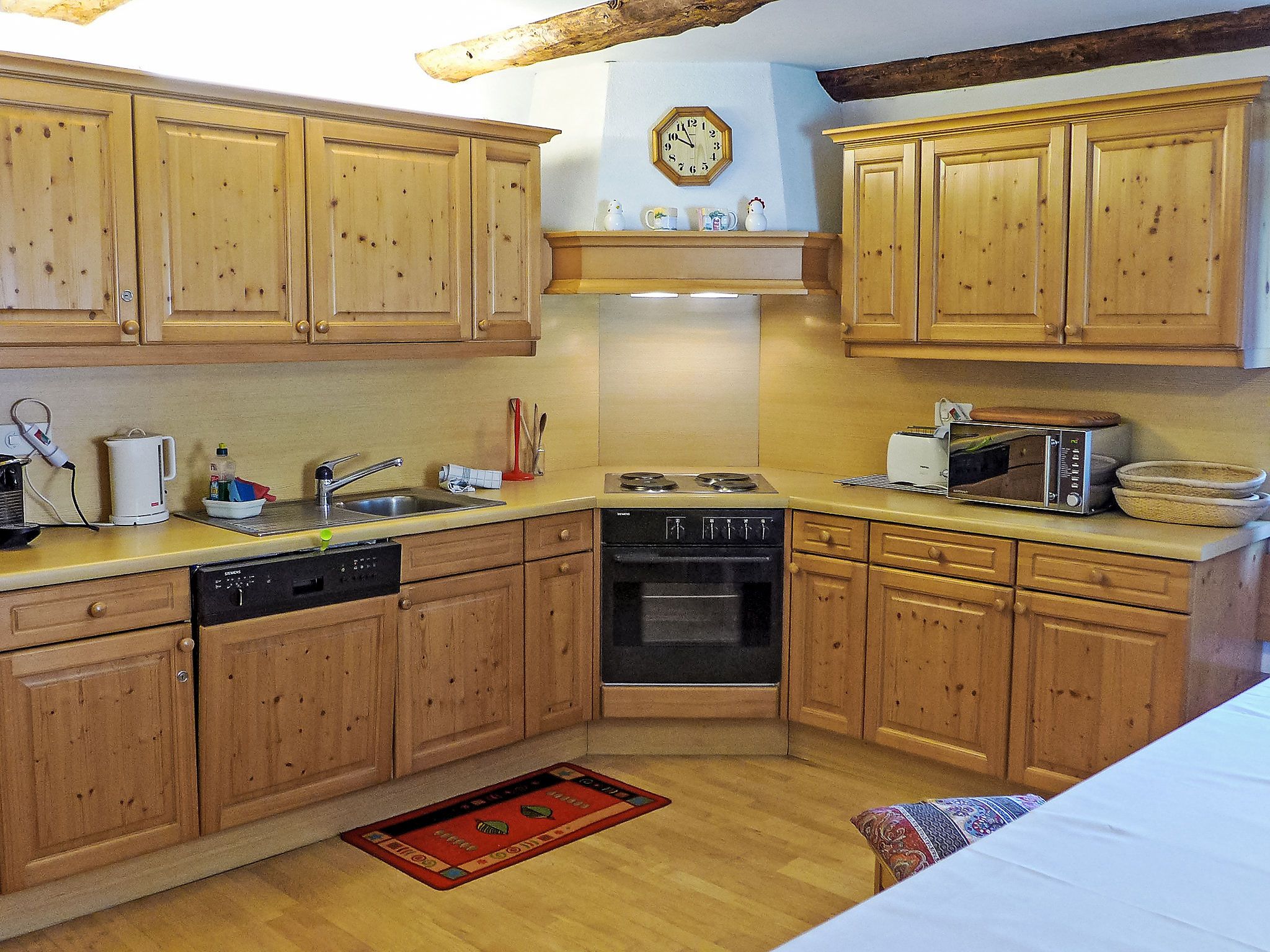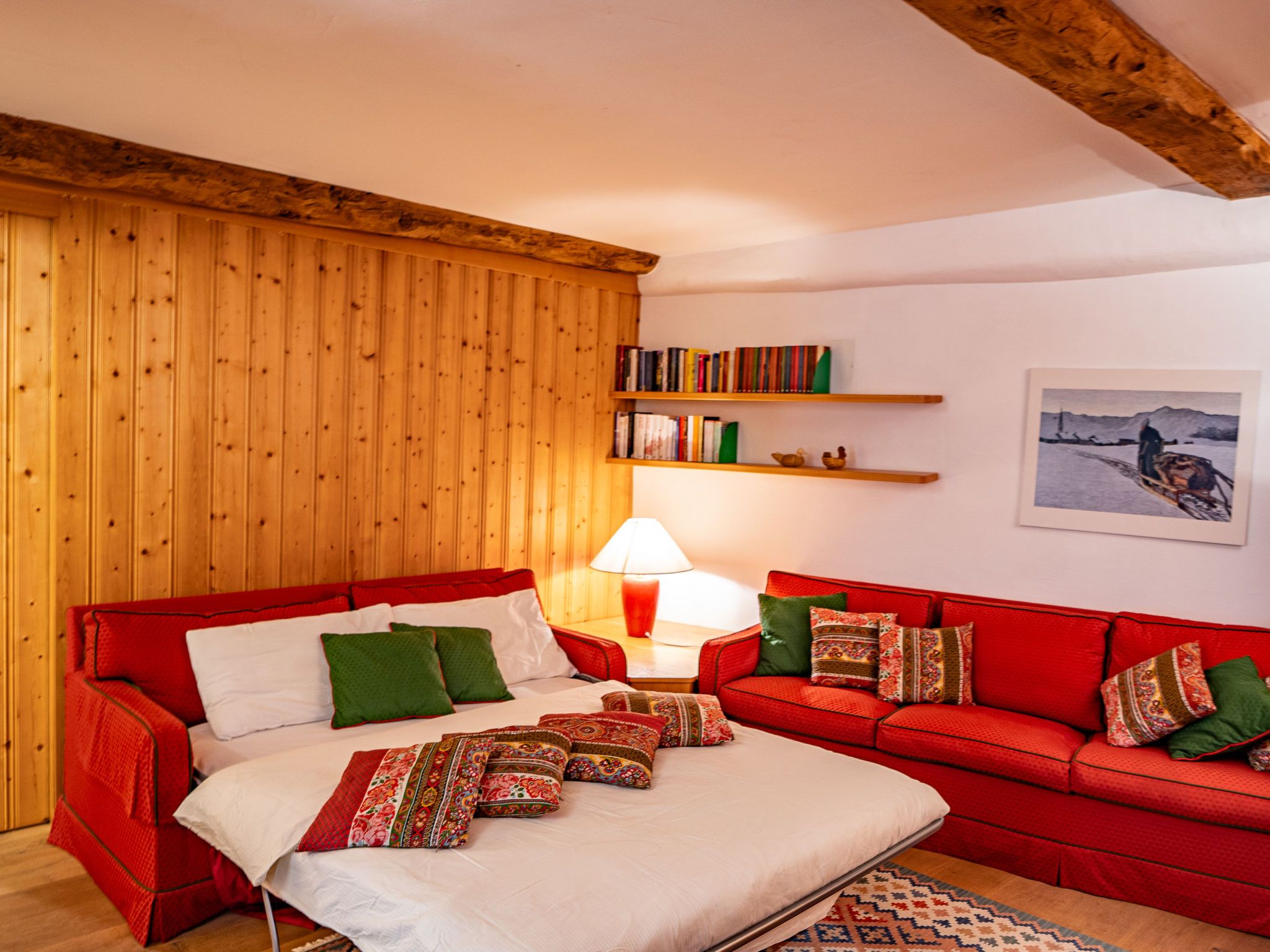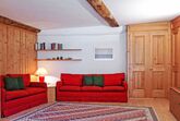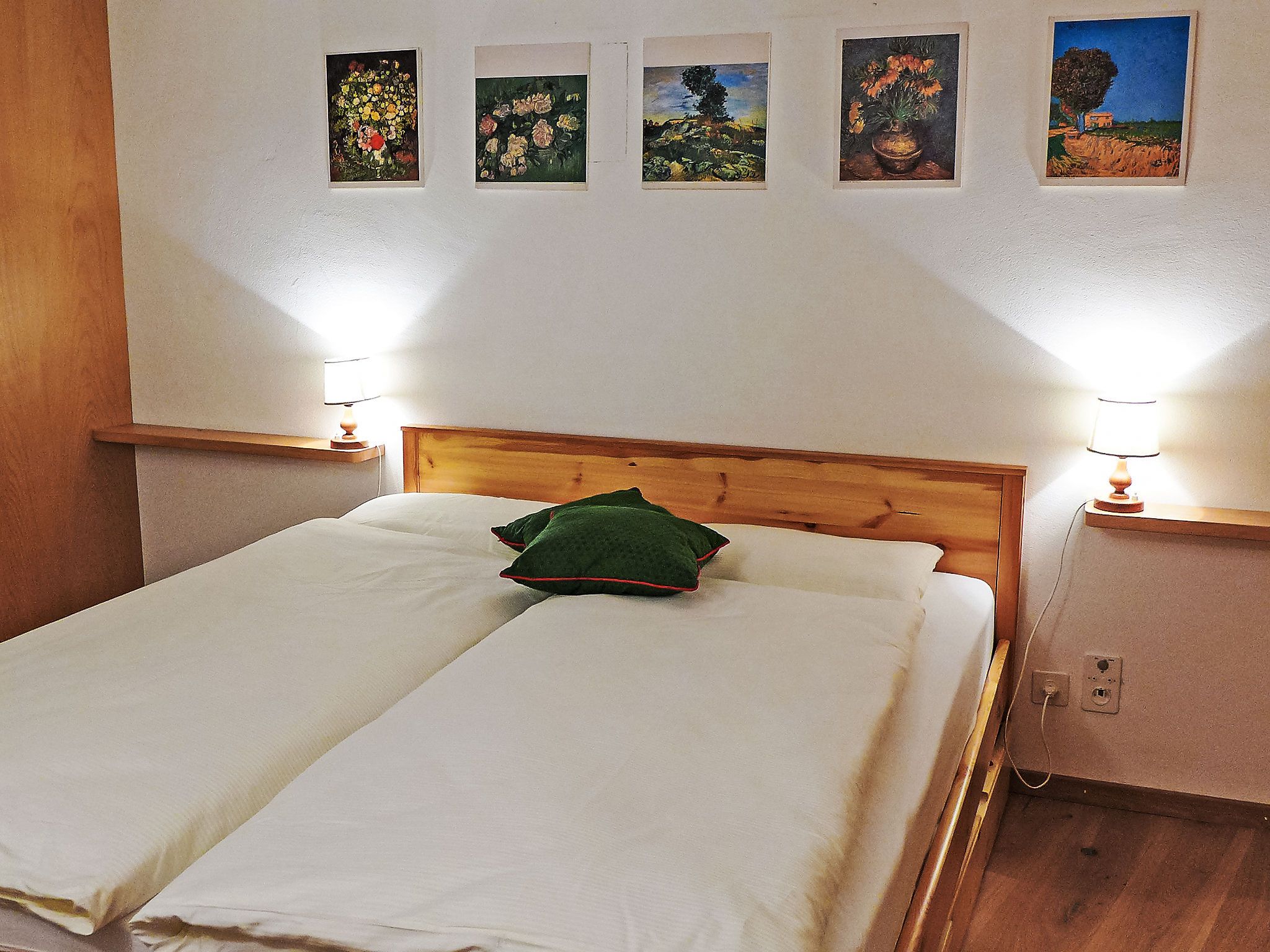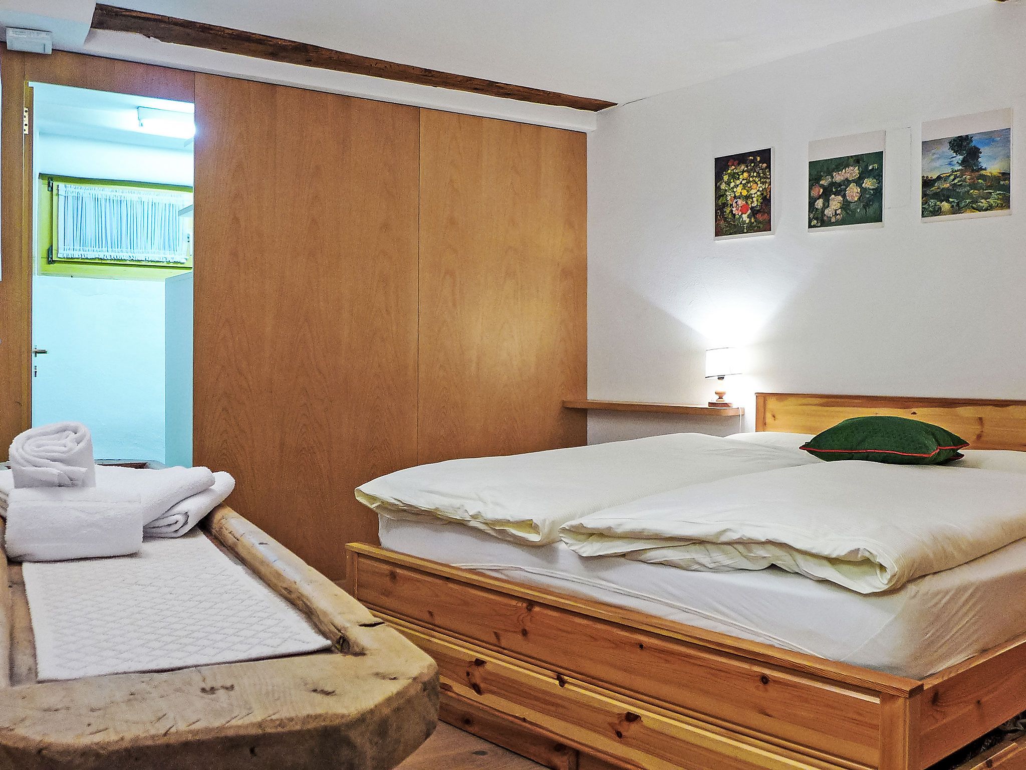 Chesa Frizzoni, 2-Zimmer-Wohnung 70 m2, im Erdgeschoss. Einfach und zweckmässig eingerichtet: Wohn-/Schlafzimmer, Fenster zum Hof mit 2 Diwanbetten und TV (Flachbildschirm). 1 Zimmer mit begehbarem Kleiderschrank, ohne Fenster mit 1 Doppelbett (1 x 170 cm, Länge 200 cm). Grosse Küche (4 Kochplatten, Backofen, Geschirrspüler, Toaster, Wasserkocher, Mikrowelle, elektrische Kaffeemaschine, Kapseln für die Kaffeemaschine (Nespresso) extra) mit Esstisch. Bad/Bidet/WC. Heizung. Keine Sicht. Zur Verfügung: Haartrockner. Internet (Wireless LAN, extra). Garage Nr. 83 (500 m), Höhe 215 cm, Breite 225 cm. Bitte beachten: geeignet für Familien Wohnung auf Hofseite. Nichtraucher-Unterkunft. Flexibilität bei der Bettenaufteilung: Es stehen mehr Schlafmöglichkeiten zur Verfügung als die maximal zugelassene Personenzahl, diese darf dennoch nicht überschritten werden.