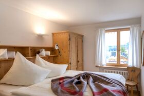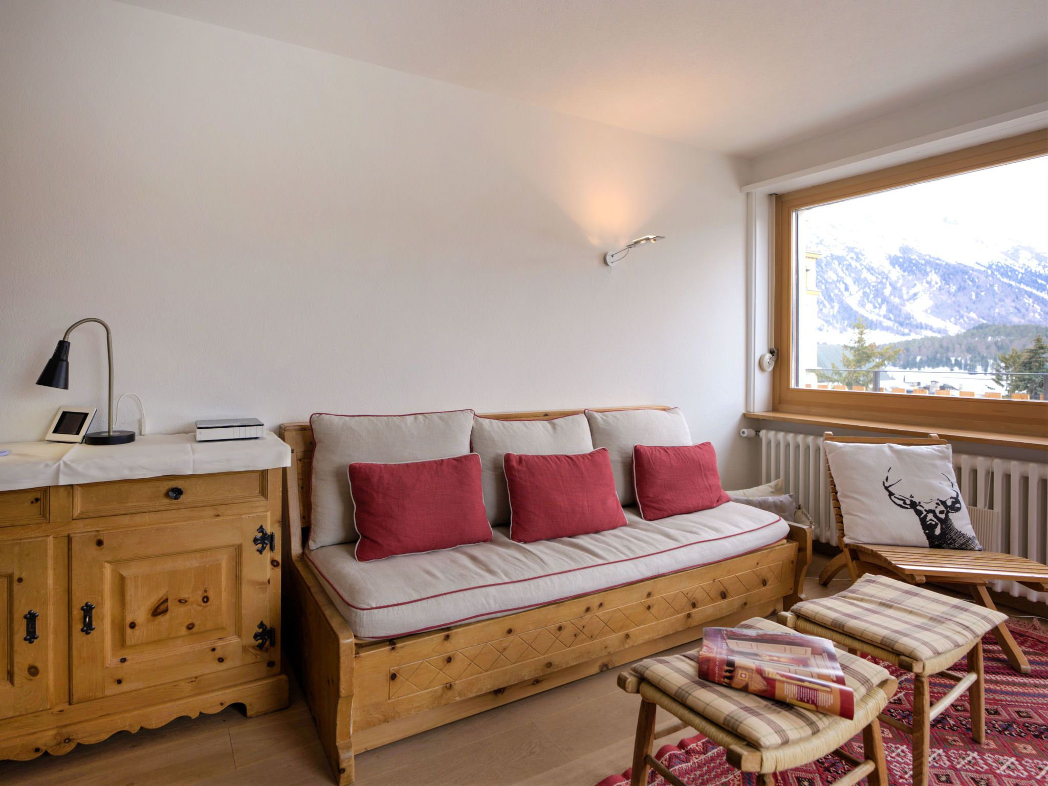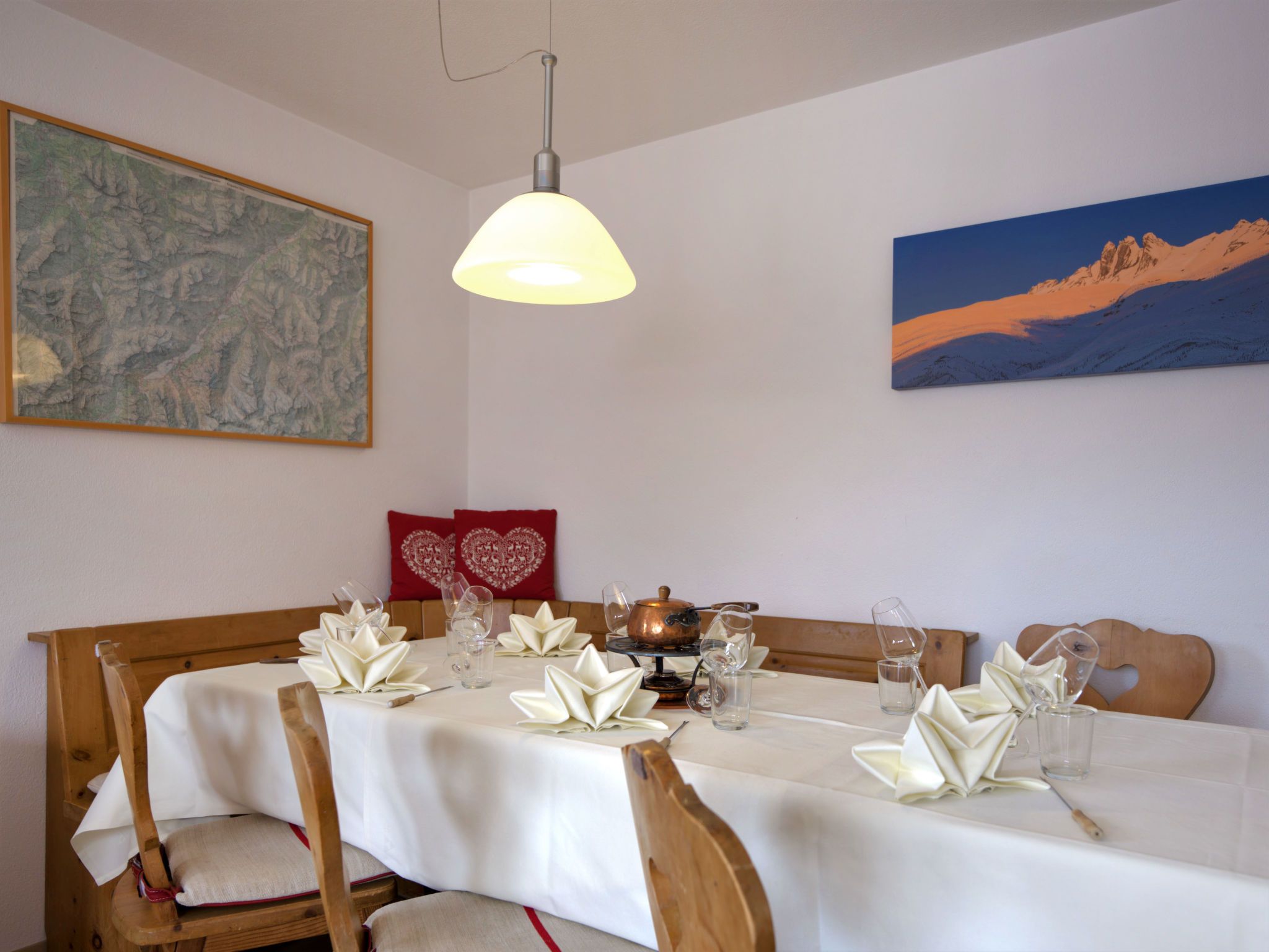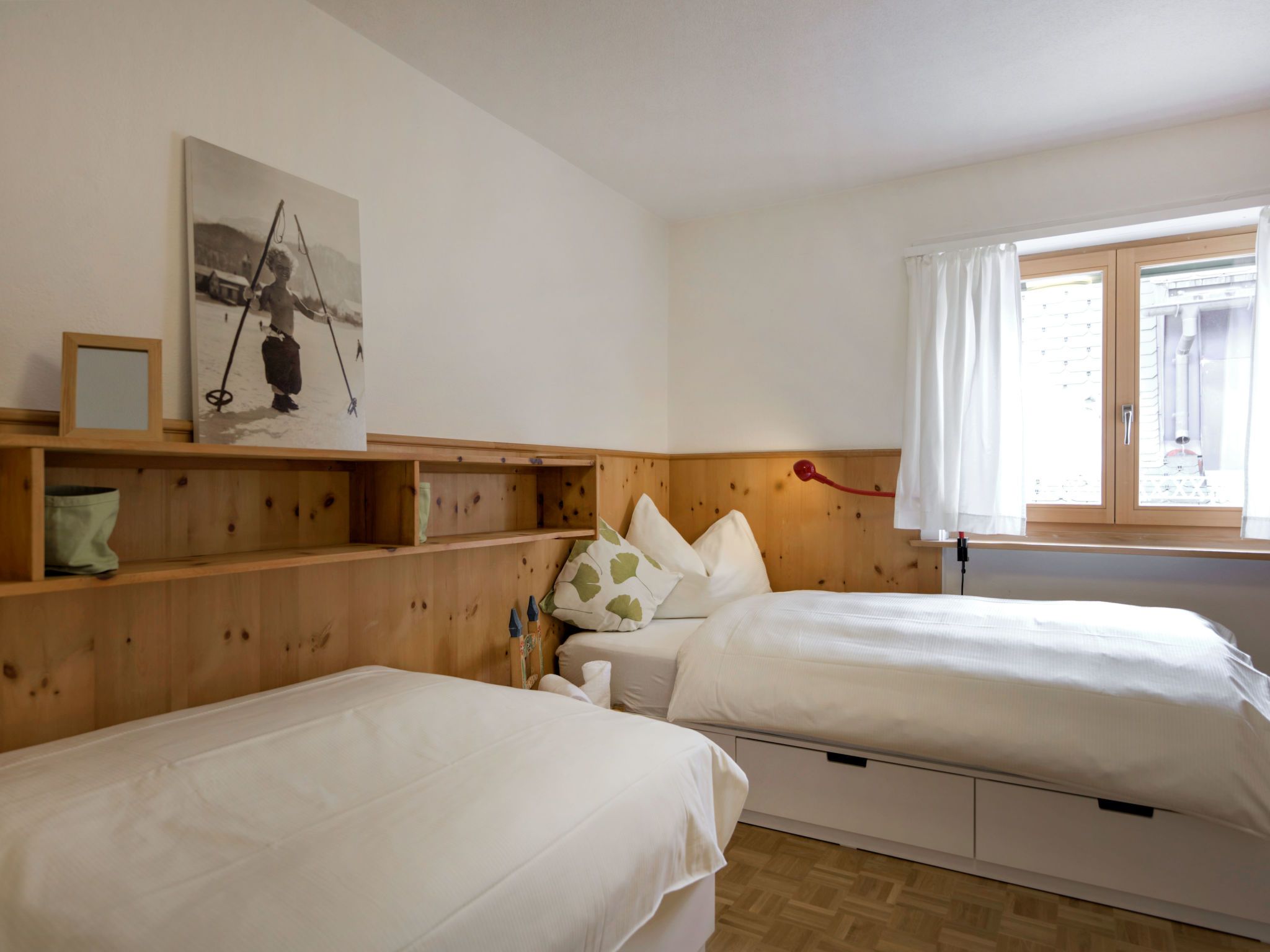 Chesa Villasimius, 4-Zimmer-Wohnung 85 m2 im 3. Stock. Hell, zweckmässig und mit viel Holz eingerichtet: offenes Wohn-/Esszimmer mit TV (Flachbildschirm). Ausgang zum Balkon. 1 Zimmer mit 1 Doppelbett (2 x 80 cm, Länge 190 cm), Waschbecken und sep. WC. 1 Zimmer mit 2 Betten (90 cm, Länge 200 cm). 1 Zimmer mit 3 Betten (85 cm, Länge 190 cm). Kleine Küche (Backofen, Geschirrspüler, 4 Glaskeramikplatten, Toaster, Wasserkocher, elektrische Kaffeemaschine, Kapseln für die Kaffeemaschine (Nespresso) extra, Fondue Set (Käse)). Bad/Bidet/WC. Heizung. Sehr schöne Panoramasicht auf die Berge. Zur Verfügung: Haartrockner. Internet (Wireless LAN, gratis). Parkplatz (1 Auto), Garage Nr. 4 (1 Auto), Höhe 195 cm, Breite 230 cm. Bitte beachten: geeignet für Familien. Nichtraucher-Unterkunft. Kein Fahrstuhl.