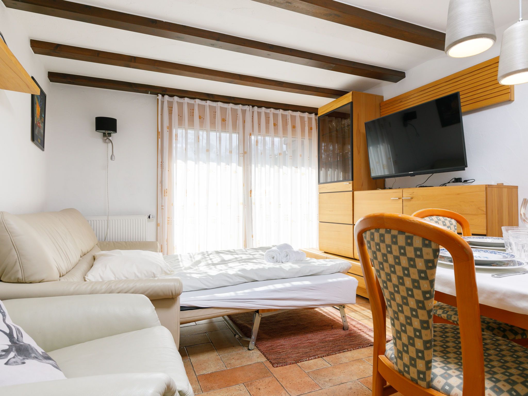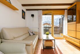 Apt.31, 2-Zimmer-Wohnung 48 m2. Komfortabel und gemütlich eingerichtet: Wohn-/Esszimmer mit 1 Diwanbett und Kabel-TV (Flachbildschirm). Ausgang zum Balkon. 1 Zimmer mit 1 Doppelbett. Kleine Küche (4 Kochplatten, Backofen, Geschirrspüler). Bad/WC. E-Heizung. Balkon. Balkonmöbel. Sicht auf die Berge und die Ortschaft. Zur Verfügung: Waschmaschine. Garage Nr. 31, Höhe 200 cm, Breite 288 cm. Bitte beachten: Nichtraucher-Unterkunft. Balkon Richtung Hauptstrasse.