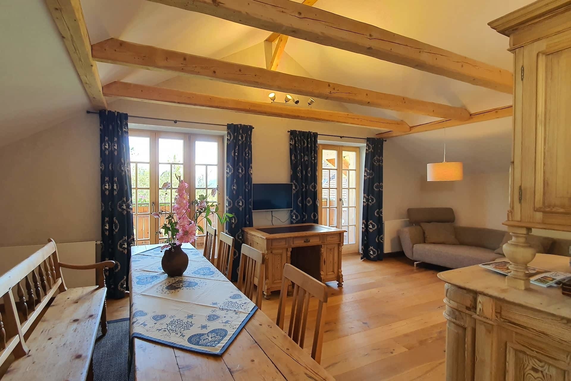 - Zwei Wohnzimmer mit jeweils zusätzlich einem Esstisch, zwei SmartTV, Couchgarnitur, Schlafcouch, Sessel