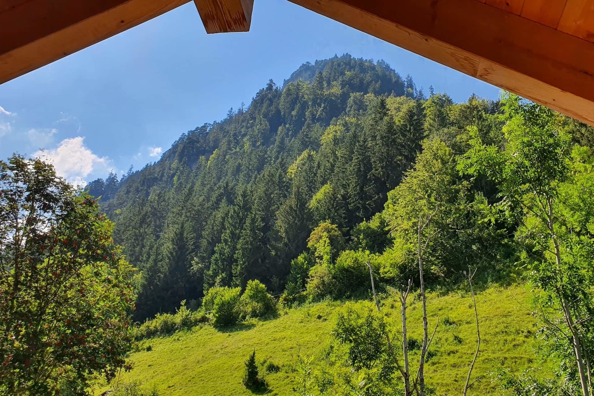 Genießen Sie traumhafte Ferien in unserem Ferienhaus Kienberghäusle. An einem sonnigen und ruhigen Platz in Hanglage gelegen, bietet das urige und ökologische Chalet eine wunderschöne Aussicht auf die umliegenden Berge, inkl. Zugspitzblick, und die Burgruine Falkenstein.