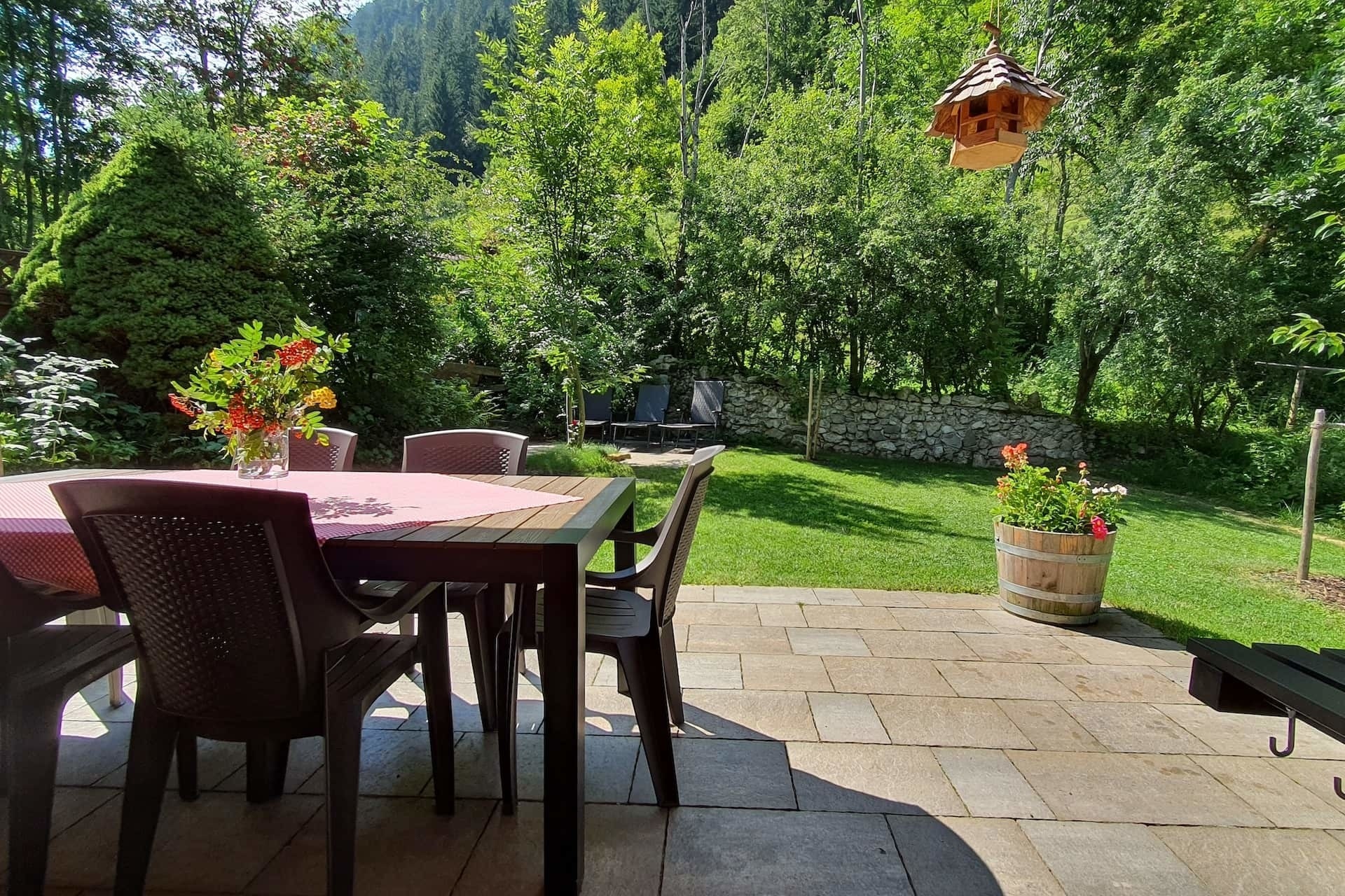 Am schönsten ist es doch, die Stunden nach einer ausgedehnten Wanderung, einer Bergtour, einer Radtour, einem Tag am Badesee oder einem Skitag gemeinsam zu verbringen. Dann stellen Sie Ihre Autos einfach direkt vor die Haustüre und gehen in den großen Garten mit seinen zwei Sonnenterrassen oder auf einen der beiden Balkone im Obergeschoss. Eine Möblierung des Außenbereiches und ein Gartengrill sind vorhanden. Auf der Liegewiese können Sie ein ausgiebiges Sonnenbad genießen und die Kinder spielen lassen. Hier haben Sie einen wunderbaren und unverbauten Blick auf den Hausberg, unseren Kienberg.