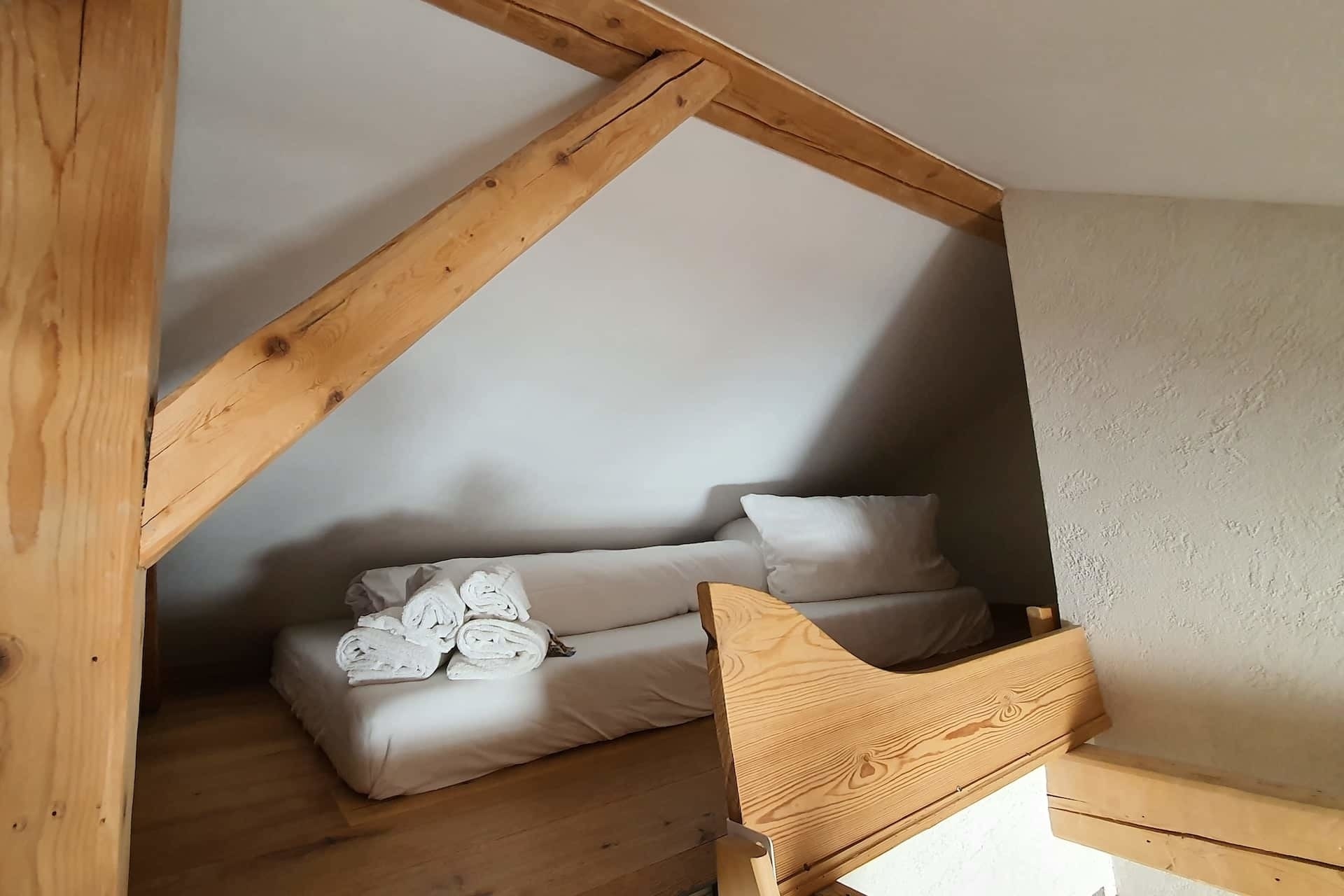 Für die Kids ist, neben einer Auswahl an Spielzeug, Spielen, Bücher und Schlitten, jedoch unsere Empore das Highlight. Sie erklimmen die weiteren zwei Schlafplätze über eine Holzleiter und erobern ihre eigene Höhle nach einem ereignisreichen Tag.
