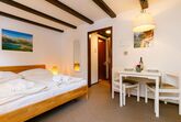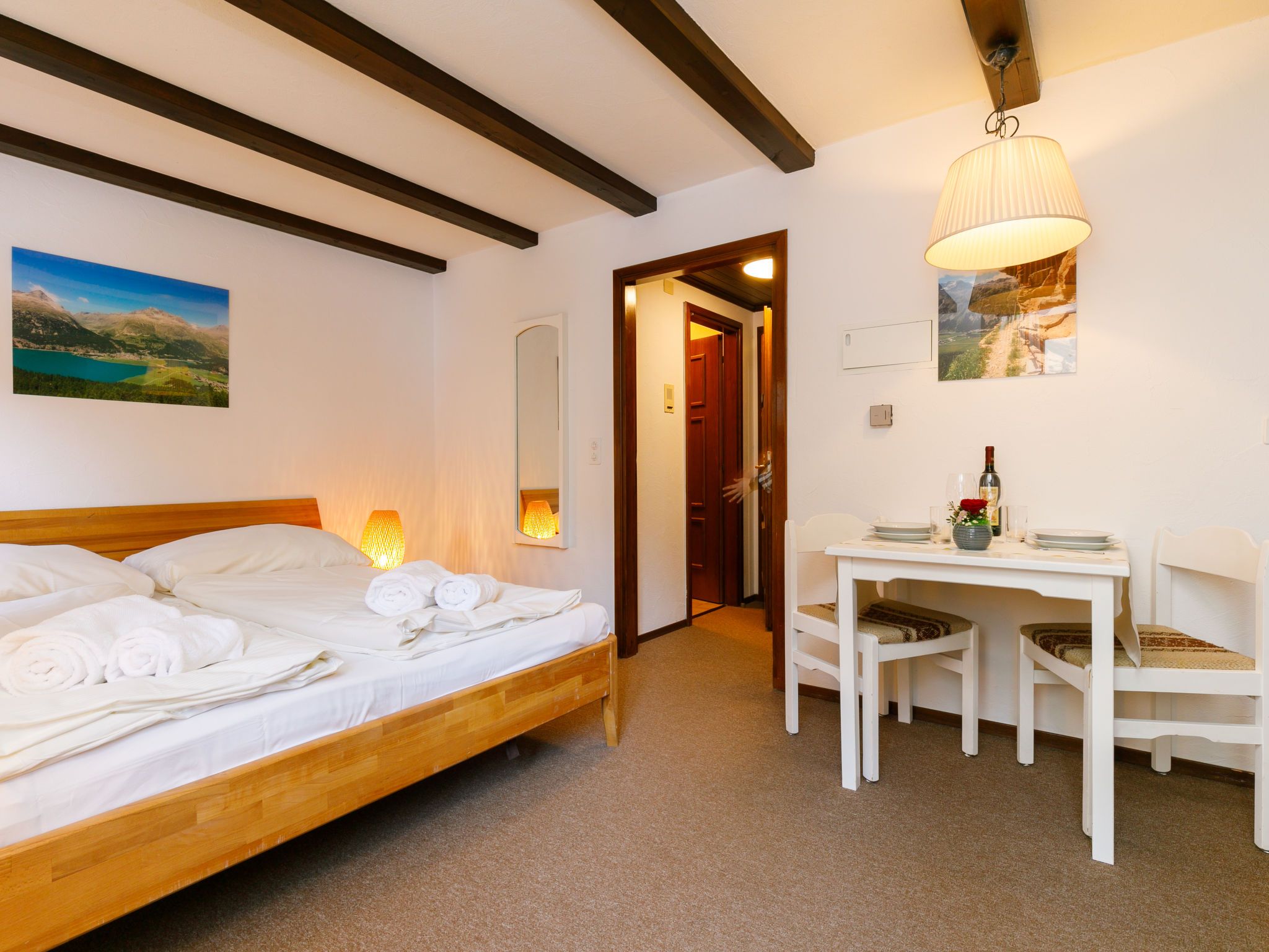 Residenza Chesa Margun 13-2, 1-Zimmer-Wohnung 29 m2 im 1. Stock, Nordlage. Zweckmässig eingerichtet: Wohn-/Schlafzimmer mit 1 Doppelbett (180 cm, Länge 200 cm), Esstisch, Digital-TV, Radio und E-Heizung. Kleine Küche (4 Kochplatten, Backofen, Geschirrspüler, elektrische Kaffeemaschine). Dusche/WC. E-Heizung. Zur Verfügung: Internet (WLAN). Garage. Bitte beachten: für Kleinkinder nicht geeignet Wohnung auf Hofseite. Nichtraucher-Unterkunft, Nichtraucher-Haus. Maximal 1 Haustier/Hund erlaubt. Wohnung befindet sich oberhalb der Garage.
