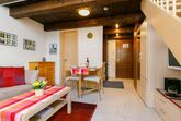 Residenza Chesa Margun 47-2, 1-Zimmer-Wohnung 26 m2 auf 2 Stockwerken, Nordlage. Gemütlich eingerichtet: Wohn-/Esszimmer mit Esstisch und Kabel-TV (Flachbildschirm), Radio. Küche (Backofen, Geschirrspüler, 4 Glaskeramikplatten, Mikrowelle, elektrische Kaffeemaschine). Dusche/WC. Obergeschoss: abgeschrägte, offene Galerie mit 1 Doppelbett und sep. WC. Seitliche Sicht auf die Berge und die Ortschaft. Zur Verfügung: Telefon. Internet (WLAN). Bitte beachten: Nichtraucher-Unterkunft, Nichtraucher-Haus, kein Parkplatz. Maximal 1 Haustier/Hund erlaubt. Anstelle eines abgeschlossenen Schlafzimmers befinden sich manche Schlafplätze in einem offenen Bereich (Galerie, Nische etc.).