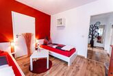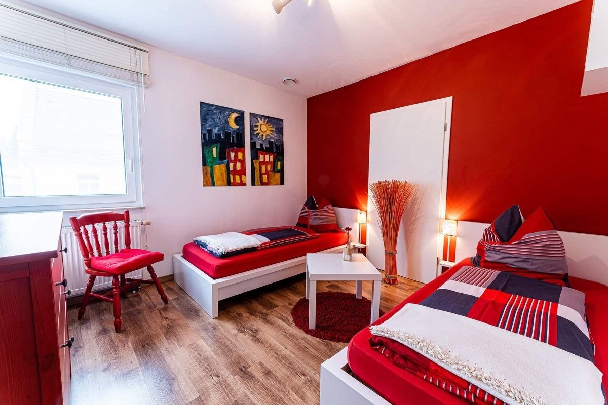 Die Ferienwohnung Schalkhaus“ verfügt in ihren 2 Schlafzimmern über ein Doppelbett (1,80 x 2,00m), zwei Einzelbetten (0,90 x 2,00m) sowie eine gemütliche Schlafcouch im Wohnzimmer (1,35 x 2,00m).
