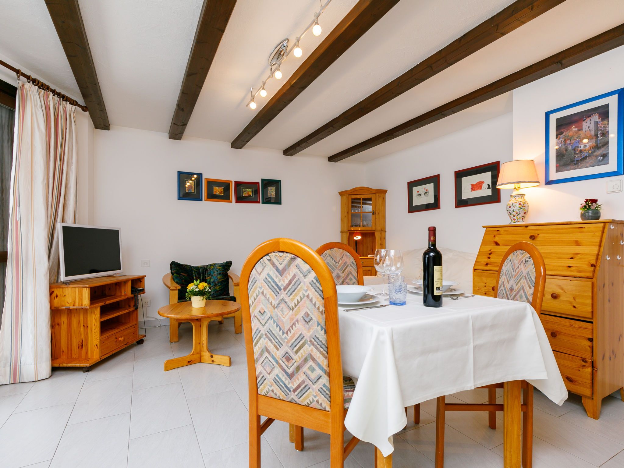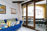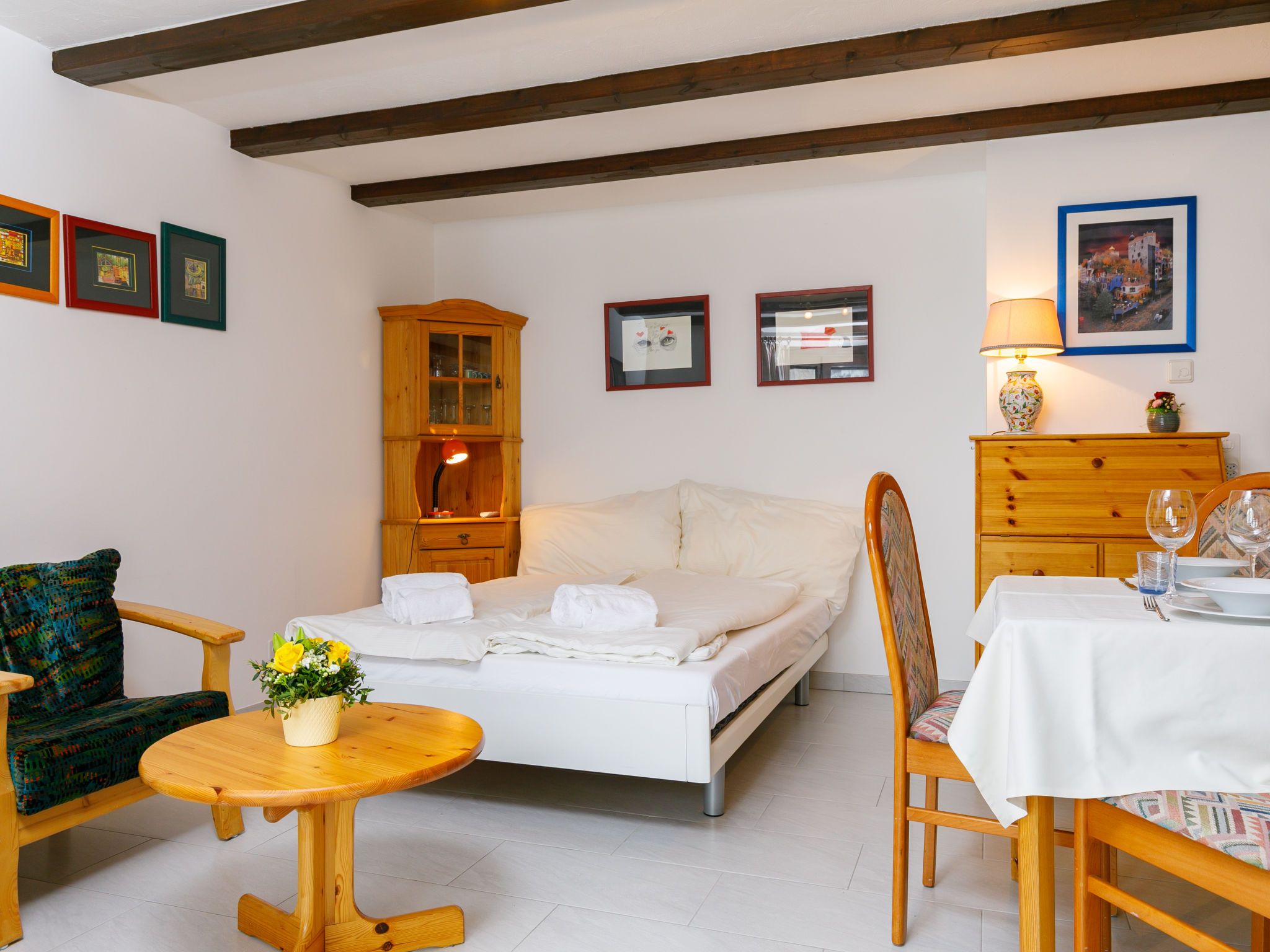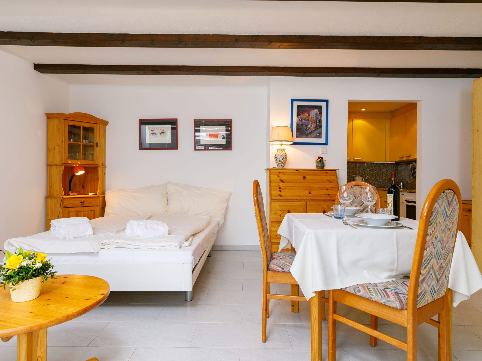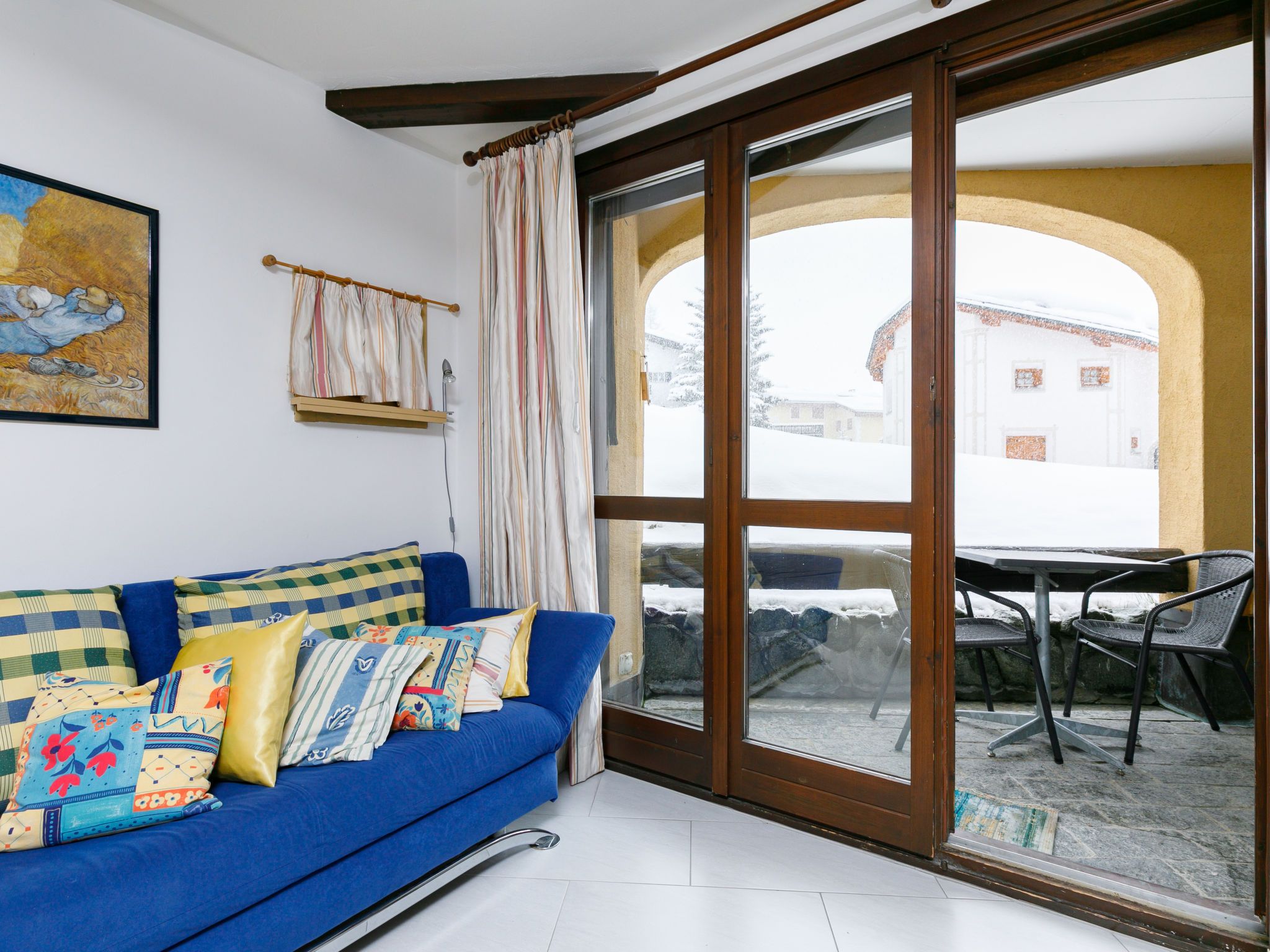 Residenza Chesa Margun 33-5, 1-Zimmer-Wohnung 30 m2. Teilweise renoviert, gemütlich eingerichtet: Wohn-/Schlafzimmer mit 1 franz. Bett (160 cm, Länge 190 cm), Esstisch, TV und Sat-TV (Flachbildschirm), Radio. Ausgang zur Terrasse. Kochnische (Backofen, Geschirrspüler). Bad/WC. Kleiner Balkon, Südlage. Terrassenmöbel. Schöne Sicht auf das Tal und die Ortschaft. Zur Verfügung: Telefon. Internet (WLAN). Garage. Bitte beachten: Nichtraucher-Unterkunft.