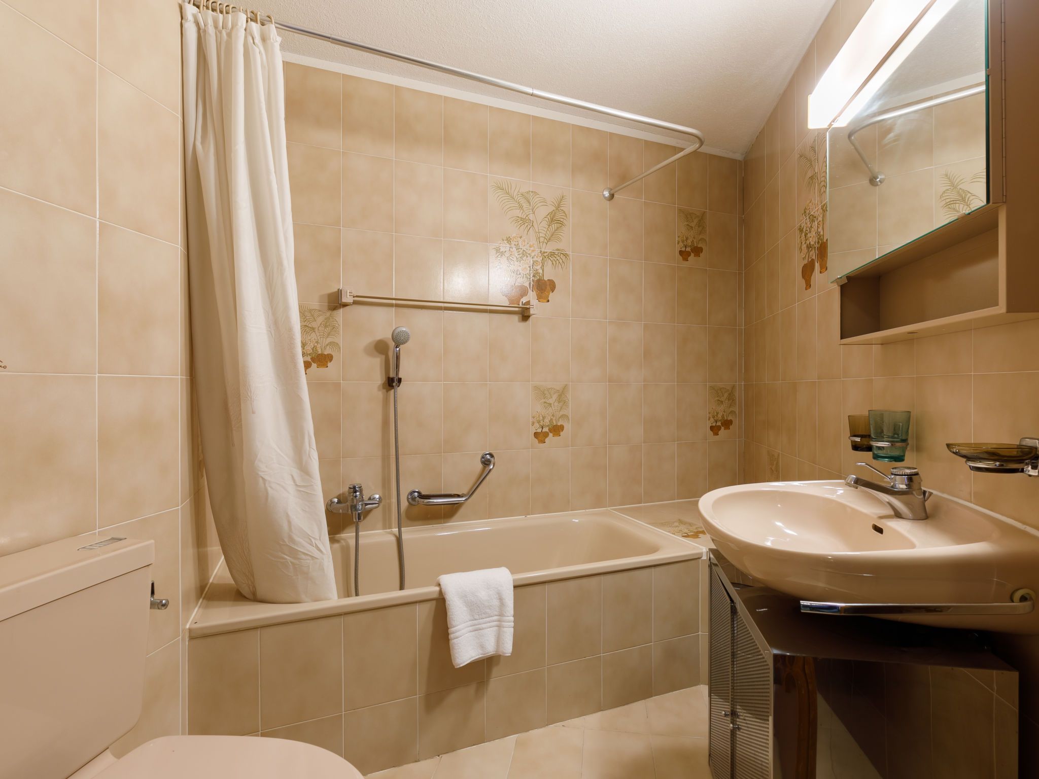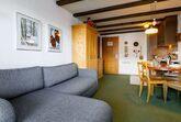 Residenza Chesa Margun 67-1, 1-Zimmer-Wohnung 30 m2. Einfach eingerichtet: Wohn-/Esszimmer mit 1 Doppeldiwanbett (160 cm, Länge 180 cm), Kabel-TV und Radio. Ausgang zum Balkon. Kochnische (Backofen, Geschirrspüler) mit Esstisch. Bad/WC. Balkon, Südlage. Balkonmöbel. Schöne Sicht auf die Berge und die Ortschaft. Maximal 1 Haustier/Hund erlaubt.