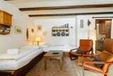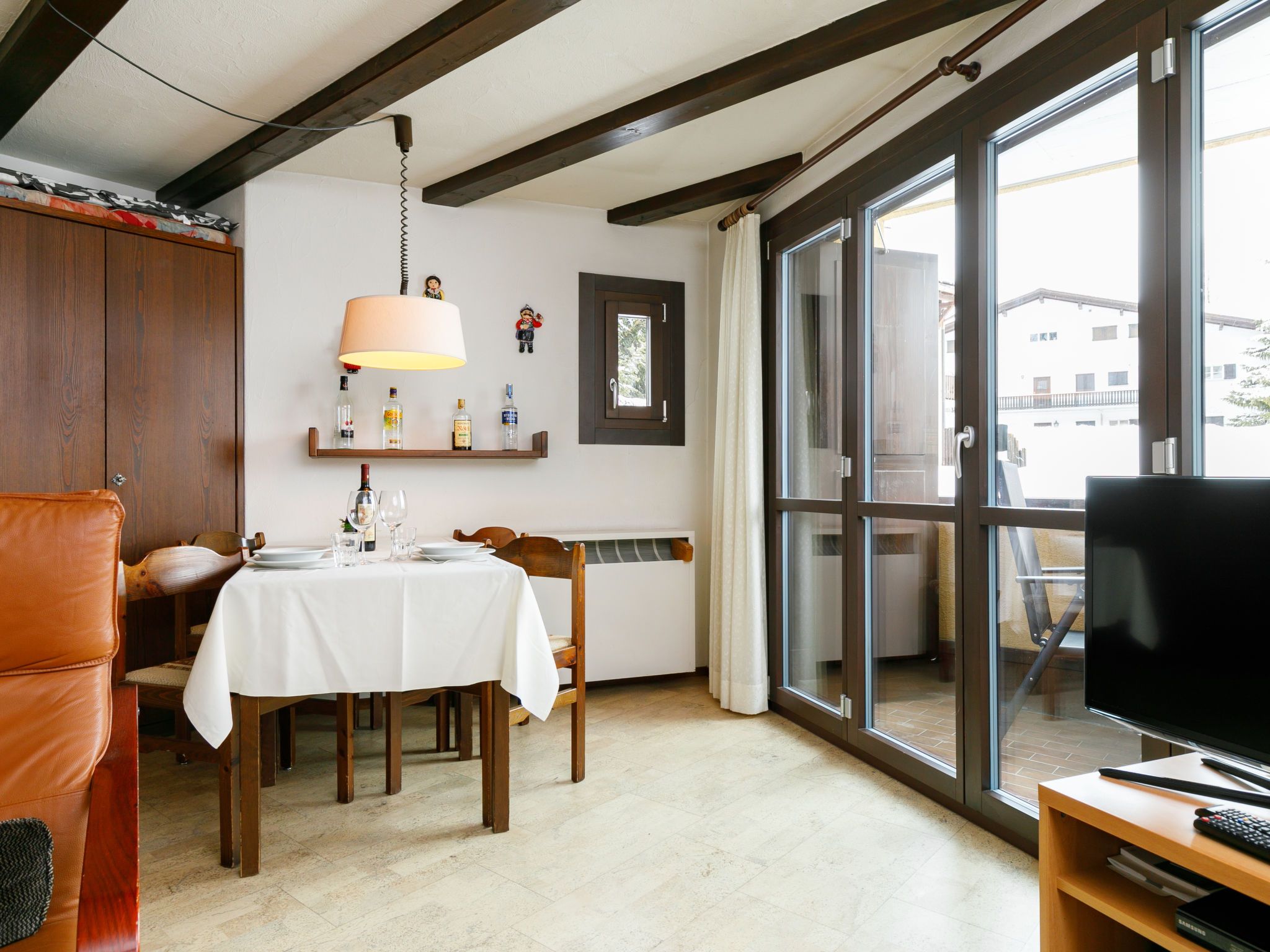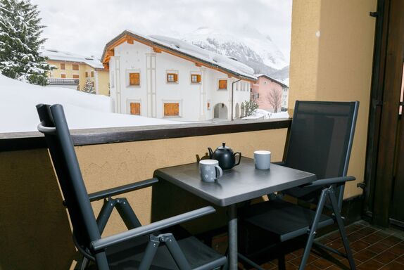 Residenza Chesa Margun 34-7, 1-Zimmer-Wohnung 38 m2 im 1. Stock. Zweckmässig und gemütlich eingerichtet: Wohn-/Esszimmer mit 2 Betten, Esstisch und Sat-TV (Flachbildschirm), Radio und E-Heizung. Ausgang zum Balkon. Offene Küche im Eingang (4 Kochplatten, Backofen, Geschirrspüler, elektrische Kaffeemaschine). Dusche/WC. Balkon, Südlage. Sicht auf die Berge und die Ortschaft. Zur Verfügung: Internet (Wireless LAN). Bitte beachten: Nichtraucher-Unterkunft.