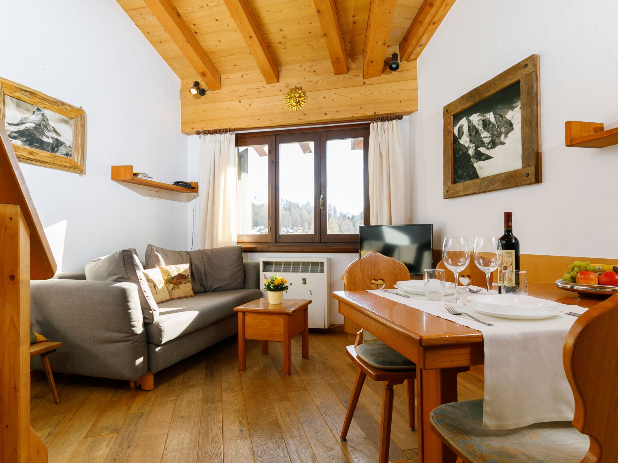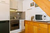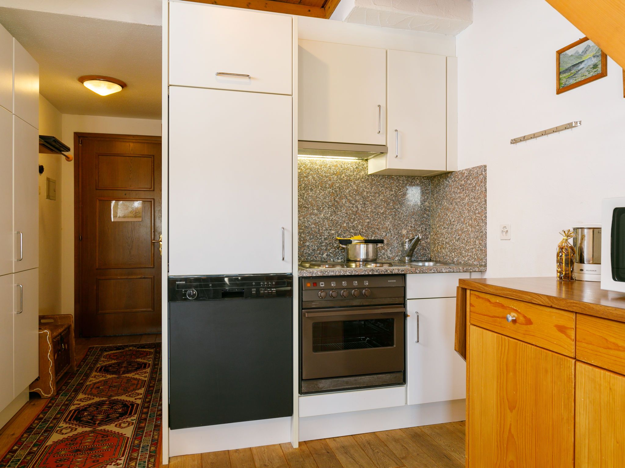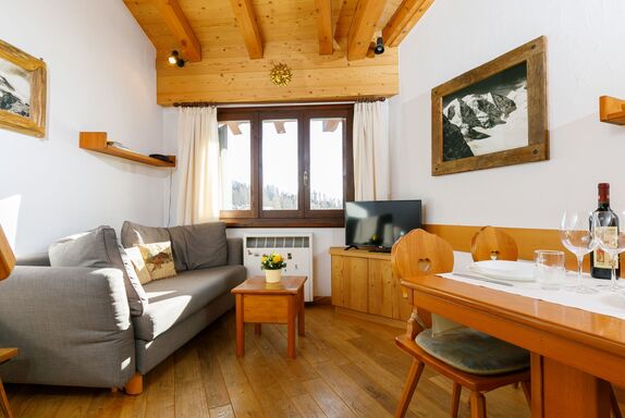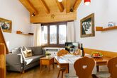 Residenza Chesa Margun 59-4, 1-Zimmer-Wohnung 24 m2 auf 2 Stockwerken, Südlage. Hell, schön und gemütlich eingerichtet: Wohn-/Esszimmer mit Esstisch und Sat-TV. Kochnische (Backofen, Geschirrspüler). Bad/WC. Obergeschoss: offene Galerie mit 2 Betten (80 cm, Länge 180 cm). Schöne Sicht auf die Berge und die Landschaft. Bitte beachten: Nichtraucher-Unterkunft. Anstelle eines abgeschlossenen Schlafzimmers befinden sich manche Schlafplätze in einem offenen Bereich (Galerie, Nische etc.).