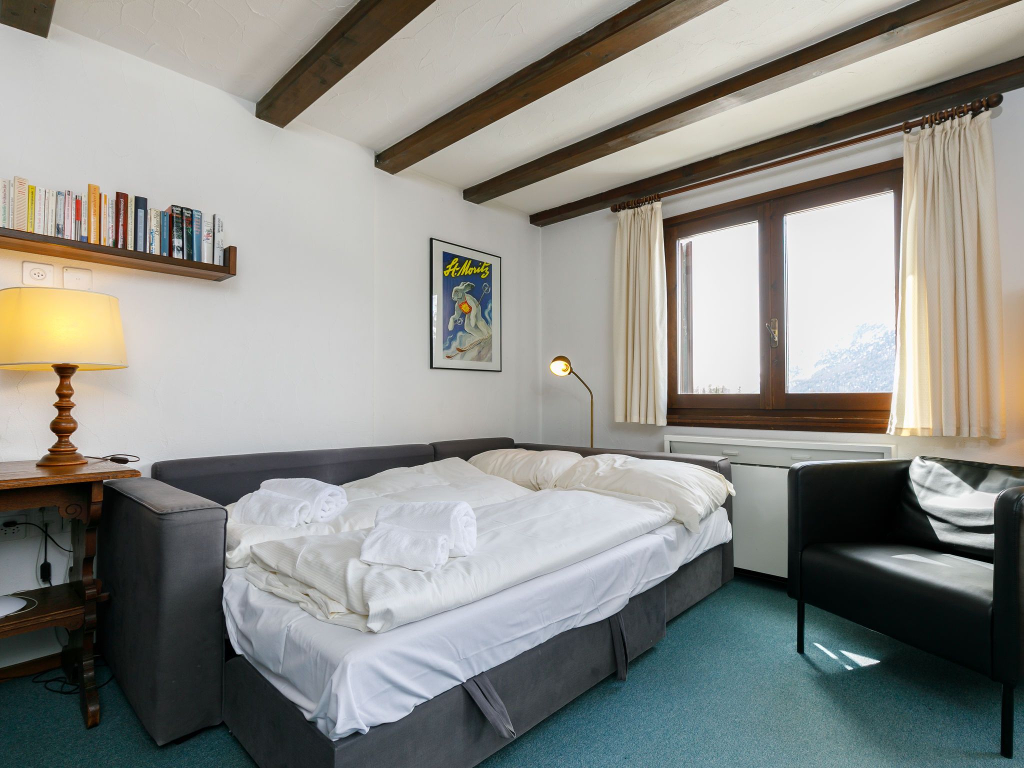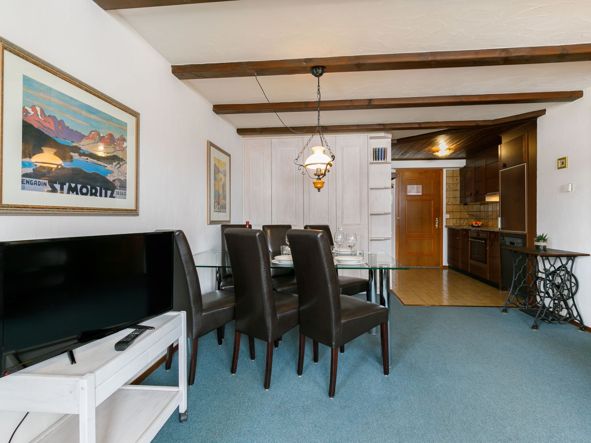 Residenza Chesa Margun 78-3, 2-Zimmer-Wohnung 51 m2. Gemütlich eingerichtet: Wohn-/Esszimmer mit 1 Doppeldiwanbett und TV (Flachbildschirm), Radio. Ausgang zum Balkon. 1 Zimmer mit 2 Betten. Offene Küche (Backofen, Geschirrspüler, 4 Glaskeramikplatten, Mikrowelle). Bad/WC. 2 Balkone. Schöne Sicht auf die Berge, die Landschaft und die Ortschaft.