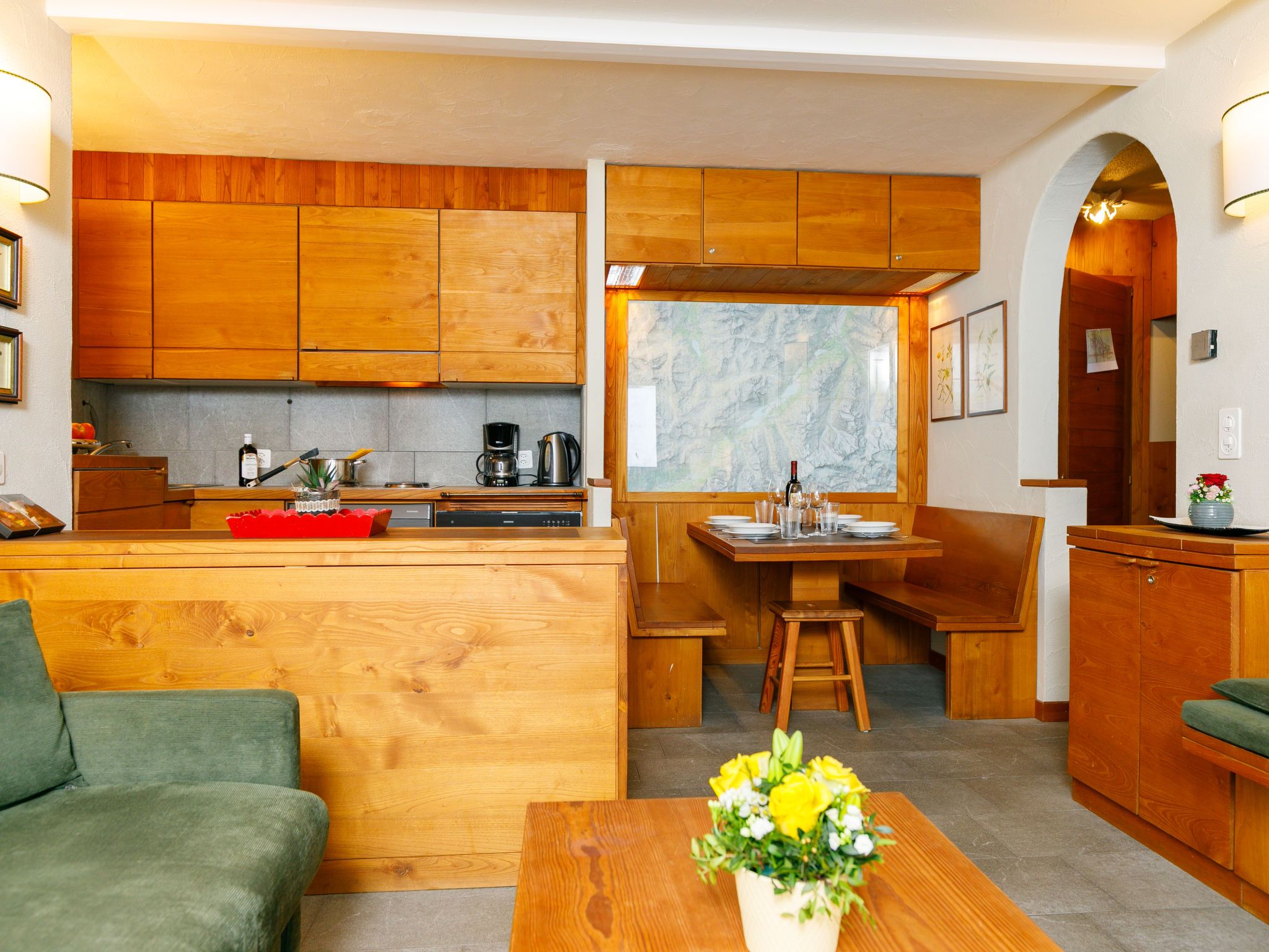 Residenza Chesa Margun 34-2, 2-Zimmer-Wohnung 47 m2, Nordlage. Vollständig renoviert, komfortabel und gemütlich eingerichtet: Wohn-/Esszimmer mit 1 Doppeldiwanbett, TV und Radio. 1 Zimmer mit 2 Betten. Kochnische (Backofen, Geschirrspüler). Bad/WC. CH44664