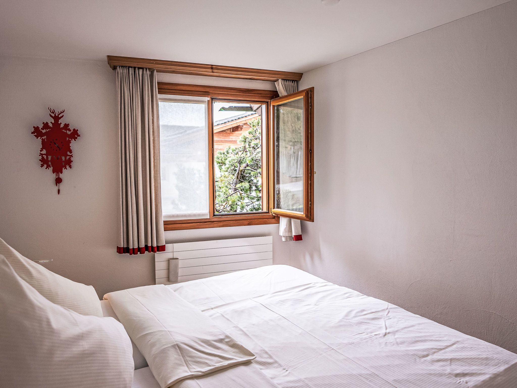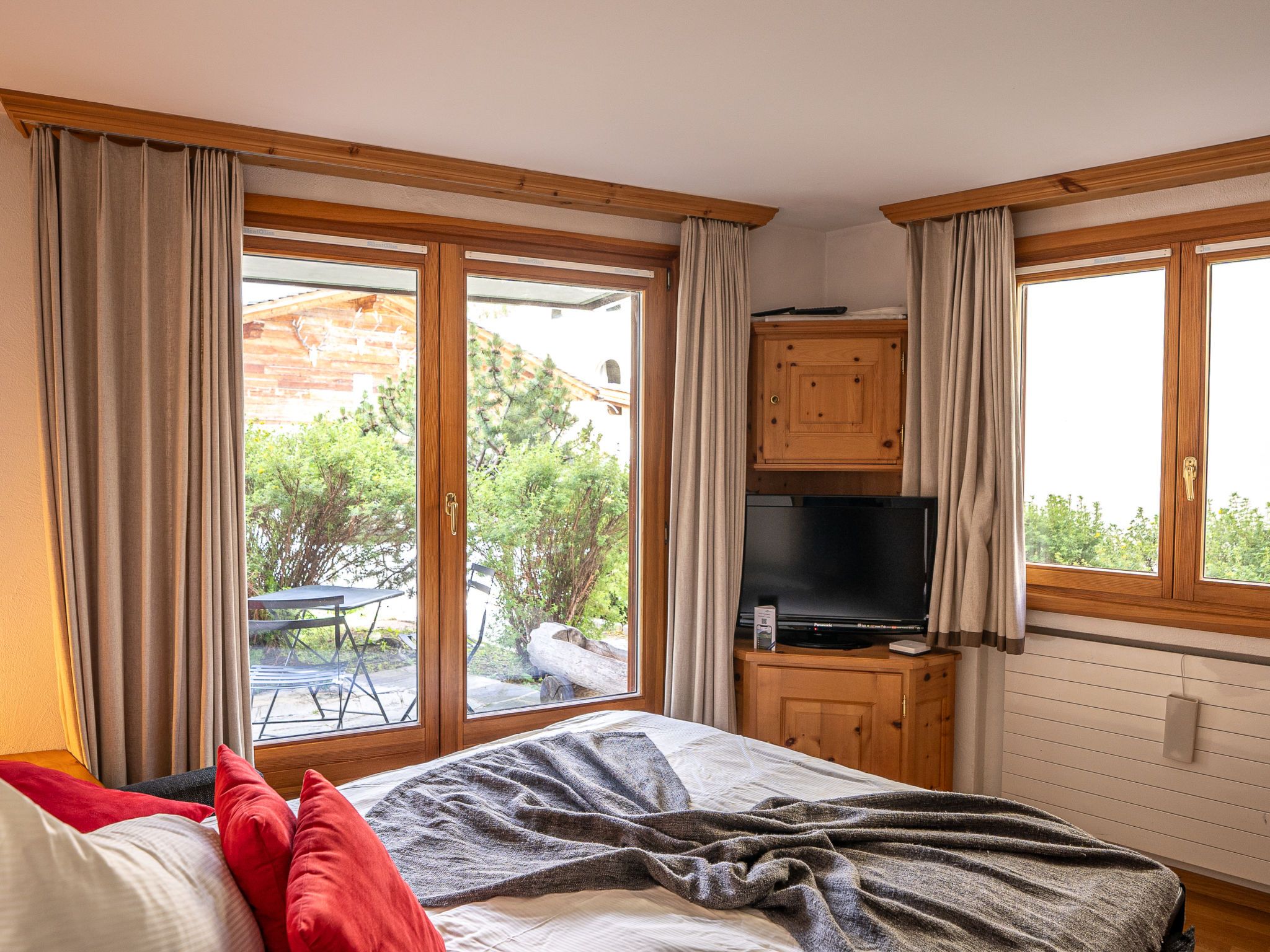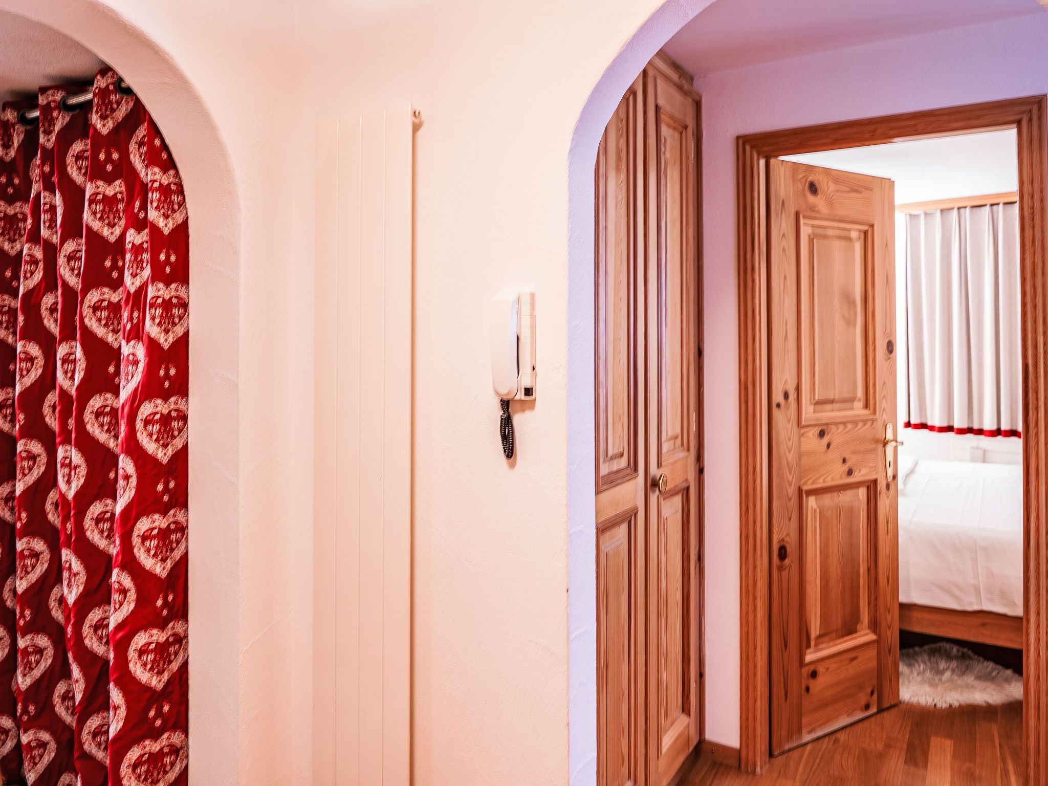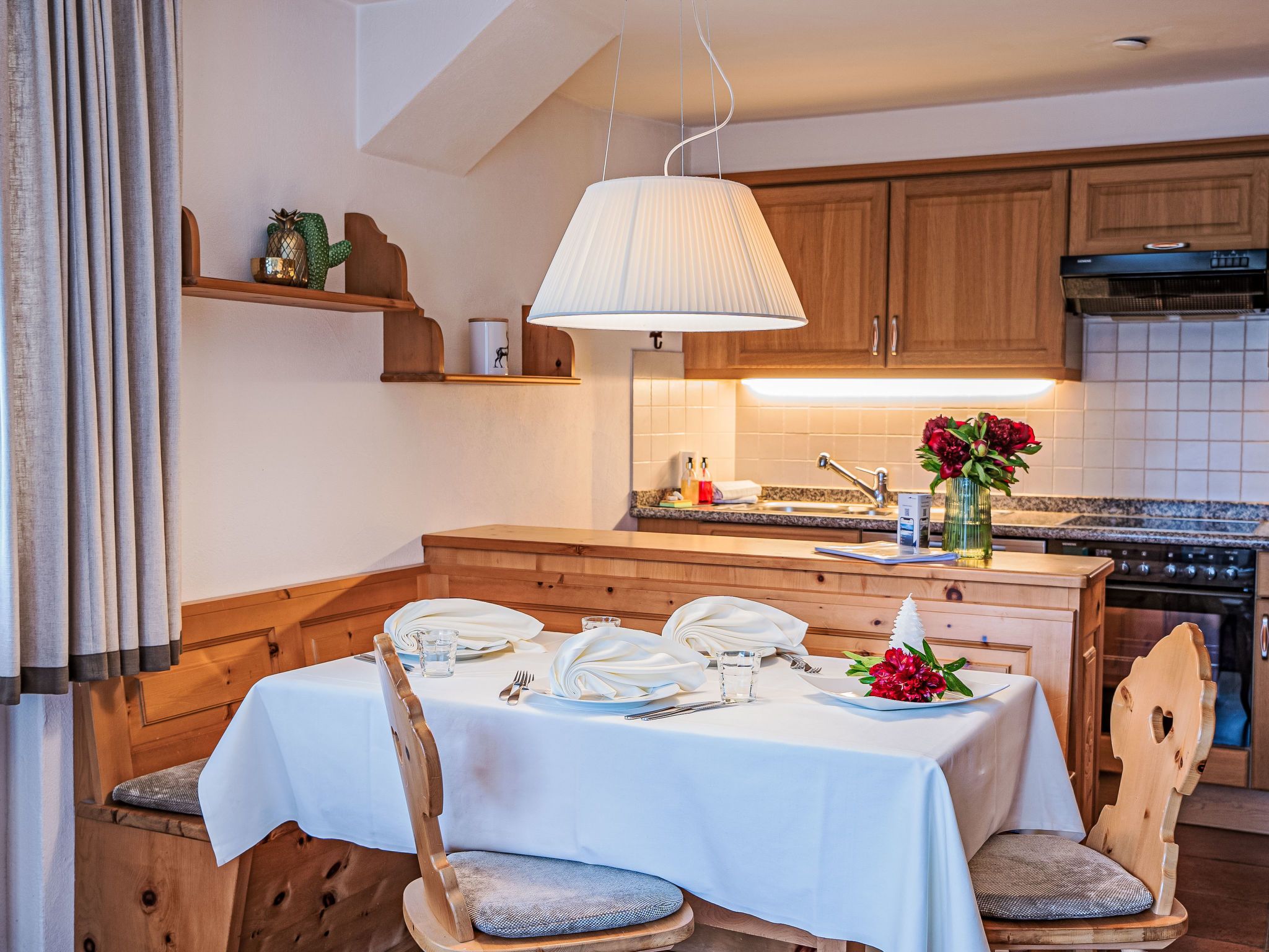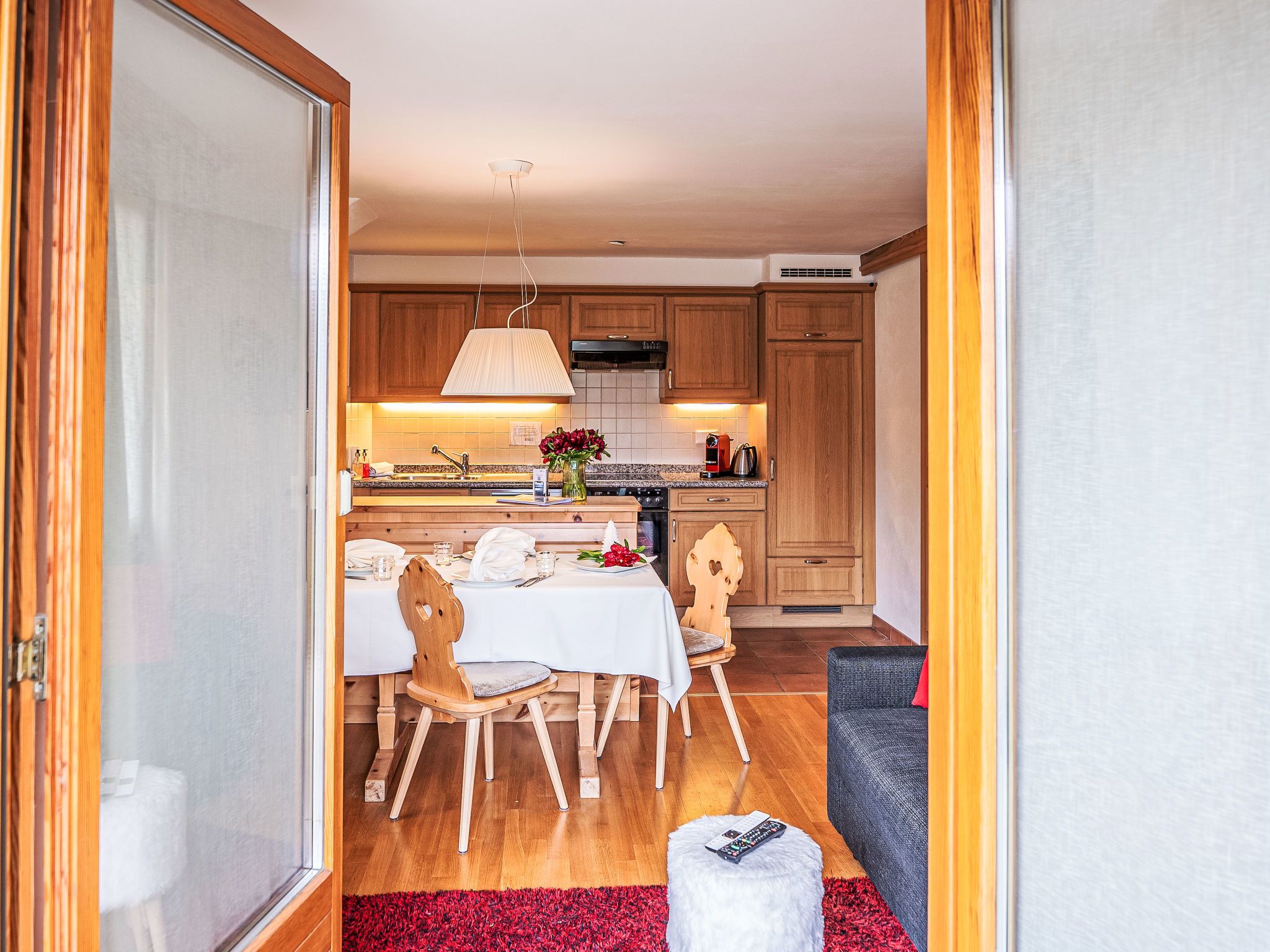 Chesa Vadret Surlej, 2-Zimmer-Wohnung 57 m2, im Erdgeschoss. Teilweise renoviert im Jahre 2016, gemütlich eingerichtet: offenes Wohn-/Esszimmer mit 1 Diwanbett (160 cm, Länge 200 cm), TV (Flachbildschirm). Ausgang zur Terrasse. 1 Zimmer mit 1 Doppelbett (1 x 170 cm, Länge 200 cm). Offene Küche (Geschirrspüler, 4 Glaskeramikplatten, Toaster, Wasserkocher, elektrische Kaffeemaschine, Kapseln für die Kaffeemaschine (Nespresso) extra, Fondue Set (Chinoise)). Dusche/Bidet/WC. Heizung. Kleine Terrasse. Terrassenmöbel. Sicht auf die Berge und die Ortschaft. Zur Verfügung: Haartrockner. Internet (Wireless LAN, gratis). Garage Nr. 26 auf dem Grundstück, Höhe 205 cm, Breite 290 cm. Bitte beachten: Nichtraucher-Unterkunft.