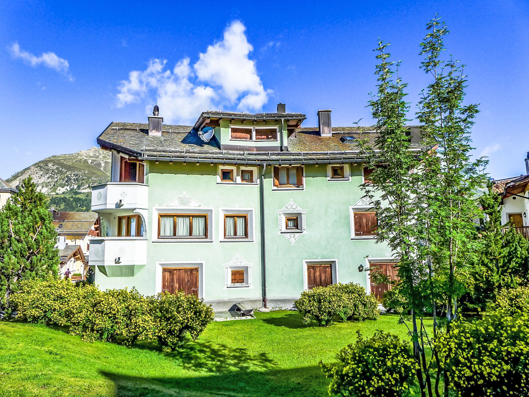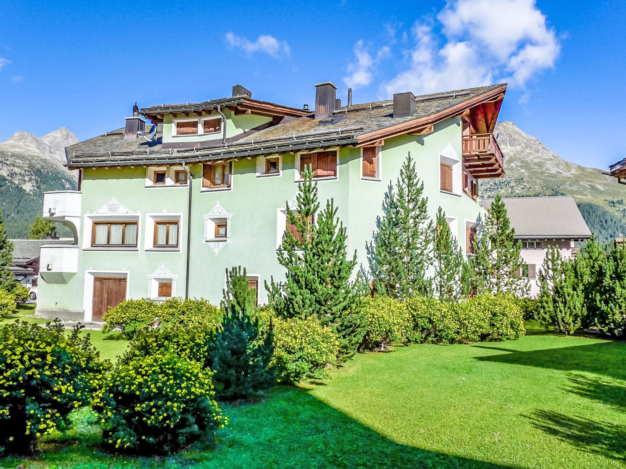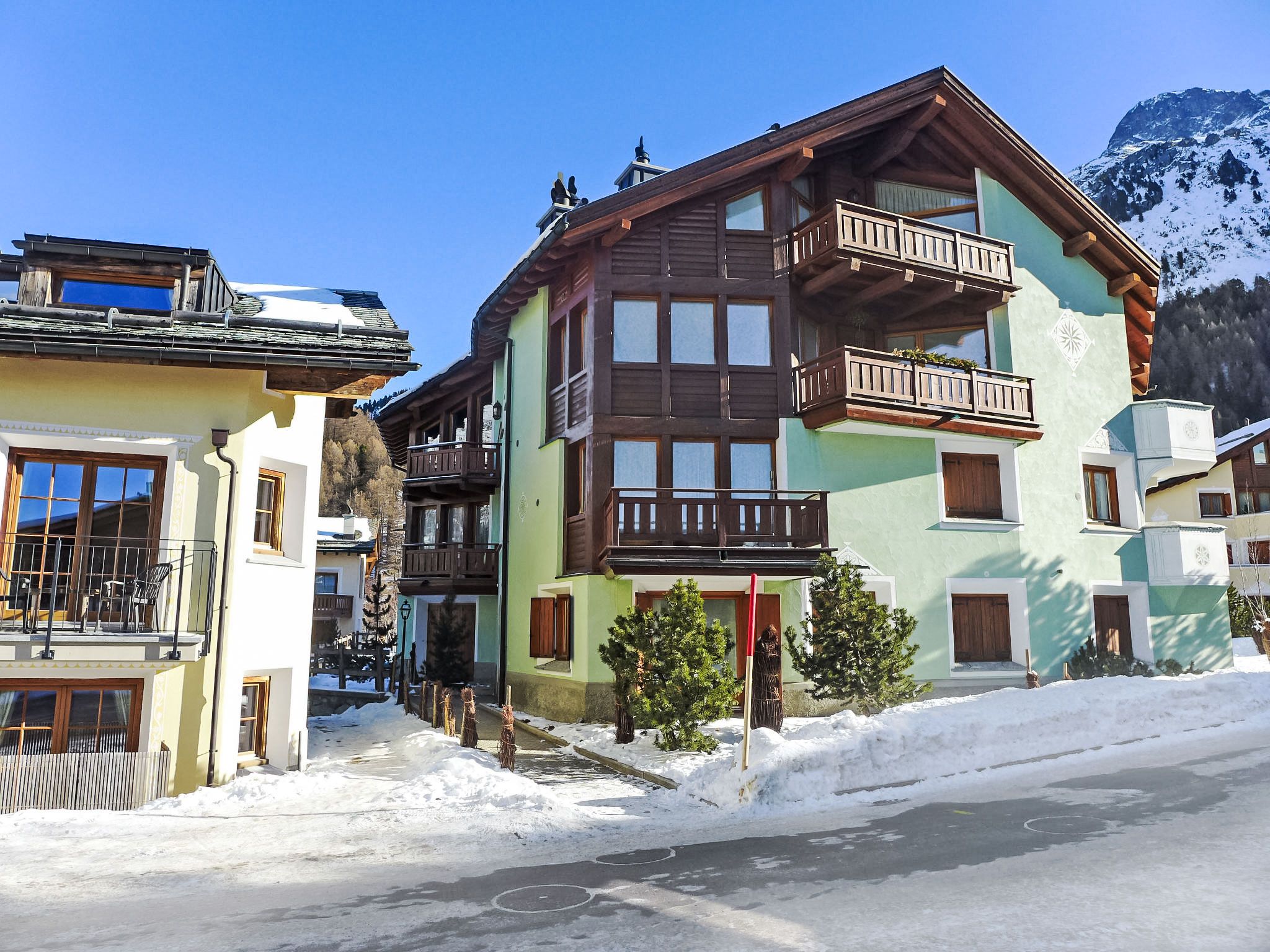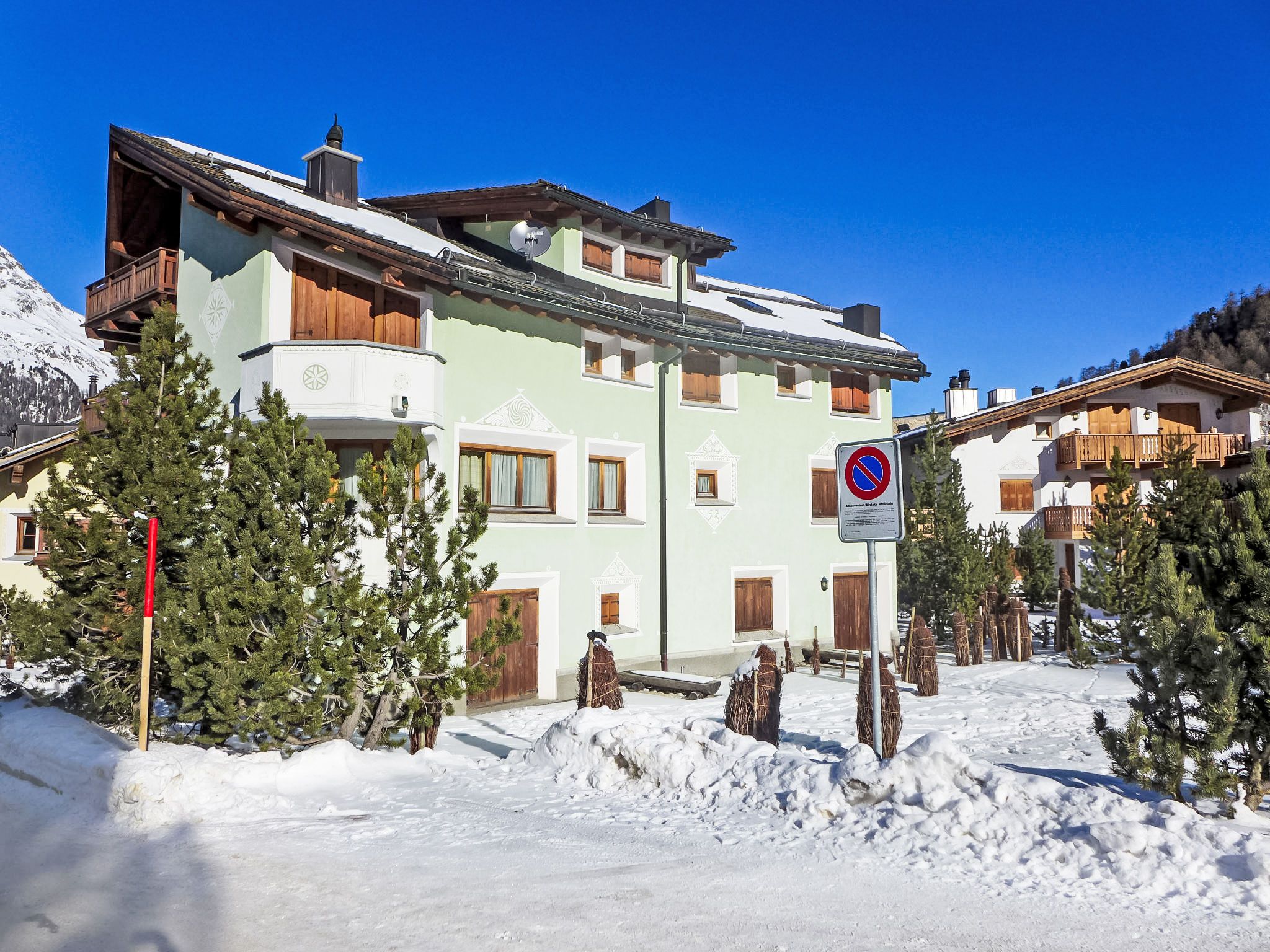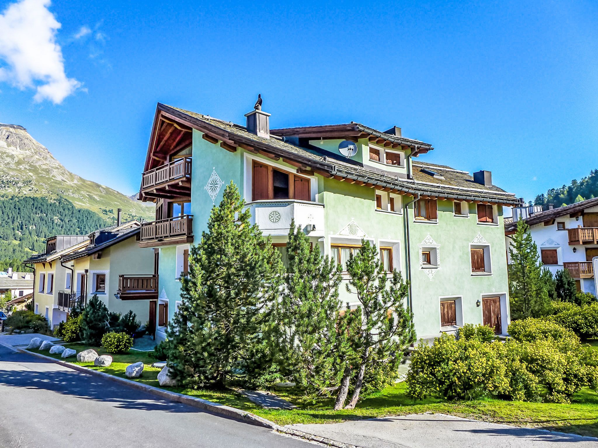 Surlej 1 km von Silvaplana: Gemütliches Mehrfamilienhaus Chesa Vadret Surlej, auf 3 Stockwerken, Baujahr 2000. Im Ortszentrum von Surlej, in einem Wohnquartier, 300 m vom Waldrand, 500 m vom See, 300 m vom Skigebiet. Zur Mitbenutzung: kleiner terrassierter Garten (nicht eingezäunt). Im Hause: Skiraum, Zentralheizung, Waschmaschine, Wäschetrockner (zur Mitbenutzung, extra). Gemeinschaftsgarage Nr. 26 beim Haus. Einkaufsgeschäft 1 km, Lebensmittelgeschäft 1 km, Restaurant 10 m, Bäckerei 60 m, Café 60 m, Bushaltestelle Surlej Parkplatz 200 m, Hallenbad 6 km, See Silvaplaner See 500 m. Golfplatz (18 Loch) 13 km, Surfschule 1.7 km, Tennis 1.7 km, Tennishalle 5.5 km, Minigolf 6 km, Reitstall 3.3 km, Sportzentrum 1.7 km, Wanderwege ab Haus, Radweg 400 m, Luftseilbahn 700 m, Skilift 700 m, Skiverleih 400 m, Skibushaltestelle 200 m, Skischule 300 m, Kinderskischule 300 m, Schlittelbahn 11 km, Langlaufloipe 200 m, Eisfeld 1.7 km, Kinderspielplatz 1 km. Nahe gelegene Sehenswürdigkeiten: Nietzsche-Haus in Sils-Maria 6 km, Segantini-Museum in St. Moritz 6 km. Bekannte Skigebiete sind gut erreichbar: Corvatsch - Furtschellas 700 m, Corviglia 6 km, Diavolezza - Lagalb 25 km. Bekannte Seen in der Umgebung sind gut erreichbar: Silvaplana See 500 m, Silser See 5 km, St. Moritzer See 6 km. Wandergebiete: Corvatsch - Furtschellas 700 m, Via Engiadina 1.7 km, Seengebiet St. Moritz - Maloja. Bitte beachten: Gratis Skibus. Der gratis Skibus fährt zum Skigebiet Corvatsch.