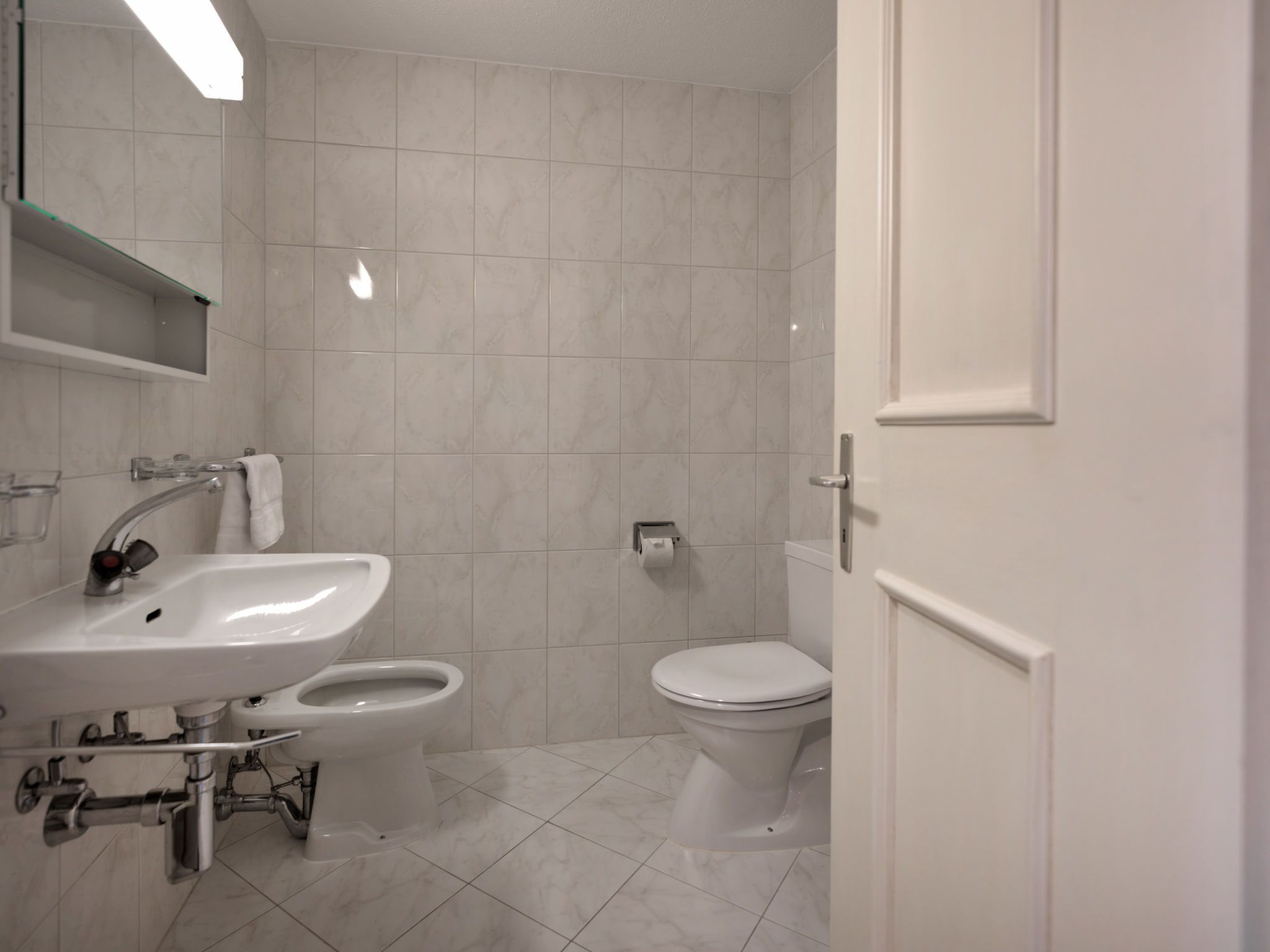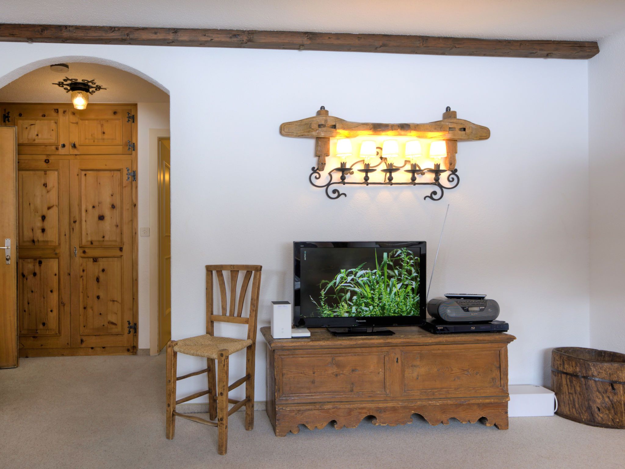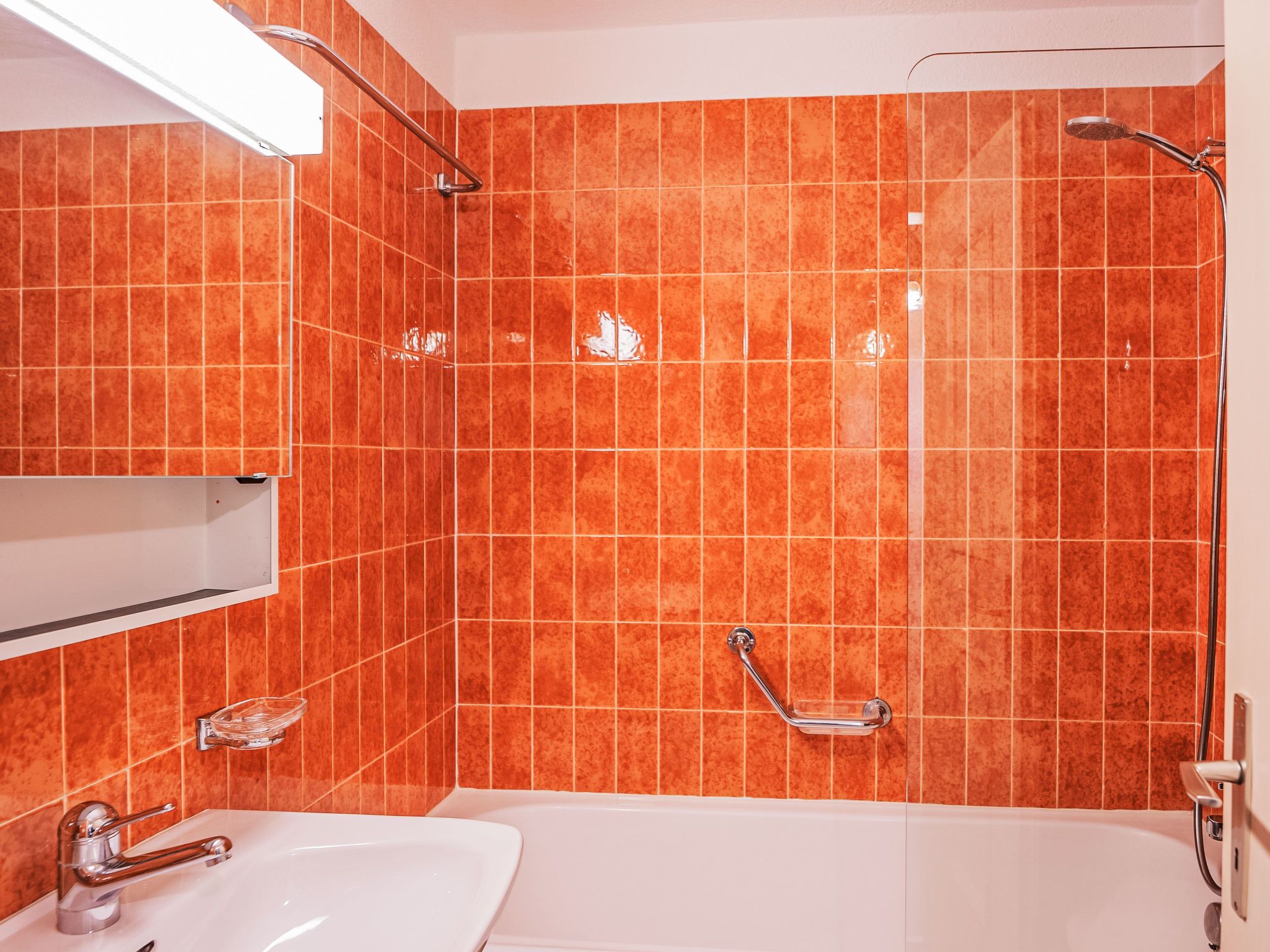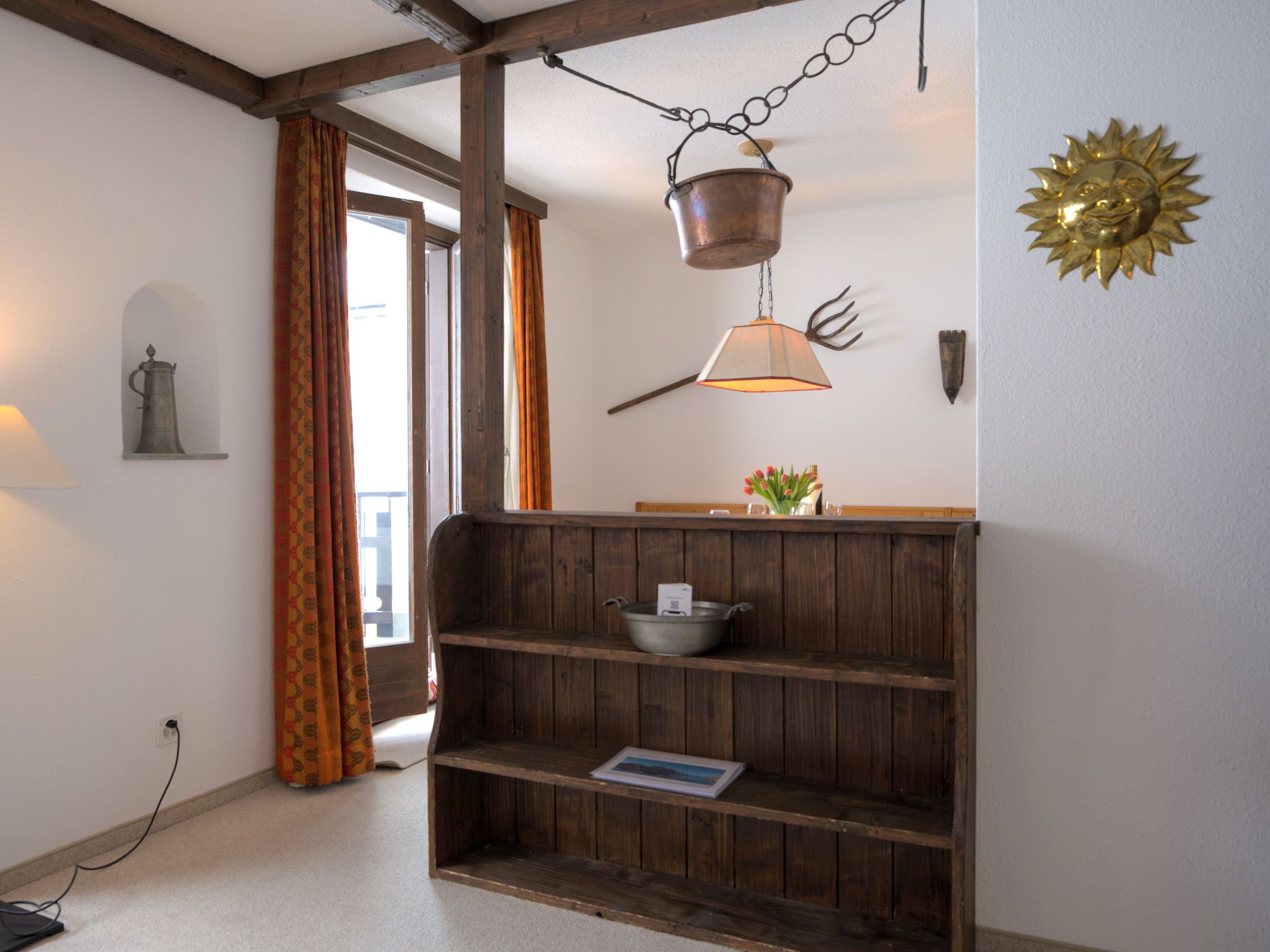 Chesa Linaria, 3-Zimmer-Wohnung 70 m2, im erhöhten Erdgeschoss. Einfach eingerichtet: Wohnzimmer mit Essecke und TV (Flachbildschirm). Ausgang zum Balkon, Richtung Süden. 1 Zimmer mit 1 Doppelbett (2 x 90 cm, Länge 185 cm). 1 kleines Zimmer mit 2 Betten (90 cm, Länge 190 cm). Küche (Backofen, Geschirrspüler, Toaster, Wasserkocher, elektrische Kaffeemaschine, Kapseln für die Kaffeemaschine (Nespresso) extra, Racletteofen, Fondue Set (Chinoise)) mit Durchreiche. Bad/WC, Dusche/Bidet/WC. Heizung. Kleiner Balkon. Terrassenmöbel. Schöne Sicht auf die Berge. Zur Verfügung: Bügeleisen, Haartrockner. Internet (Wireless LAN, gratis). Garage Nr. 9 (small!), Höhe 205 cm, Breite 190 cm. Maximal 1 Haustier/Hund erlaubt. 756.8668.2733.01