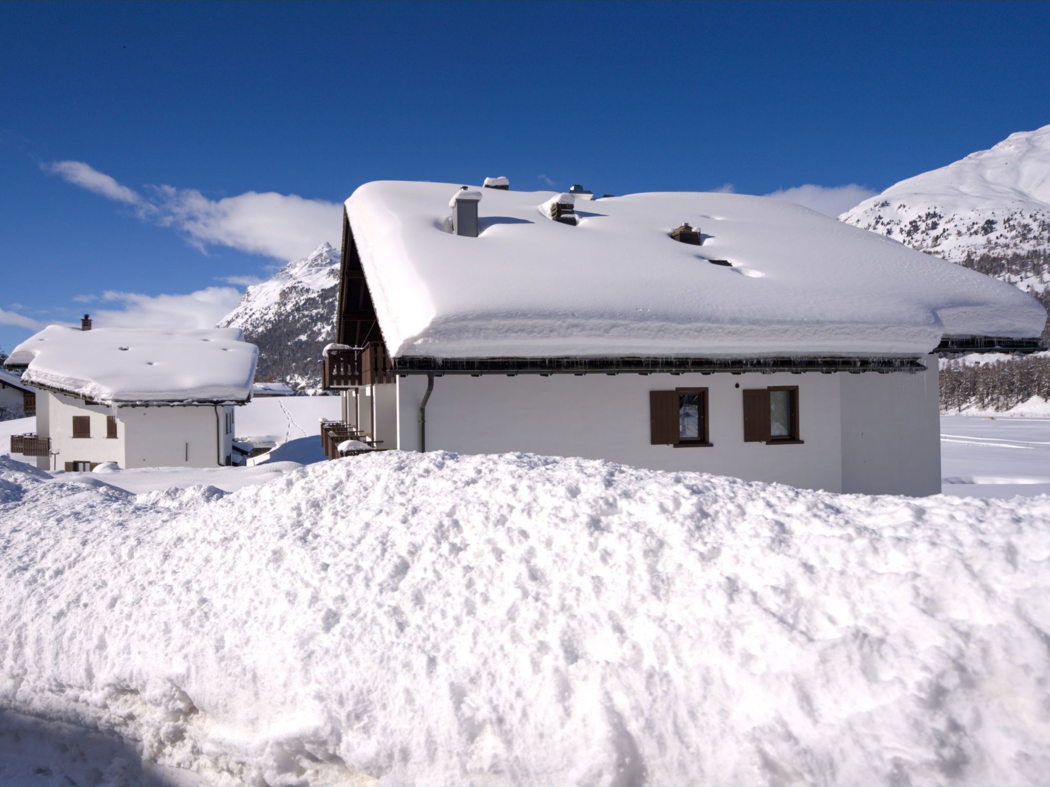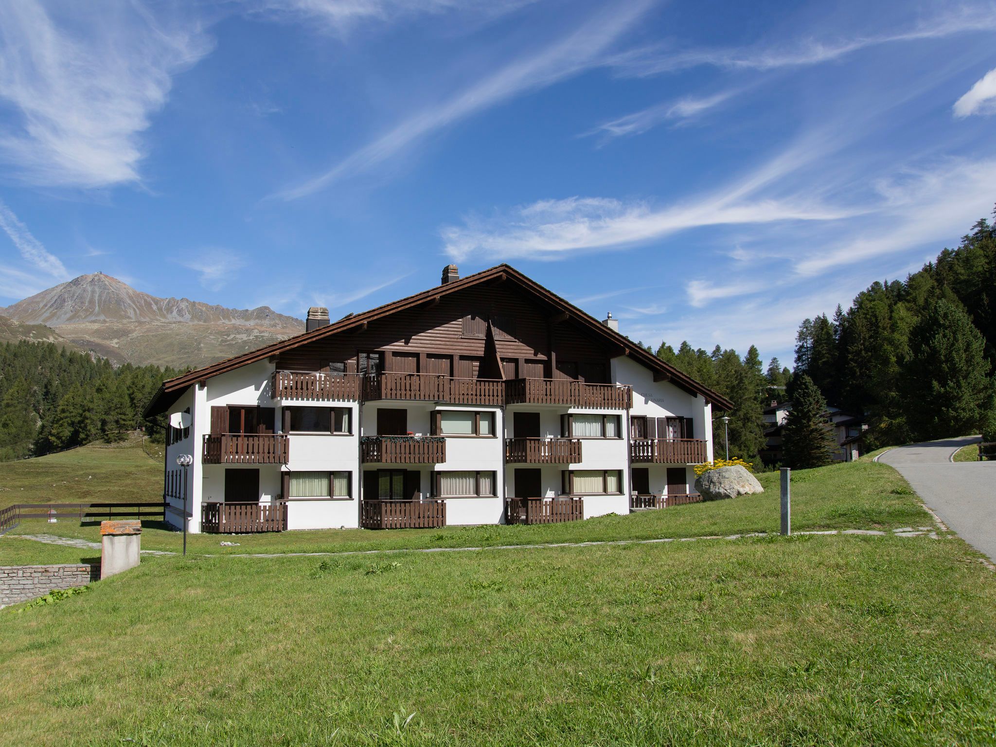Surlej 1 km von Silvaplana: Mehrfamilienhaus Chesa Linaria. Ruhige, sonnige Lage, 500 m vom See, in einer Sackgasse. Im Hause: Zentralheizung, Waschmaschine (zur Mitbenutzung, extra). Parkplatz/Garage nur für kleine - mittlere Fahrzeuge geeignet. Einkaufsgeschäft 1.3 km, Lebensmittelgeschäft 1.3 km, Restaurant 300 m, Bäckerei 200 m, Café 200 m, Bushaltestelle Surlej Parkplatz 50 m, Hallenbad 6 km, See Silvaplaner See 500 m. Golfplatz (18 Loch) 13 km, Surfschule 1.7 km, Tennis 1.7 km, Tennishalle 6 km, Minigolf 6 km, Reitstall 3.3 km, Sportzentrum 1.7 km, Wanderwege ab Haus, Radweg 100 m, Luftseilbahn 750 m, Skilift 750 m, Skiverleih 220 m, Skibushaltestelle 50 m, Skischule 450 m, Kinderskischule 450 m, Schlittelbahn 12 km, Langlaufloipe 100 m, Eisfeld 1.7 km, Kinderspielplatz 1.3 km. Nahe gelegene Sehenswürdigkeiten: Nietzsche-Haus in Sils-Maira 6 km, Segantini-Museum in St. Moritz 6 km. Bekannte Skigebiete sind gut erreichbar: Corvatsch - Furtschellas 750 m, Corviglia 6 km, Diavolezza - Lagalb 25 km. Bekannte Seen in der Umgebung sind gut erreichbar: Silvaplana See 500 m, St. Moritzer See 6 km, Silser See 6 km. Wandergebiete: Corvatsch - Furtschellas 750 m, Via Engiadina 1.7 km, Seengebiet St. Moritz - Maloja. Bitte beachten: kein Fahrstuhl vorhanden. Gratis Skibus. Der gratis Skibus fährt zum Skigebiet nur Corvatsch.