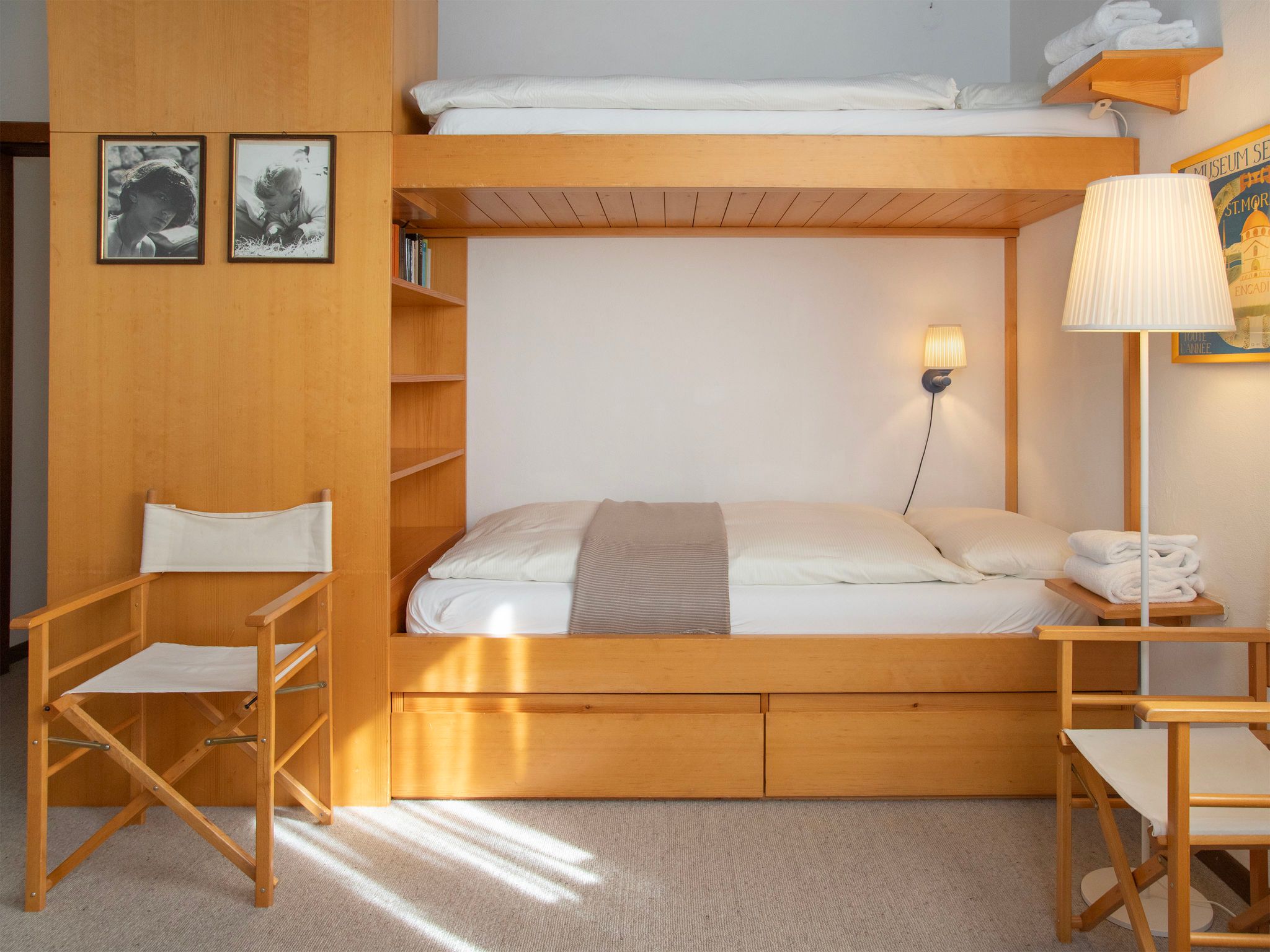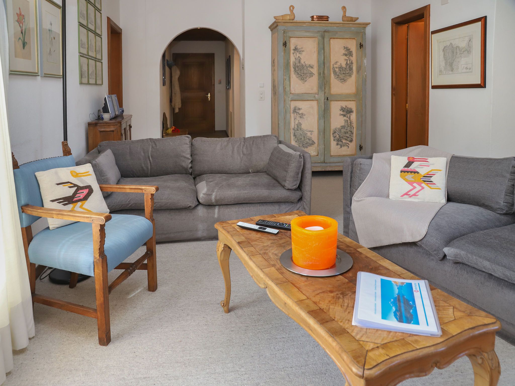 Chesa Prasüra 10, 3-Zimmer-Wohnung 80 m2, im Dachgeschoss. Sehr komfortabel und gemütlich eingerichtet: Wohn-/Esszimmer mit offenem Kamin, TV und Radio. Ausgang zum Balkon, Richtung Süden. 1 Zimmer mit 1 Doppelbett (1 x 160 cm, Länge 200 cm). 1 Zimmer mit 2 Betten (85 cm, Länge 180 cm), 1 x 2 Etagenbetten (85 cm, Länge 180 cm), Bad/WC. Küche (4 Kochplatten, Backofen, Geschirrspüler, Toaster, Wasserkocher, elektrische Kaffeemaschine, Kapseln für die Kaffeemaschine (Nespresso) extra, Racletteofen, Fondue Set (Chinoise)). Bad/WC. Kleiner Balkon. Terrassenmöbel. Eingeschränkte Sicht auf die Ortschaft. Zur Verfügung: Haartrockner. Internet (Wireless LAN, gratis). Garage Nr. 68, Höhe 230 cm, Breite 220 cm. Bitte beachten: geeignet für Familien. Nichtraucher-Unterkunft. Maximal 1 Haustier/Hund erlaubt. Kein Fahrstuhl.
