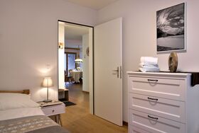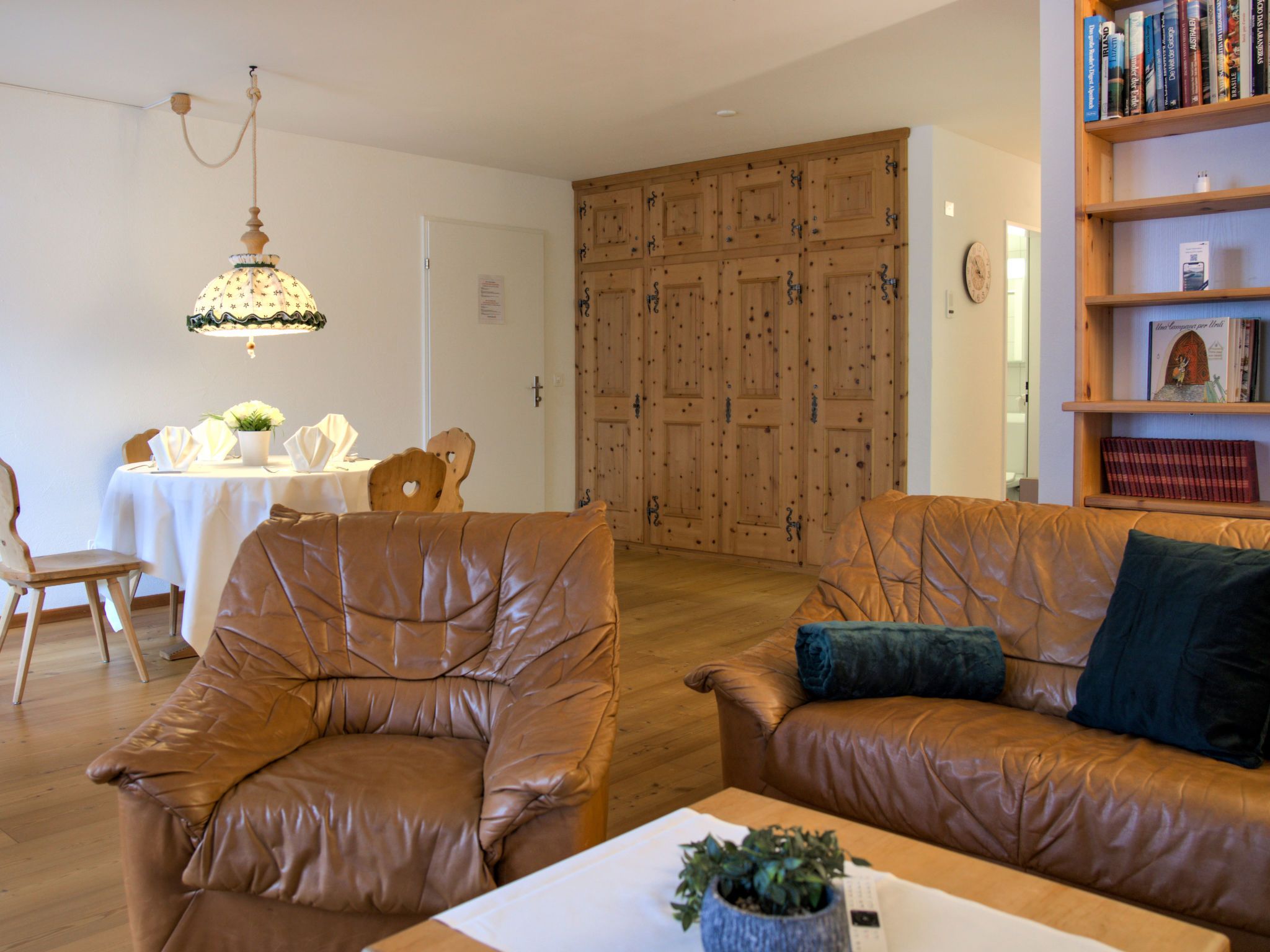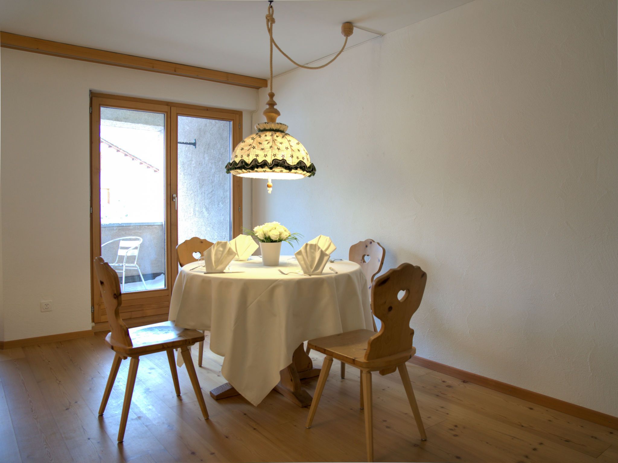 Chesa Ginellas, 3-Zimmer-Wohnung 74 m2 im 1. Stock. Hell, teilweise renoviert im Jahre 2020, komfortabel und gemütlich eingerichtet: offenes Wohn-/Esszimmer mit Esstisch und TV (Flachbildschirm). Ausgang zum Balkon. 1 Doppelzimmer mit 1 Doppelbett (2 x 90 cm, Länge 200 cm). 1 Zimmer mit 2 Betten (90 cm, Länge 200 cm). Offene Küche (Backofen, Geschirrspüler, 4 Glaskeramikplatten, Toaster, Wasserkocher, Tiefkühler, elektrische Kaffeemaschine, Kapseln für die Kaffeemaschine (Nespresso) extra, Racletteofen, Fondue Set (Käse)) mit Durchreiche. Bad/WC, sep. WC. Heizung. Parkettboden. Balkonmöbel. Schöne Sicht auf die Berge. Zur Verfügung: Bügeleisen, Haartrockner. Internet (Wireless LAN, gratis). Garage Nr. 523 (1 Auto) in 200 m, Höhe 225 cm, Breite 210 cm. Bitte beachten: geeignet für Familien. Nichtraucher-Unterkunft, Nichtraucher-Haus.