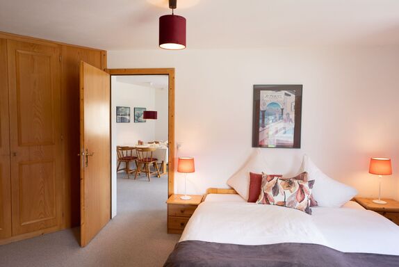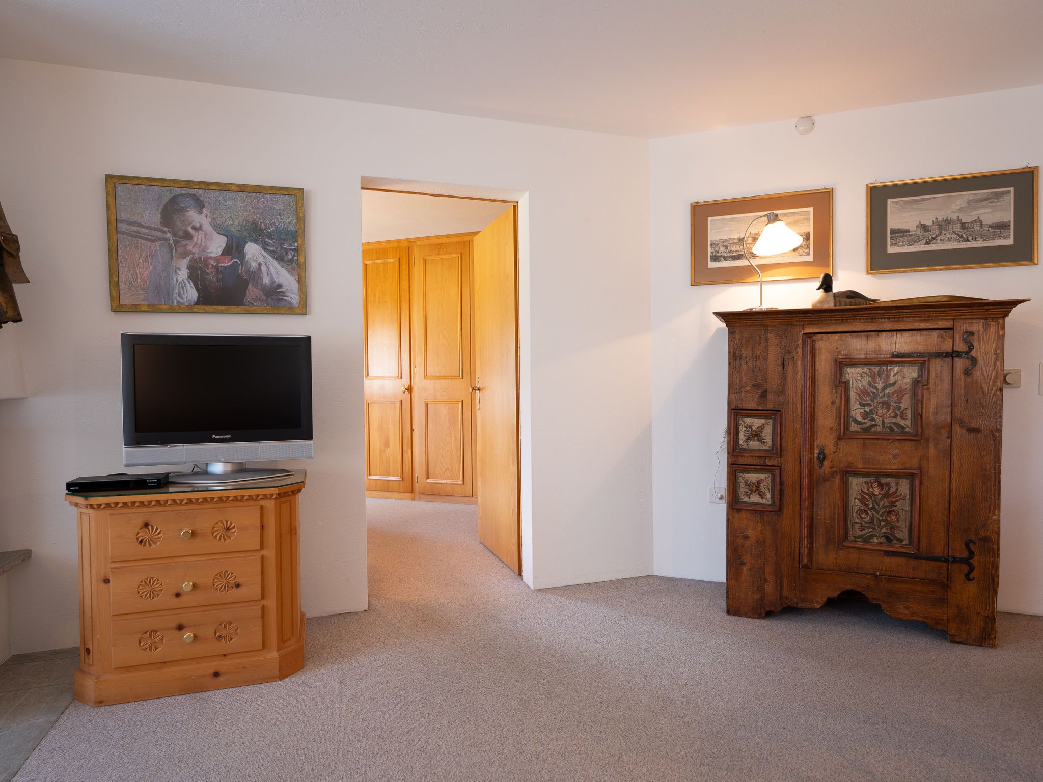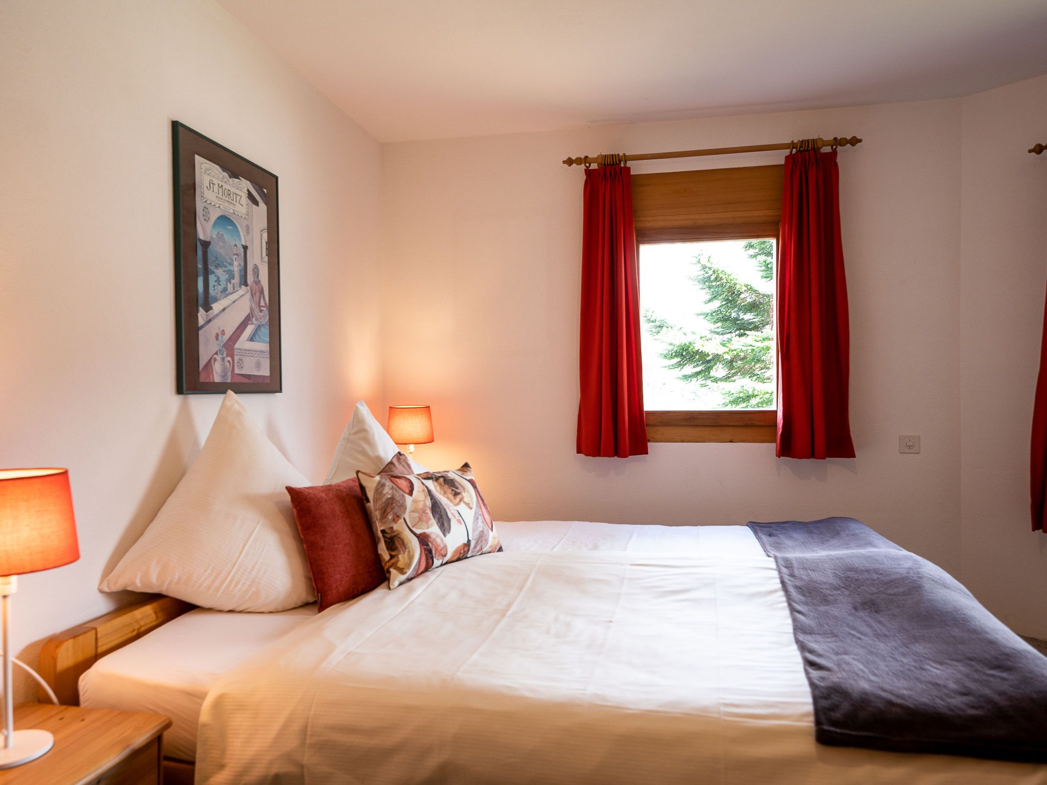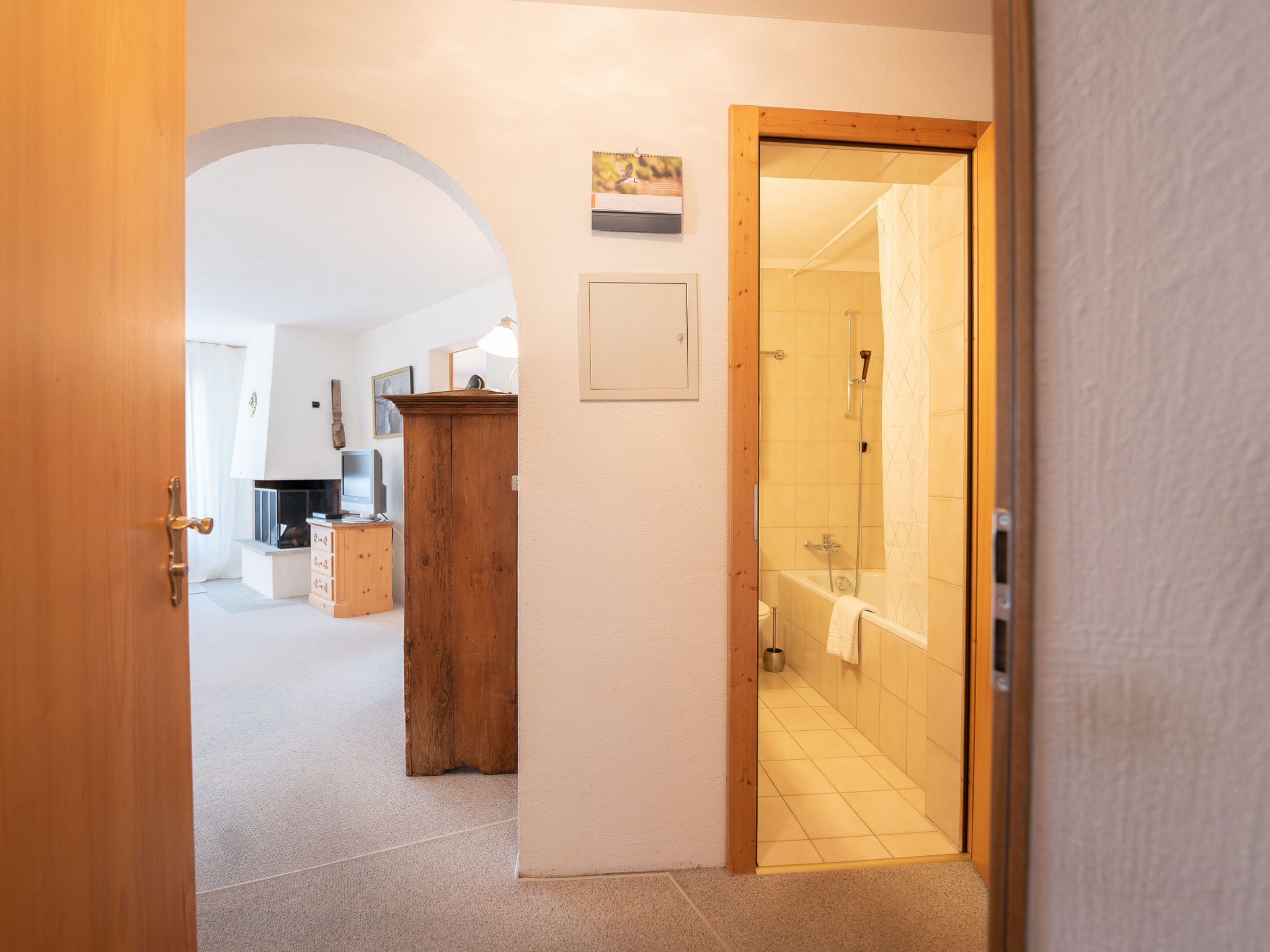 Chesa Pra dSura 217, 2-Zimmer-Wohnung 52 m2 im 1. Stock. Hell, einfach und gemütlich eingerichtet: Wohn-/Esszimmer mit offenem Kamin (nur Deko), TV (Flachbildschirm). Ausgang zum Balkon. 1 Doppelzimmer mit 1 Doppelbett (2 x 90 cm, Länge 200 cm). Kleine Küche (3 Kochplatten, Backofen, Geschirrspüler, Toaster, Wasserkocher, elektrische Kaffeemaschine, Fondue Set (Käse)). Bad/WC. Teppichboden. Balkonmöbel. Schöne Sicht auf die Landschaft und die Ortschaft. Zur Verfügung: Haartrockner. Internet (WLAN, gratis). Garage Nr. 217 (1 Auto), Höhe 200 cm, Breite 210 cm. Bitte beachten: Nichtraucher-Unterkunft.