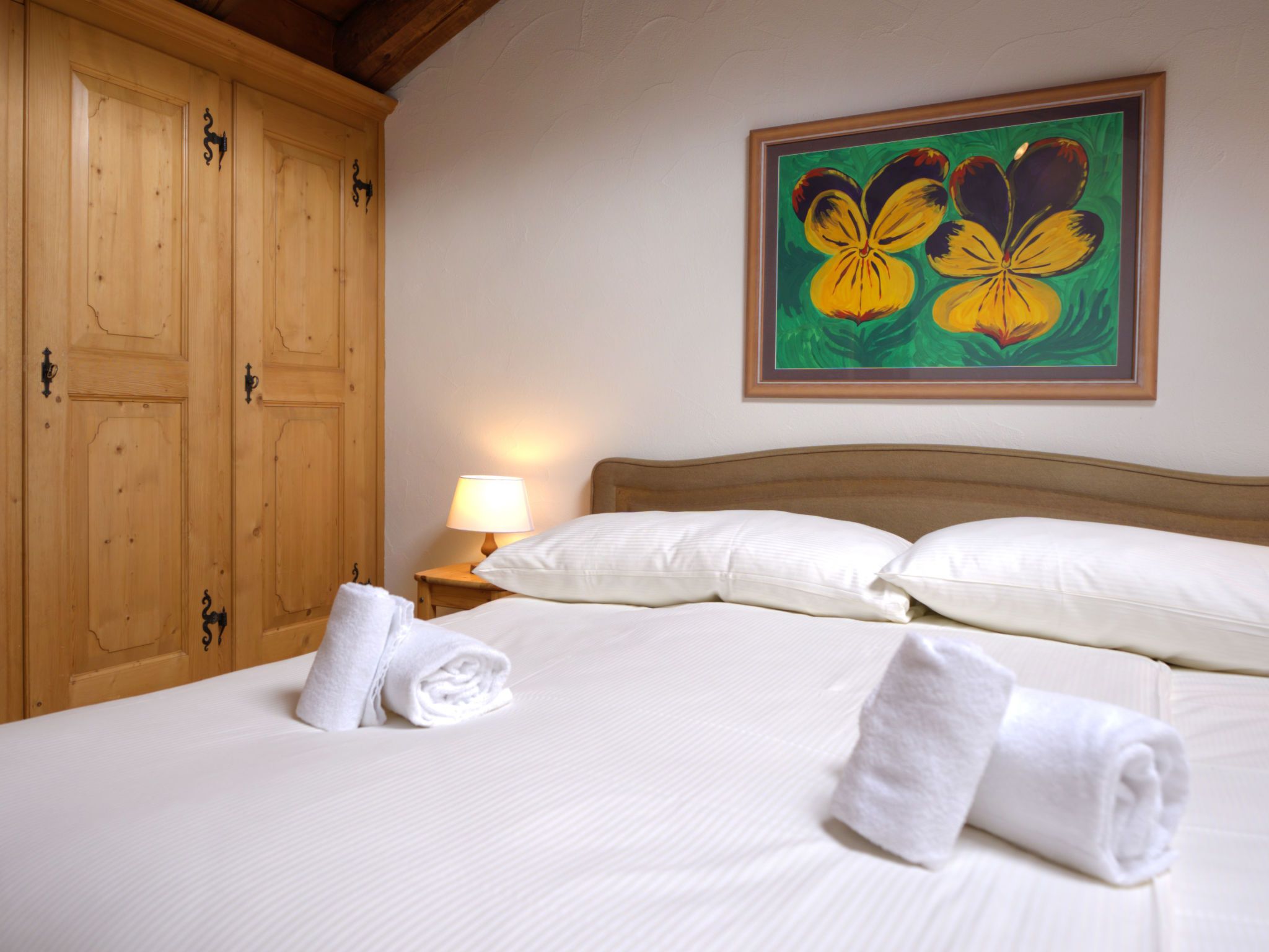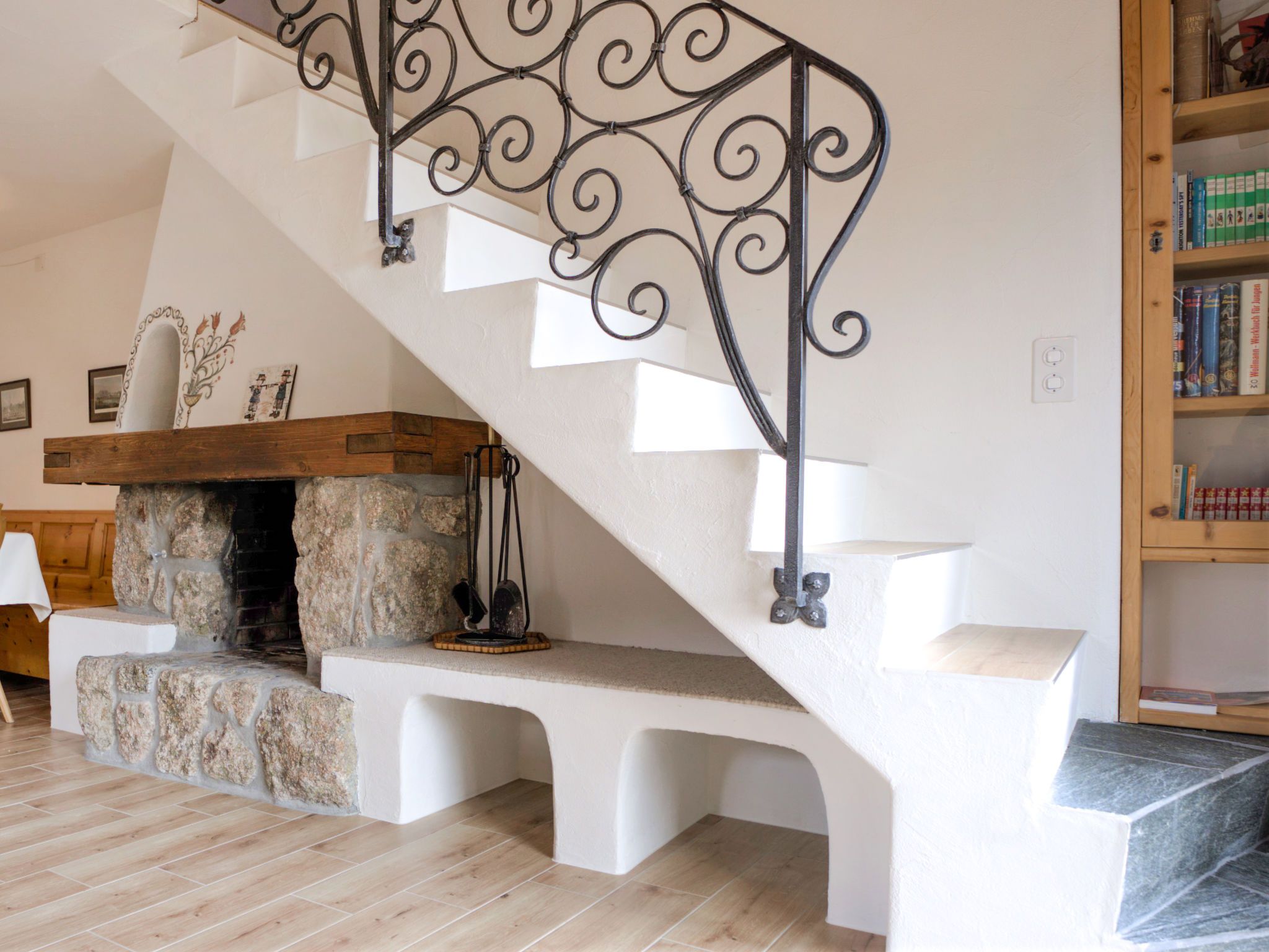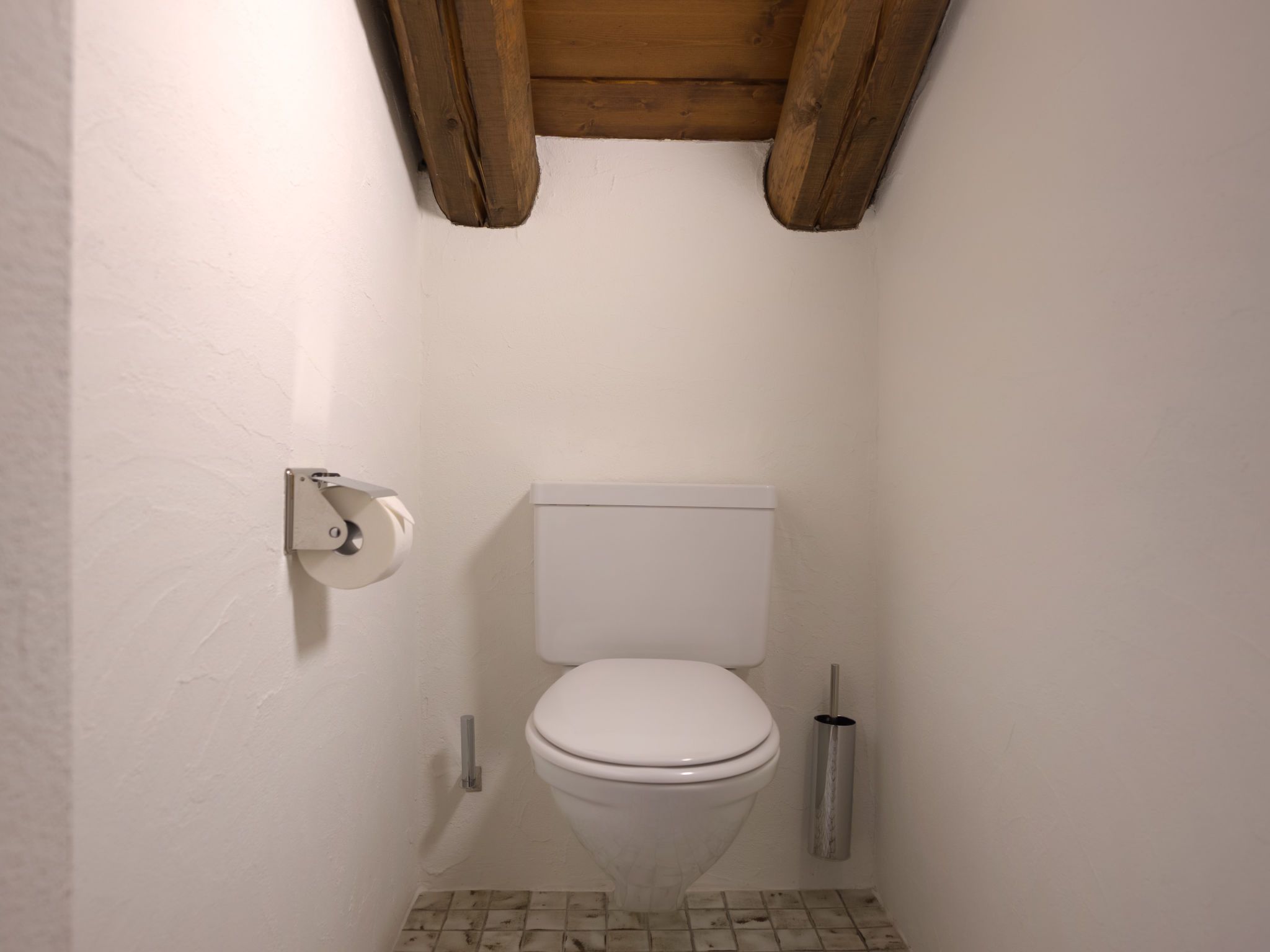 Chesa Chanella 5, 3-Zimmer-Wohnung 85 m2 auf 2 Stockwerken, im Dachgeschoss. Gemütlich eingerichtet: Wohn-/Esszimmer mit offenem Kamin, TV und Radio. Ausgang zum Balkon, Richtung Südwesten. 1 Zimmer mit 2 Betten (90 cm, Länge 190 cm). Küche (Backofen, Geschirrspüler, 4 Induktionskochplatten, Toaster, Wasserkocher, Tiefkühler, elektrische Kaffeemaschine, Kapseln für die Kaffeemaschine (Nespresso) extra, Fondue Set (Käse)). Bad/WC. Obergeschoss: (steile Treppe) abgeschrägte, offene Galerie mit 2 Betten (90 cm, Länge 195 cm). 1 Zimmer mit 1 franz. Bett (1 x 155 cm, Länge 200 cm), Waschbecken. Sep. WC. Sicht auf die Berge. Zur Verfügung: Haartrockner. Internet (WLAN, gratis). Garage Nr. 5, Höhe 225 cm, Breite 210 cm. Anstelle eines abgeschlossenen Schlafzimmers befinden sich manche Schlafplätze in einem offenen Bereich (Galerie, Nische etc.).