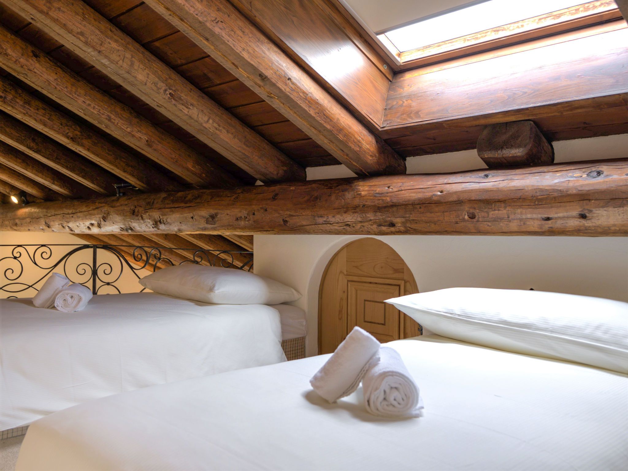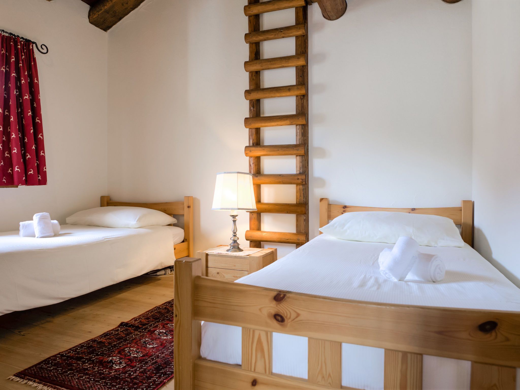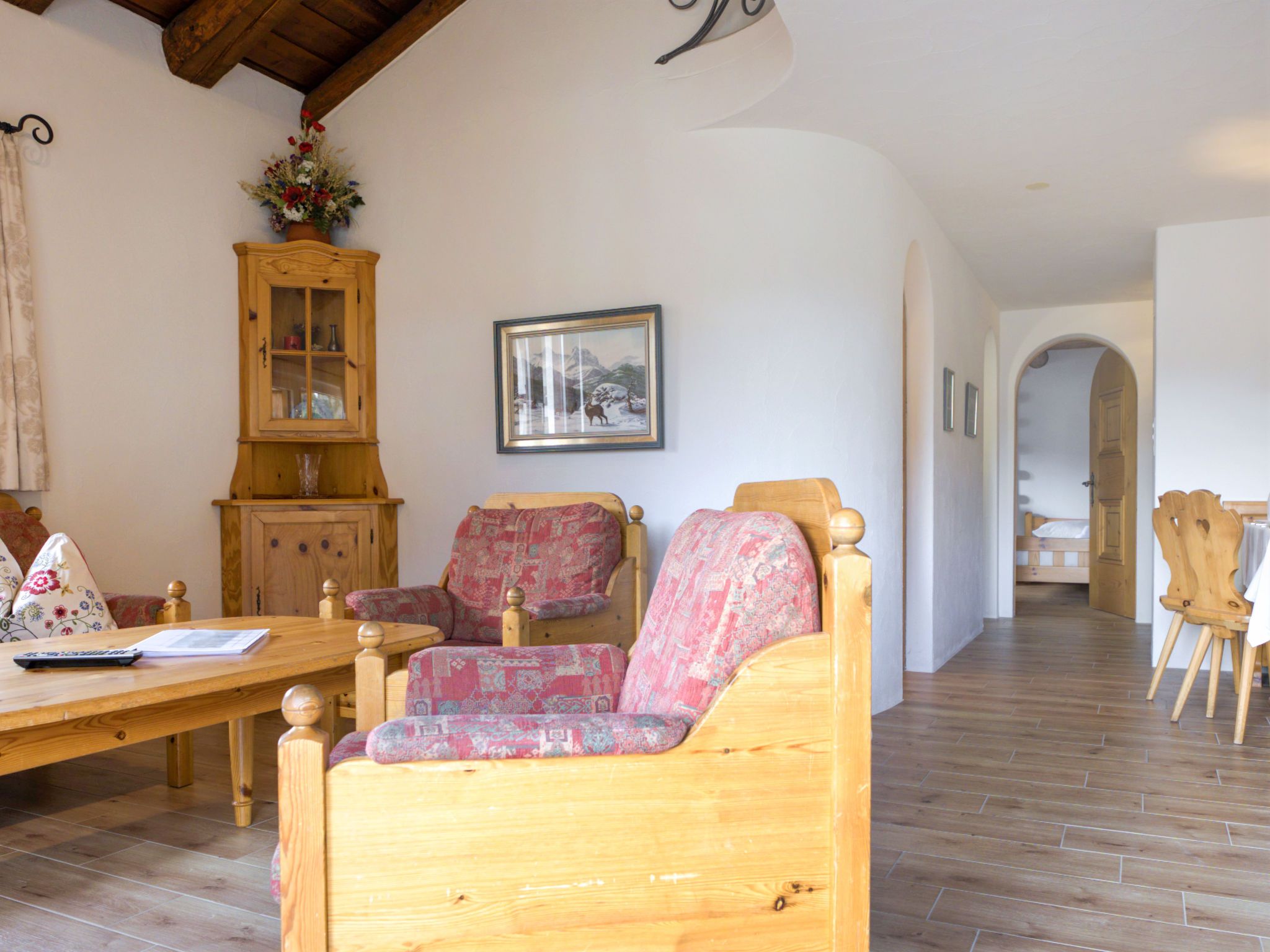 Chesa Chanella 5, 3-Zimmer-Wohnung 85 m2 auf 2 Stockwerken, im Dachgeschoss. Gemütlich eingerichtet: Wohn-/Esszimmer mit offenem Kamin, TV und Radio. Ausgang zum Balkon, Richtung Südwesten. 1 Zimmer mit 2 Betten (90 cm, Länge 190 cm). Küche (Backofen, Geschirrspüler, 4 Induktionskochplatten, Toaster, Wasserkocher, Tiefkühler, elektrische Kaffeemaschine, Kapseln für die Kaffeemaschine (Nespresso) extra, Fondue Set (Käse)). Bad/WC. Obergeschoss: (steile Treppe) abgeschrägte, offene Galerie mit 2 Betten (90 cm, Länge 195 cm). 1 Zimmer mit 1 franz. Bett (1 x 155 cm, Länge 200 cm), Waschbecken. Sep. WC. Sicht auf die Berge. Zur Verfügung: Haartrockner. Internet (WLAN, gratis). Garage Nr. 5, Höhe 225 cm, Breite 210 cm. Anstelle eines abgeschlossenen Schlafzimmers befinden sich manche Schlafplätze in einem offenen Bereich (Galerie, Nische etc.).