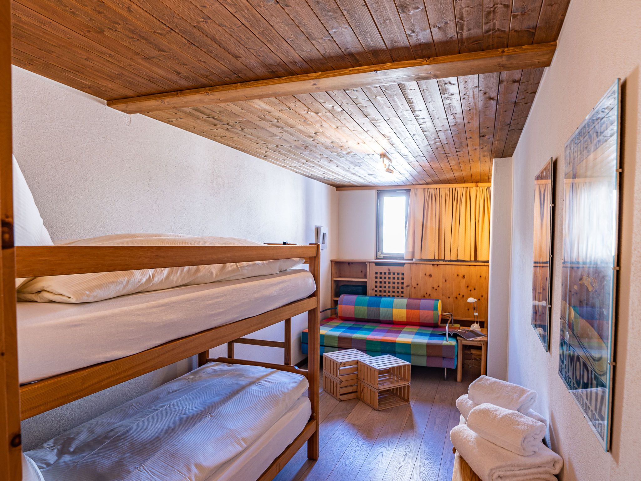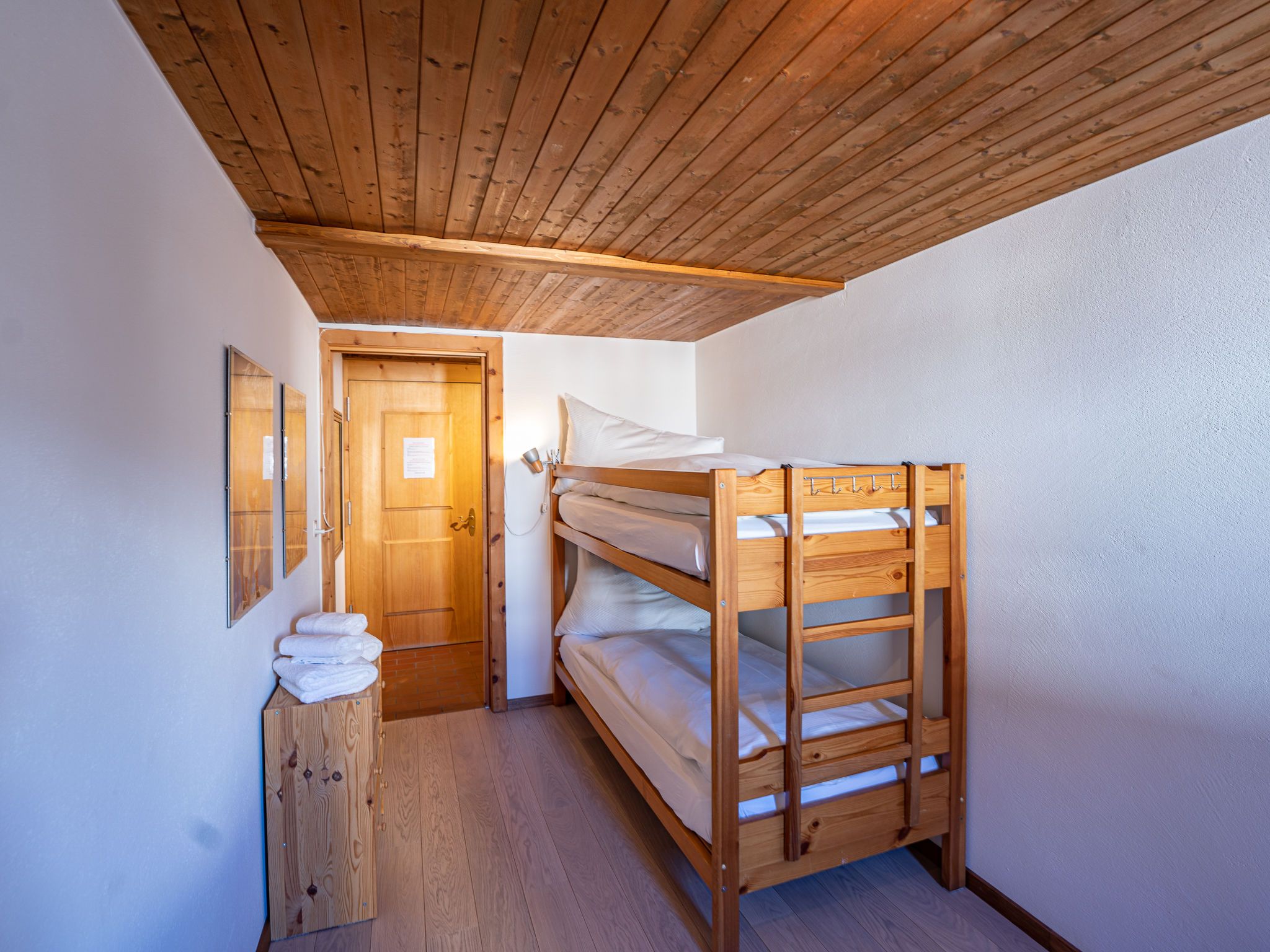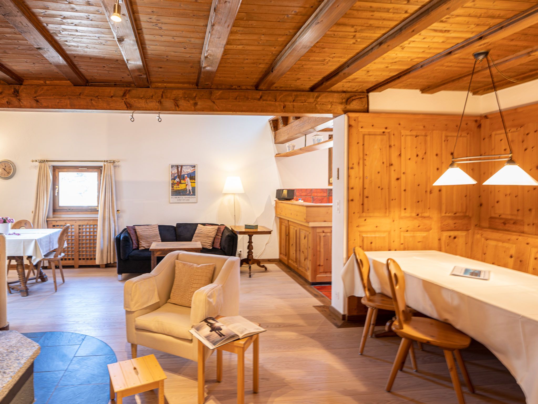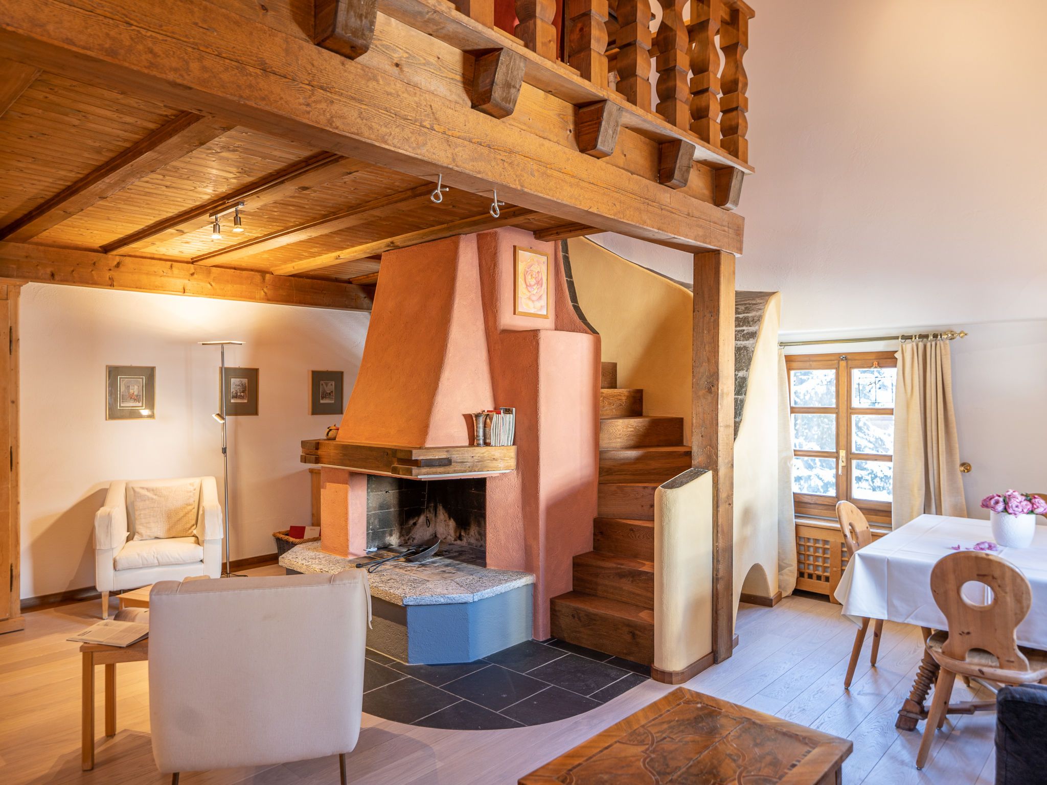 Chesa Cantieni, 3-Zimmer-Wohnung 85 m2 auf 2 Stockwerken, Nordlage. Komfortabel und geschmackvoll eingerichtet: Wohn-/Esszimmer mit offenem Kamin und TV. 1 Zimmer mit 1 Bett (90 cm, Länge 200 cm), 1 x 2 Etagenbetten (85 cm, Länge 185 cm). Offene Küche (Backofen, Geschirrspüler, 4 Induktionskochplatten, Toaster, Wasserkocher, Tiefkühler, elektrische Kaffeemaschine, Kapseln für die Kaffeemaschine (Nespresso) extra, Racletteofen). Dusche/WC. Obergeschoss: 1 Zimmer mit 1 Doppelbett (2 x 80 cm, Länge 195 cm), Bad/Dusche/WC. Ausgang zum Balkon. Galerie mit 1 Diwanbett (150 cm, Länge 200 cm). Kleiner Balkon. Sicht auf die Ortschaft. Zur Verfügung: Haartrockner. Internet (Wireless LAN, gratis). Garage Nr. 12 in 100 m, Höhe 225 cm, Breite 260 cm. Bitte beachten: geeignet für Familien. Nichtraucher-Unterkunft. Anstelle eines abgeschlossenen Schlafzimmers befinden sich manche Schlafplätze in einem offenen Bereich (Galerie, Nische etc.).