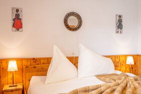 Chesa Clüs 6, 3-Zimmer-Wohnung 85 m2 im 2. Stock. Geräumig, einfach und gemütlich eingerichtet: grosses Wohn-/Esszimmer mit TV. Ausgang zum Balkon. 1 Zimmer mit 1 x 2 Etagenbetten (90 cm, Länge 190 cm). 1 Doppelzimmer mit 2 Betten (90 cm, Länge 200 cm). Küche (Backofen, Geschirrspüler, 4 Glaskeramikplatten, Toaster, Wasserkocher, Mikrowelle, elektrische Kaffeemaschine, Kapseln für die Kaffeemaschine (Nespresso) extra, Racletteofen, Fondue Set (Chinoise, Käse)). Bad, sep. WC. Holzdielenboden. Balkon. Balkonmöbel. Sicht auf die Berge und die Landschaft. Zur Verfügung: Bügeleisen, Haartrockner. Internet (Wireless LAN, gratis). Parkplatz Nr. 6 (1 Auto) beim Haus. Bitte beachten: geeignet für Familien. Nichtraucher-Unterkunft, Nichtraucher-Haus. Kein Fahrstuhl. Flexibilität bei der Bettenaufteilung: Es stehen mehr Schlafmöglichkeiten zur Verfügung als die maximal zugelassene Personenzahl, diese darf dennoch nicht überschritten werden.