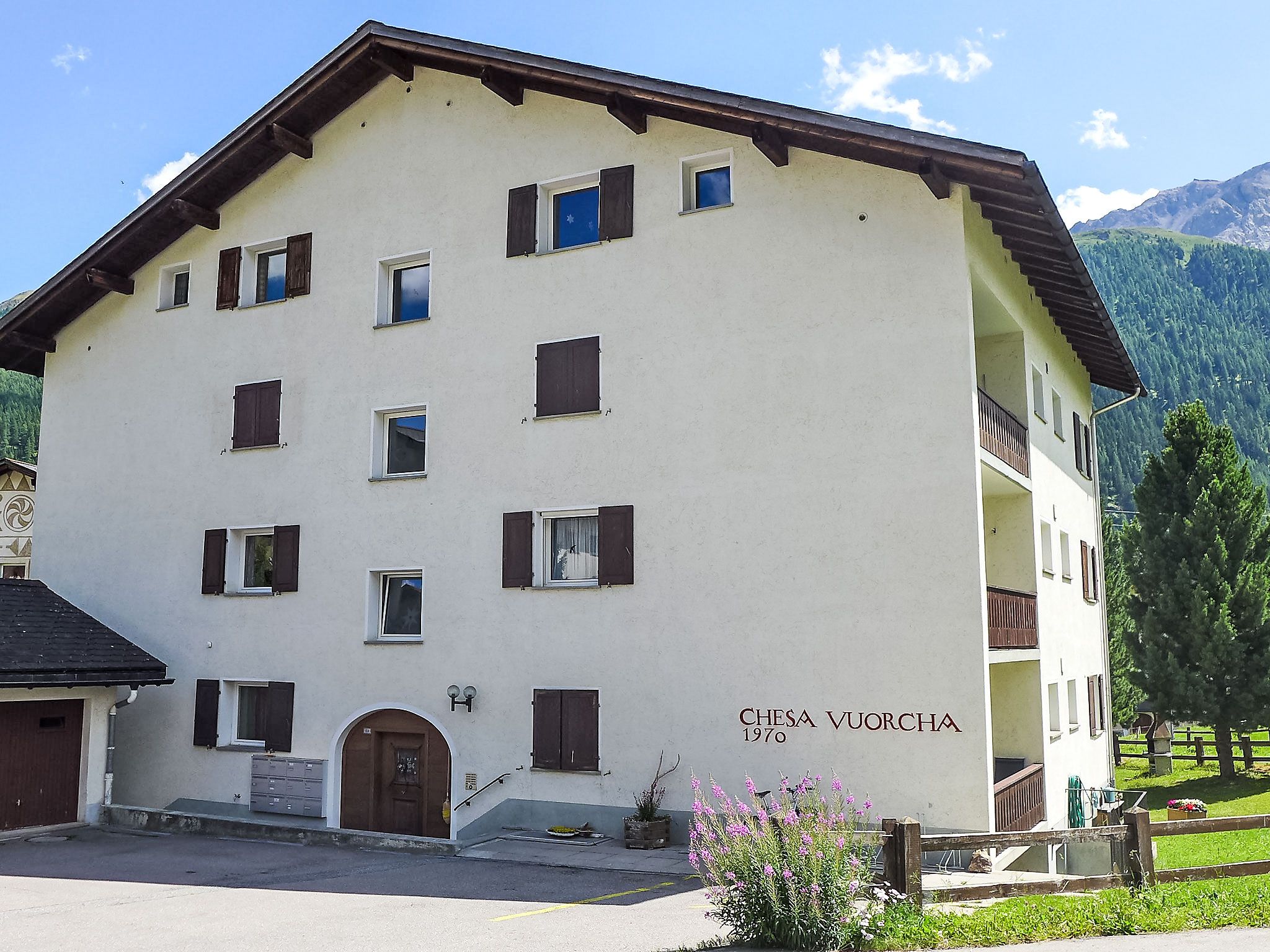 Chesa Vuorcha 17 km von St. Moritz: Komfortables Mehrfamilienhaus Chesa Vuorcha, auf 3 Stockwerken, Baujahr 1970. Am Ortsrand, sonnige Lage, 17 km vom See, 800 m vom Skigebiet, 500 m vom Fluss, in einer Sackgasse. Zur Mitbenutzung: Grundstück 600 m2, Garten (eingezäunt), Liegewiese (eingezäunt). Grill, Kinderspielplatz. Im Hause: Skiraum, Zentralheizung, Waschmaschine, Wäschetrockner (zur Mitbenutzung, extra), Trockenraum. Parkplatz beim Haus, Einzelgarage. Einkaufsgeschäft 300 m, Lebensmittelgeschäft, Restaurant 300 m, Bäckerei 450 m, Café 450 m, Fahrradverleih 600 m, Bushaltestelle Staziun 300 m, Bahnstation, Hallenbad 18 km, See St. Moritzer See 17 km. Golfplatz (18 Loch) 600 m, Surfschule 23 km, Tennis 1 km, Tennishalle 19 km, Minigolf 18 km, Reitstall 4 km, Wanderwege ab Haus 400 m, Radweg 600 m, Luftseilbahn 15 km, Skilift 800 m, Skipisten 800 m, Skiverleih 800 m, Skibushaltestelle 200 m, Skischule 700 m, Kinderskischule, Schlittelbahn 1 km, Langlaufloipe 600 m, Eisfeld 700 m, Kinderspielplatz 600 m. Nahe gelegene Sehenswürdigkeiten: Nationalparkzentrum in Zernez 17 km, Caferama Badilatti 600 m. Bekannte Skigebiete sind gut erreichbar: Zuoz 800 m, Corviglia 15 km, Diavolezza - Lagalb 28 km. Bekannte Seen in der Umgebung sind gut erreichbar: St. Moritzer See 17 km, Silvaplaner See 23 km, Silser See 29 km. Wandergebiete: Schweizer Nationalpark / Val Trupchun, Via Engiadina, Muottas Muragl. Bitte beachten: kein Fahrstuhl vorhanden. Gratis Skibus. Der gratis Skibus fährt zum Skigebiet Zuoz.